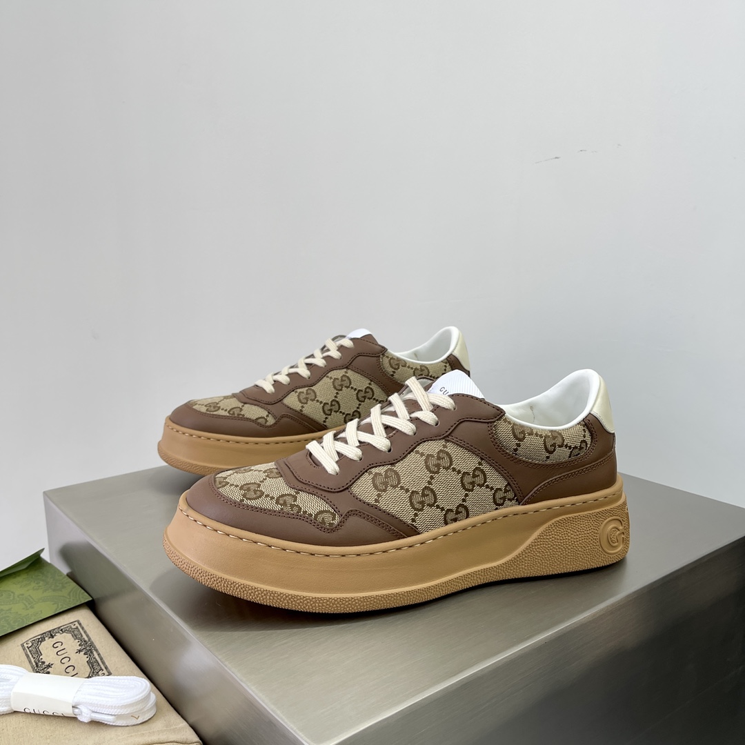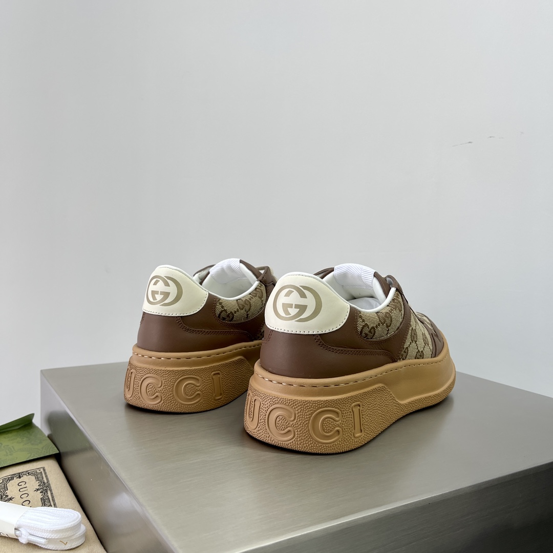 The inspiration for the brand's classic webbing element comes from Gucci's equestrian origins. Each season, it is reinterpreted through various novel and unique designs and styles. It appears on these leather sneakers with red and blue details, interpreting the brand's advocated design philosophy that blends sport and leisure. The thick sole design gives the sneakers a retro feel. The heel height is approximately 5cm, super thick and versatile!!