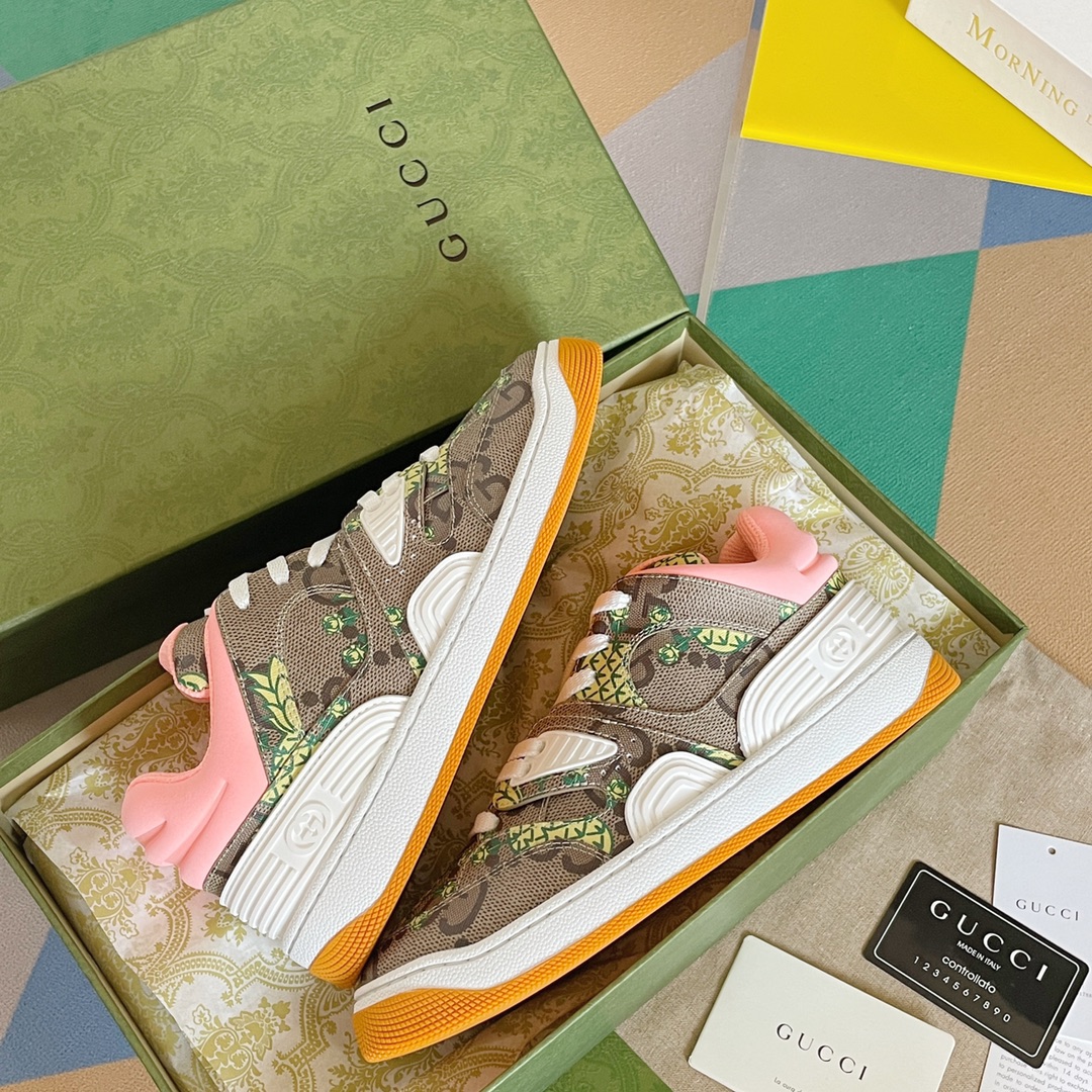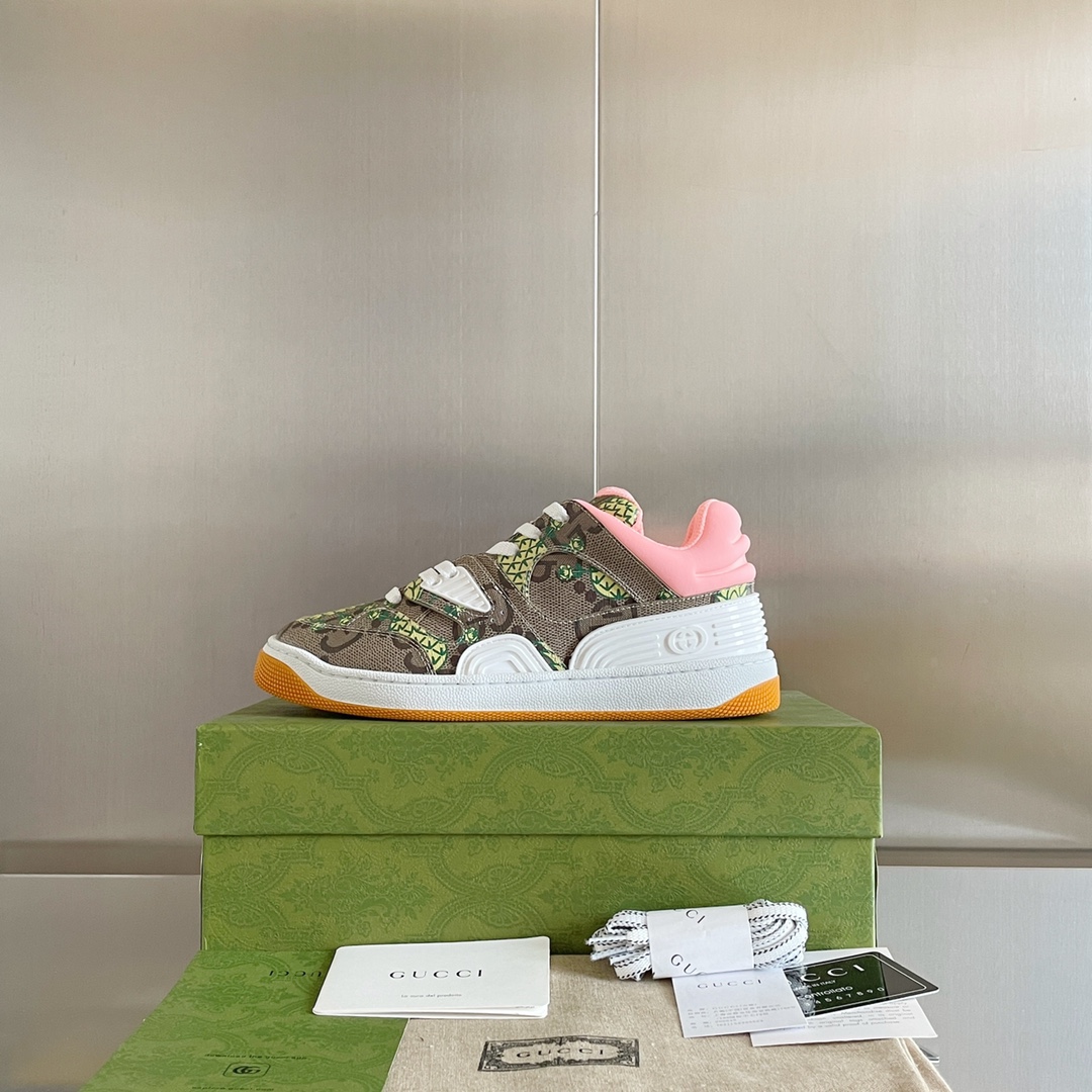Original version purchased one-to-one molded sole, film development production 2022 latest Basket couples sneakers The most anticipated star model of the summer is here Neutral unique design perfectly blends trend and fashion, enjoy the happiness of color collision as you wish, has a kind of dad shoe feel Rubber interlocking double G appliqué The visual pleasure of color-blocking design brightens the entire look. Sports style inspiration comes from 1990s basketball shoes. This high-top sneaker incorporates iconic elements and details, highlighting self-expression of court aesthetics. The shoe mixes bright colored fabrics, paired with a slight vintage effect.