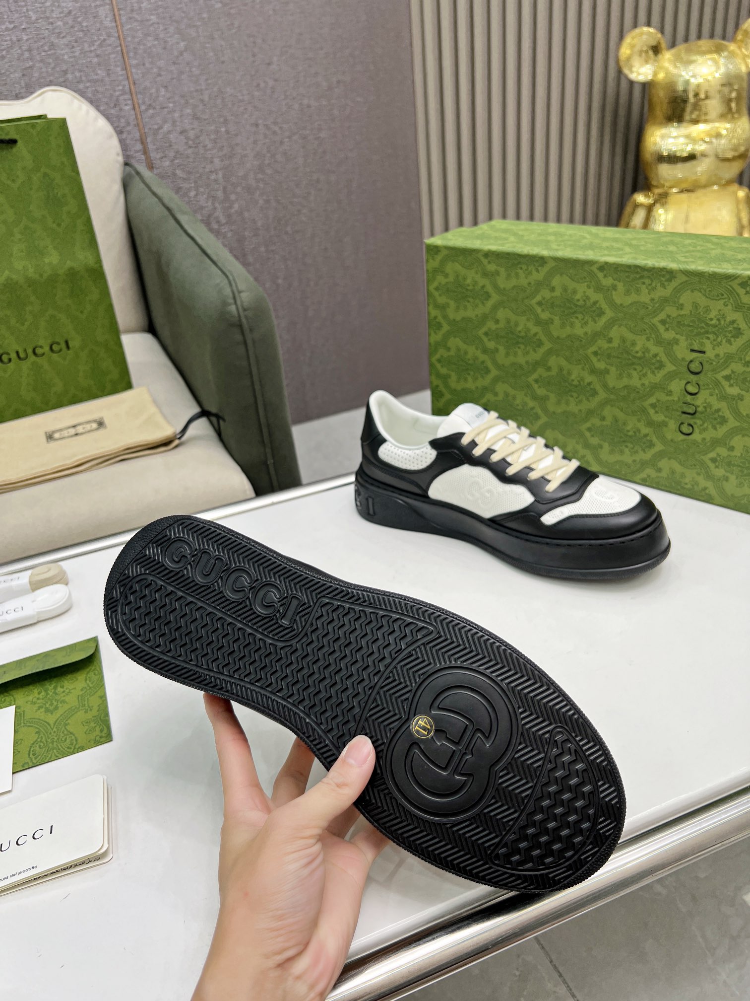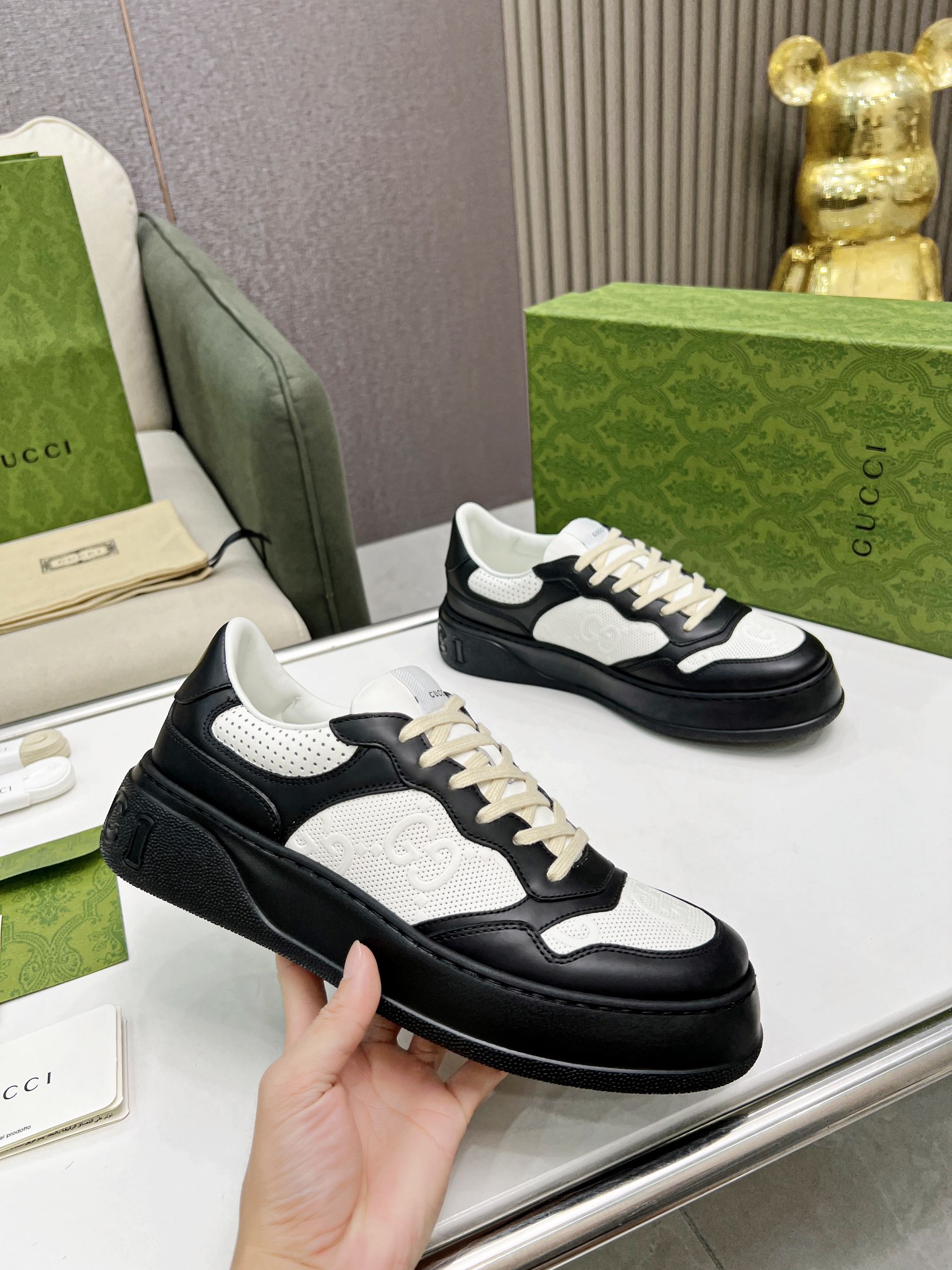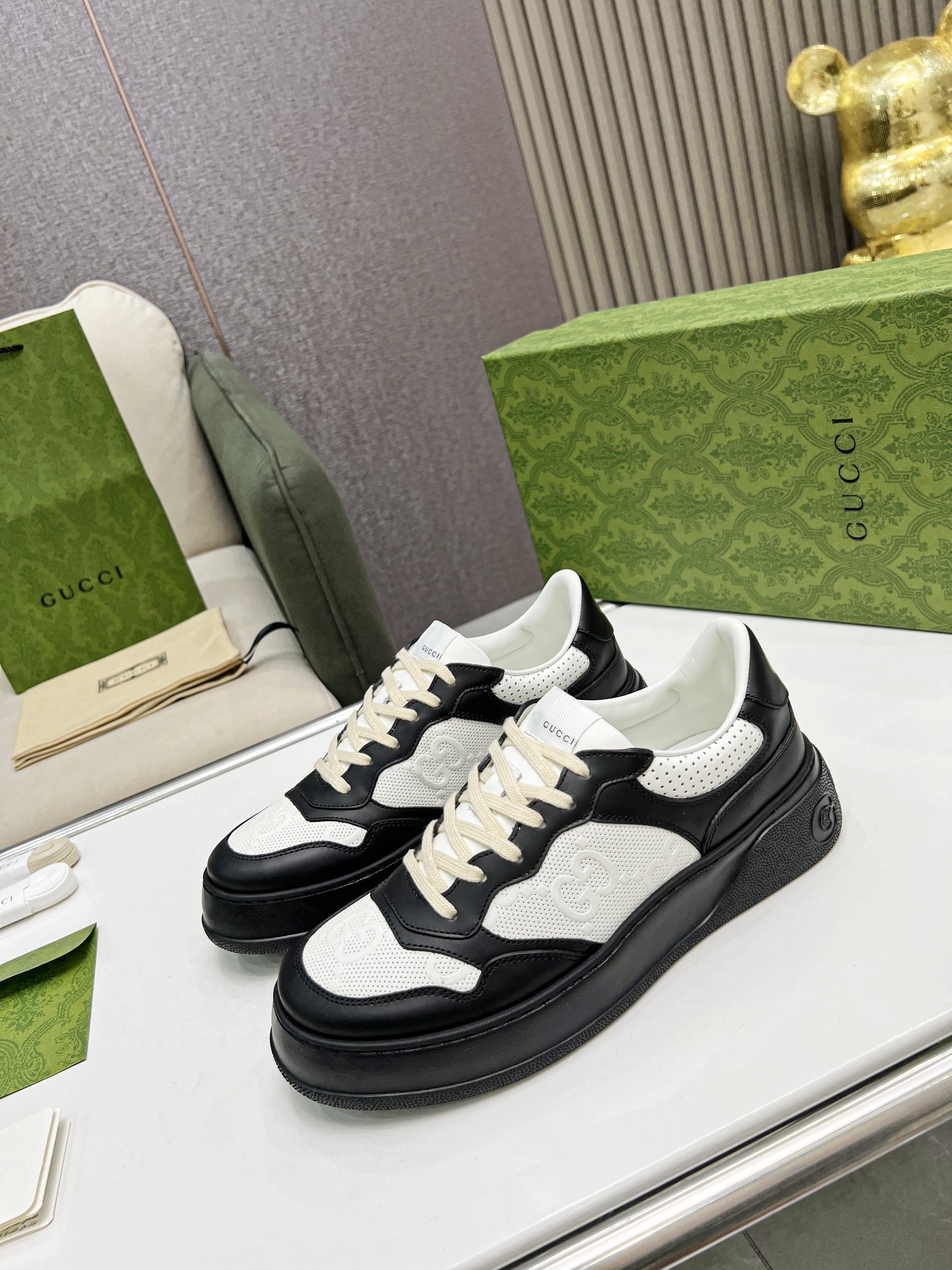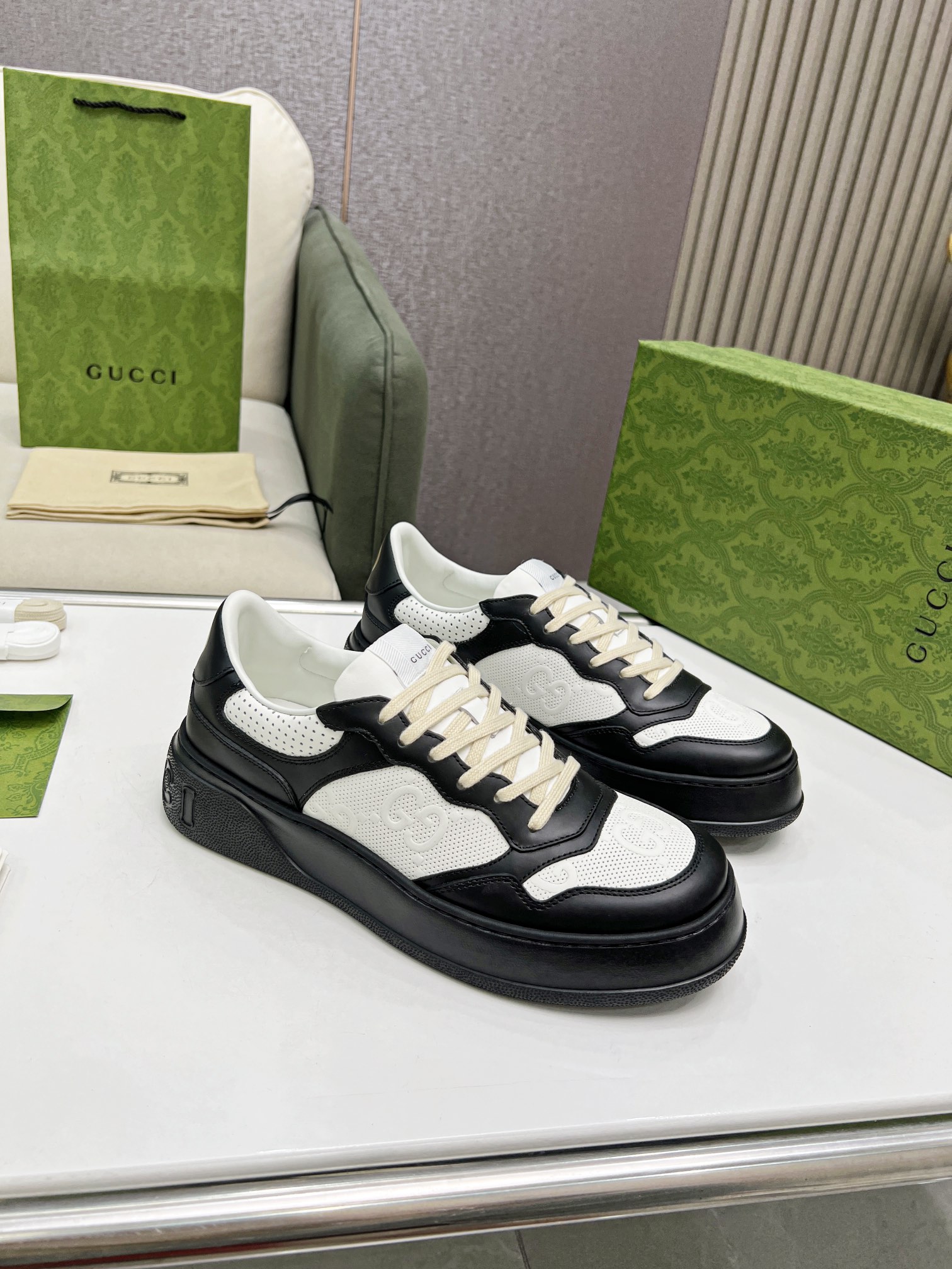 Super popular Gucci biscuit shoes 22 new platform white sneakers Couple style Original 1:1 High-quality oil edge craftsmanship