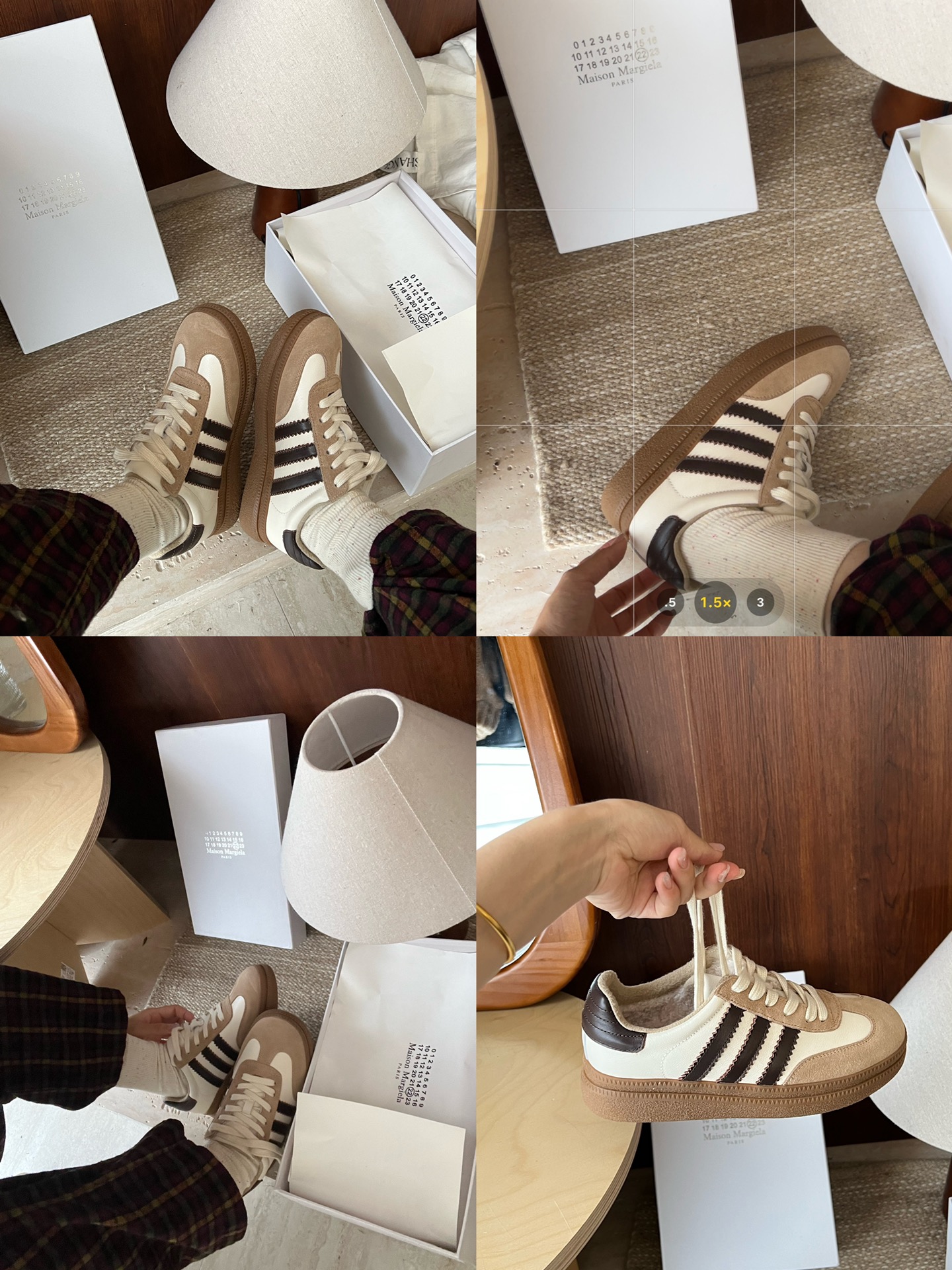Reference for wearing beige brown sneakers.