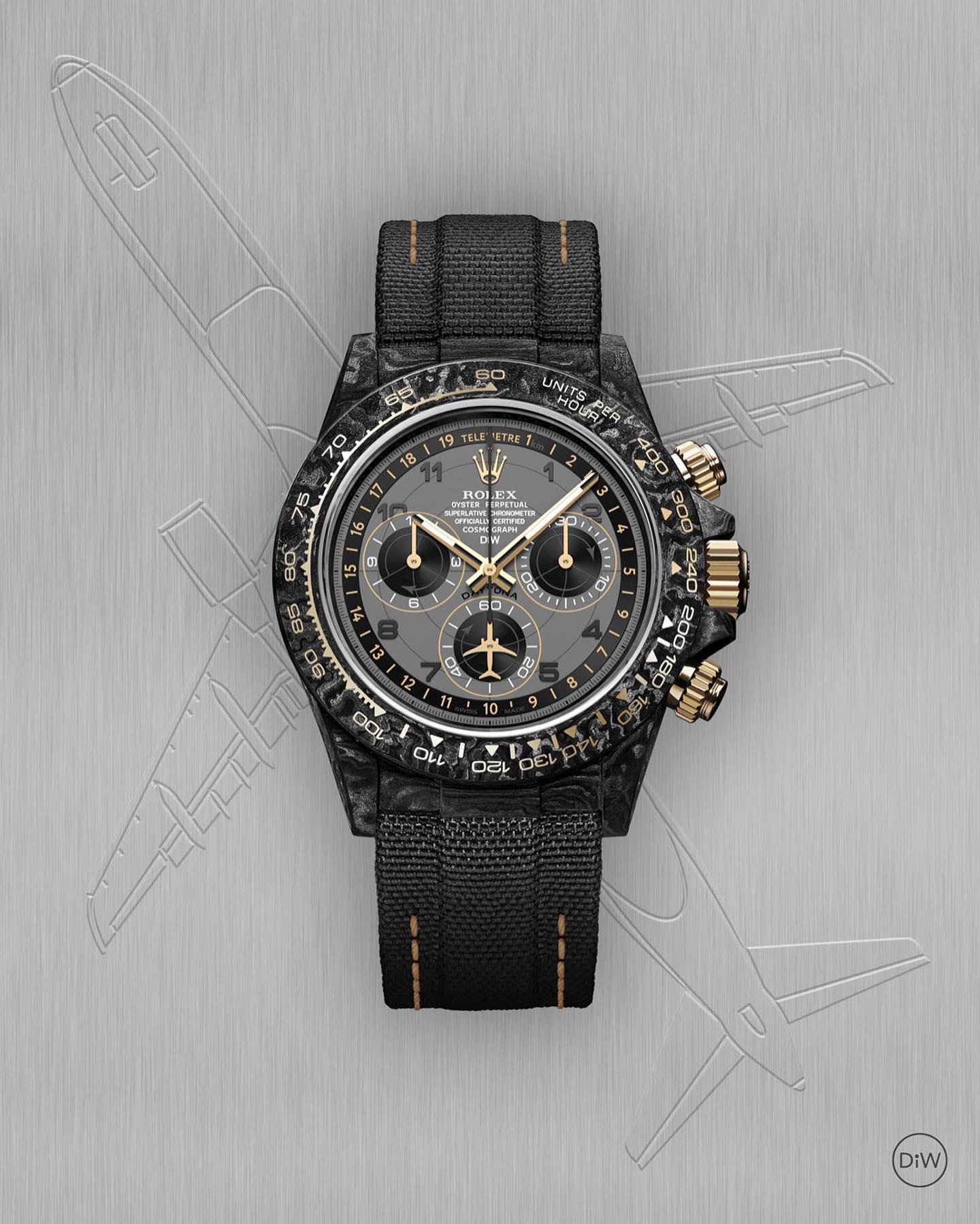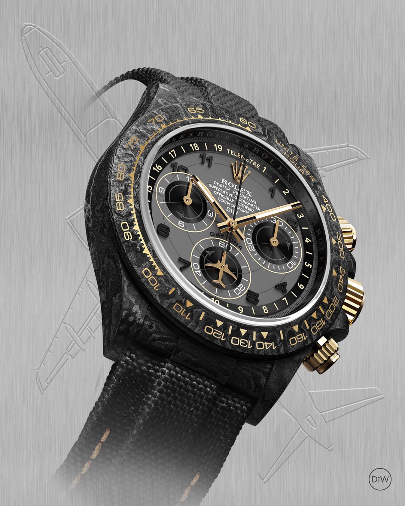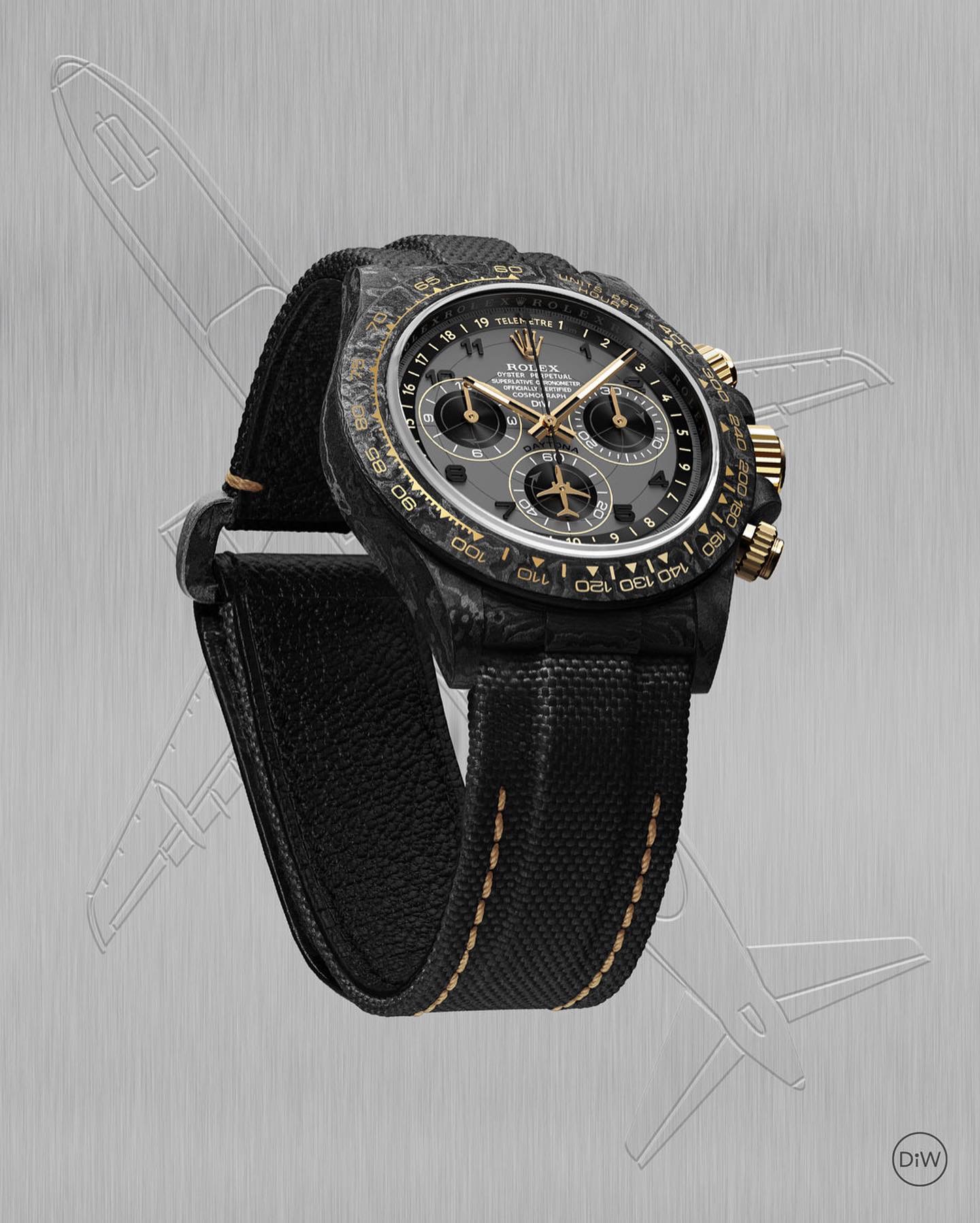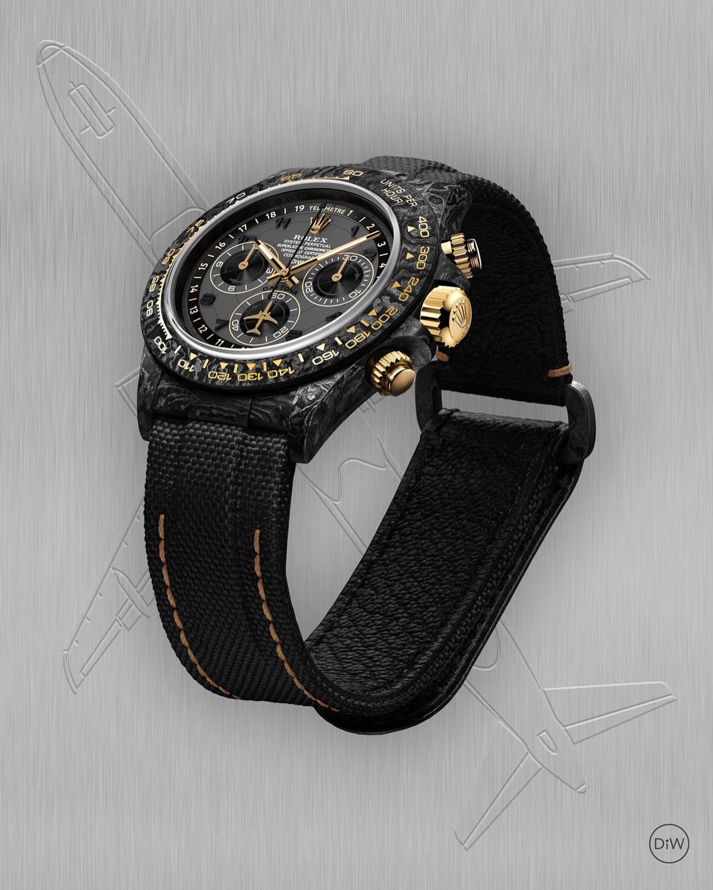 TW Factory ROLEX Cosmograph Daytona Series Carbon Fiber Custom Edition. The watch is not only lightweight to wear but also has a hard exterior. Each timepiece features a unique carbon fiber pattern material.