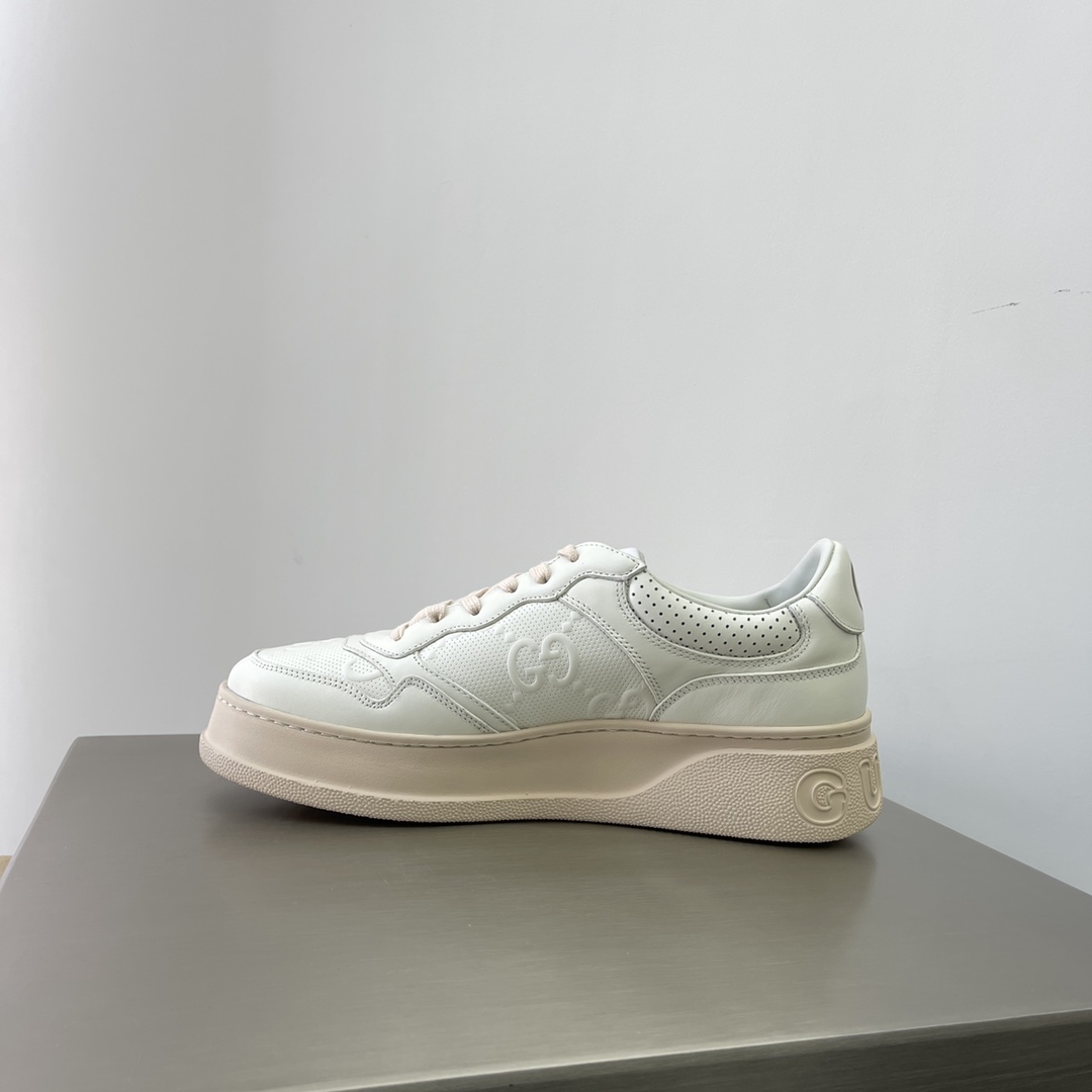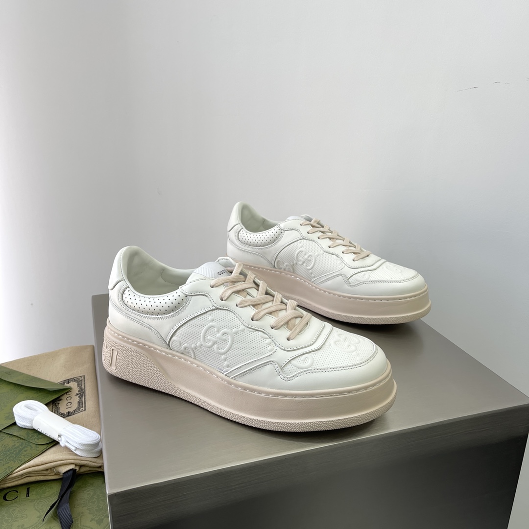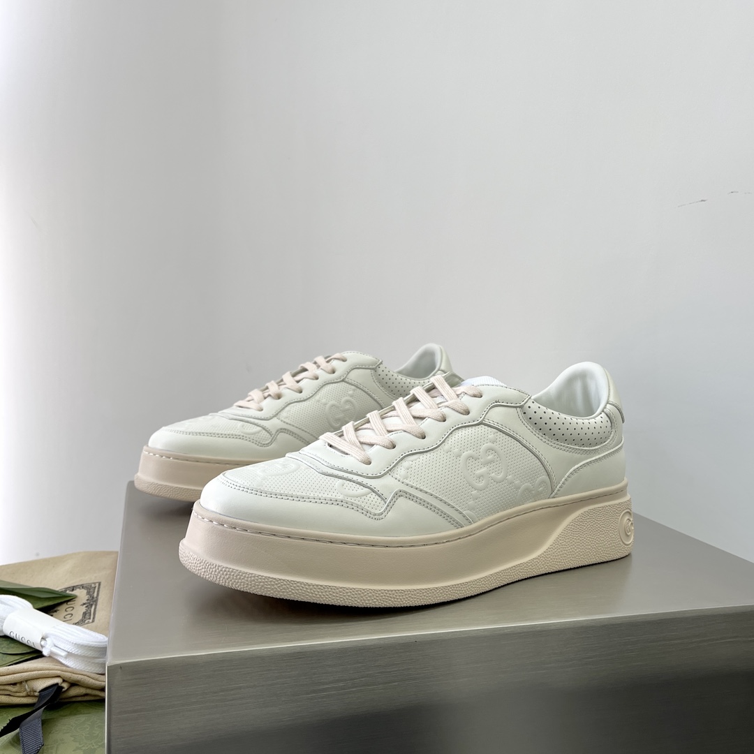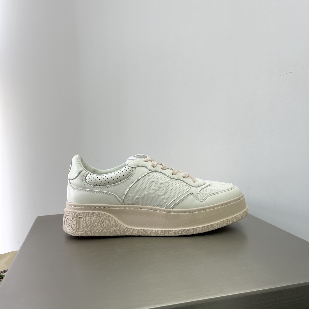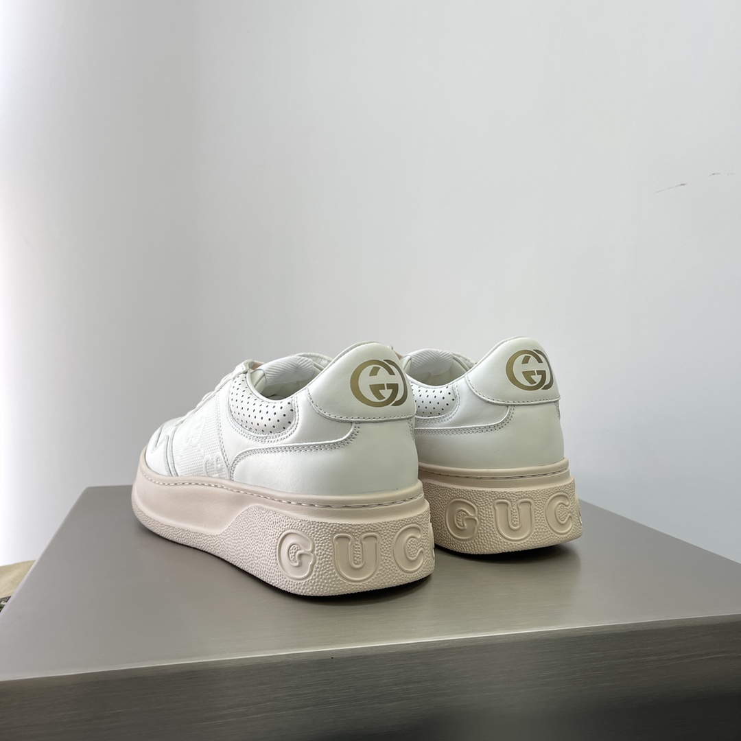 Gucci Couple-style webbing leather sneakers. The brand's classic webbing element draws inspiration from Gucci's equestrian origins. Each season, it is reinterpreted through various novel and stylish designs. It appears on these leather sneakers with red and blue details, embodying the brand's design philosophy that blends sportiness and casualness. The thick sole design gives the sneakers a retro feel. Heel height approximately 5cm, super thick and versatile!!