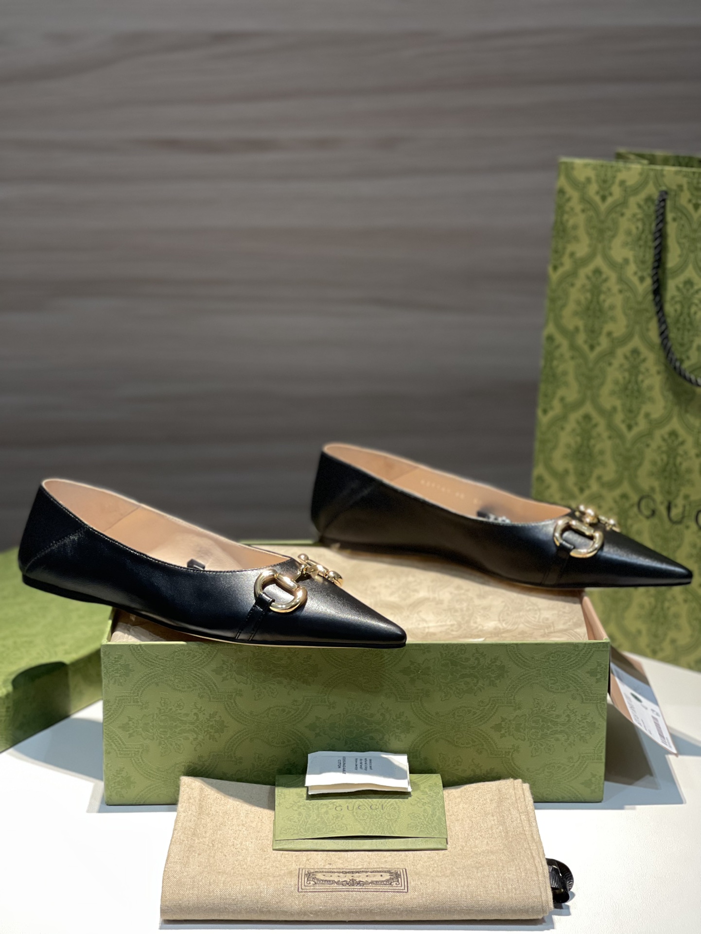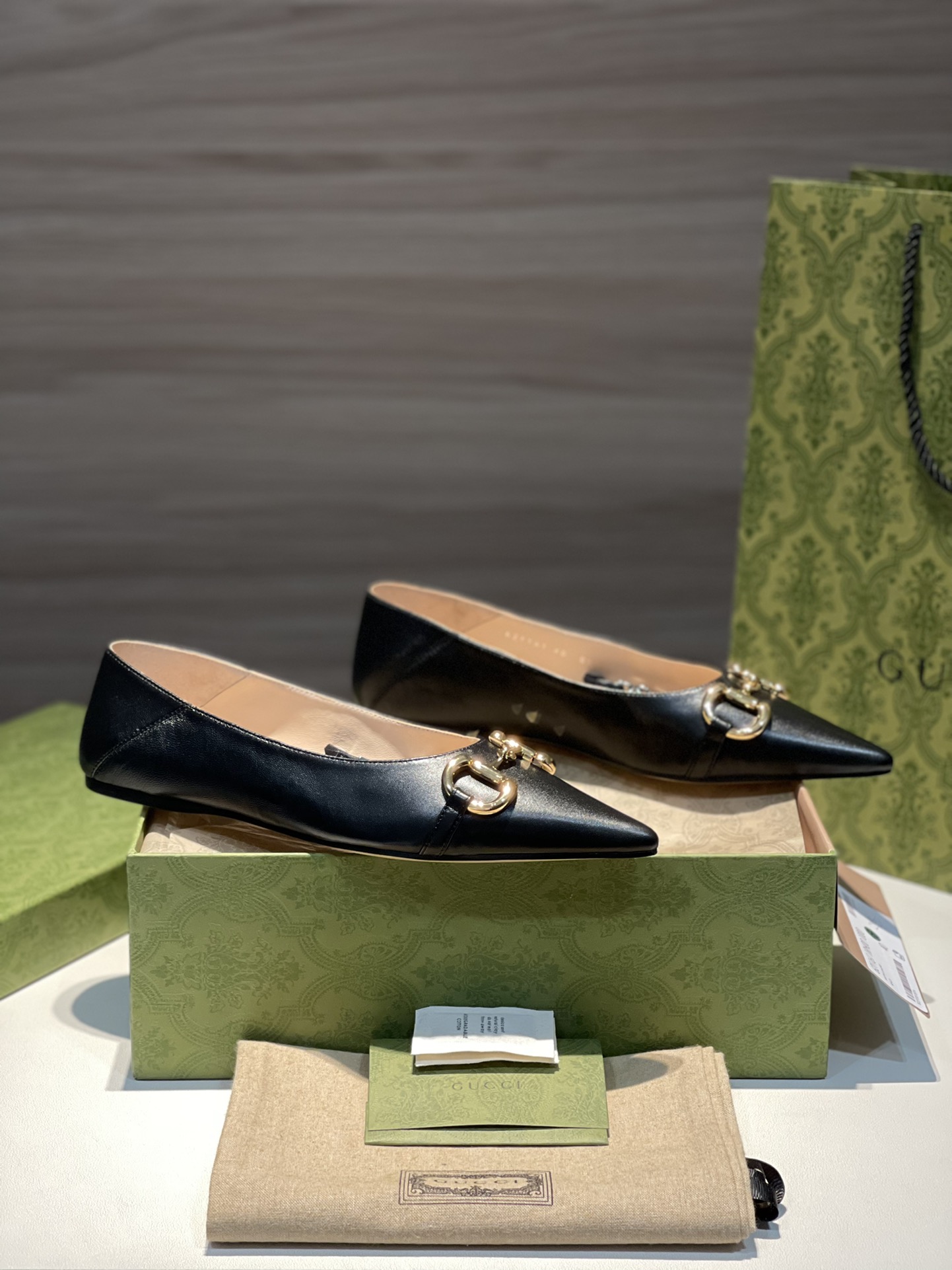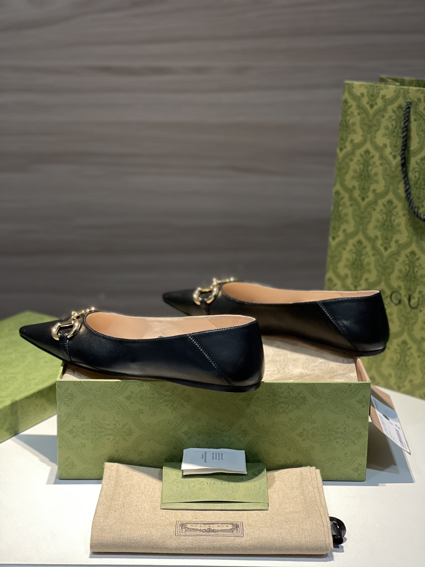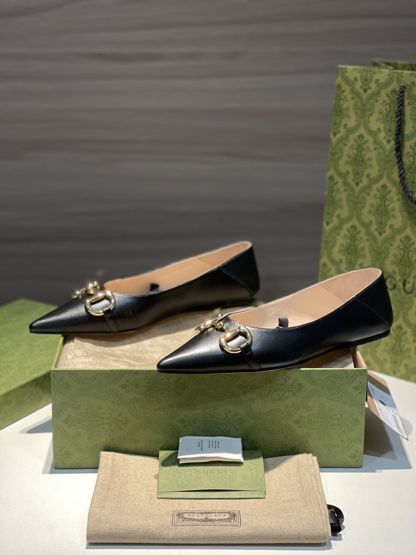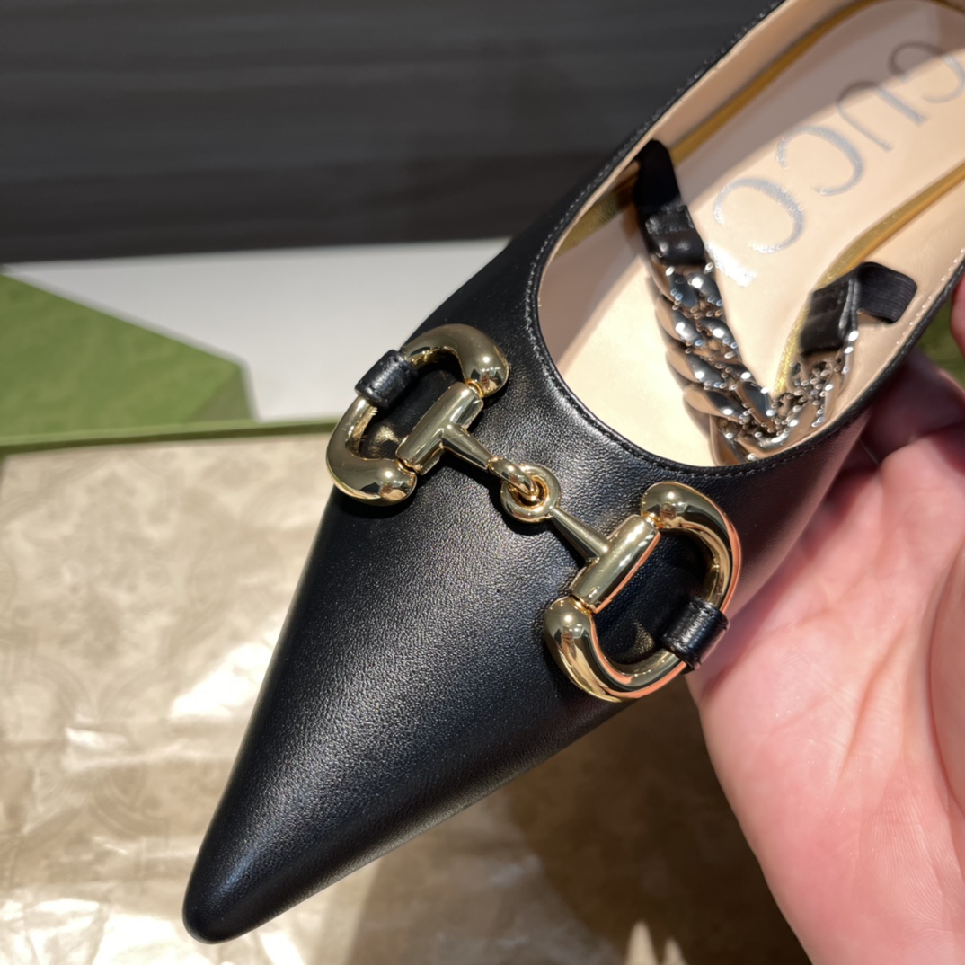 Gucci new women's shoes women's chain flats super soft calfskin upper plus golden horse bit buckle plus retro gun chain pointed toe design plus lambskin footbed plus removable heel bit buckle pointed toe ballet flats sizes: 35-36-37-38-39-40-41 in stock