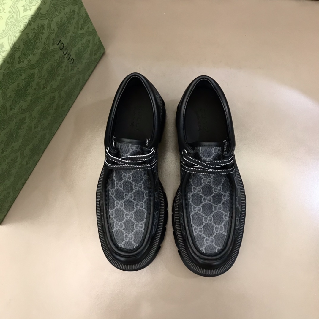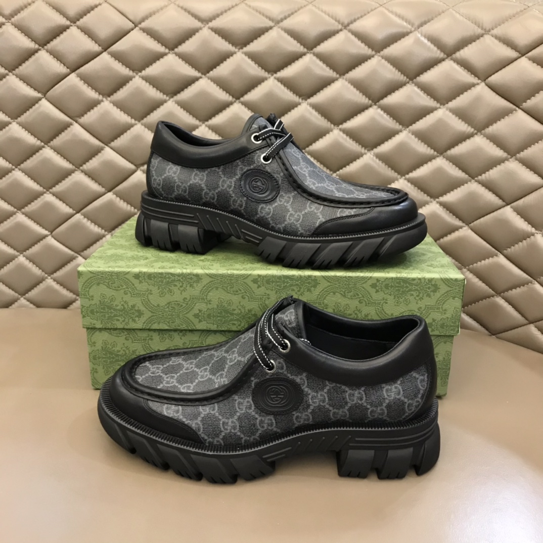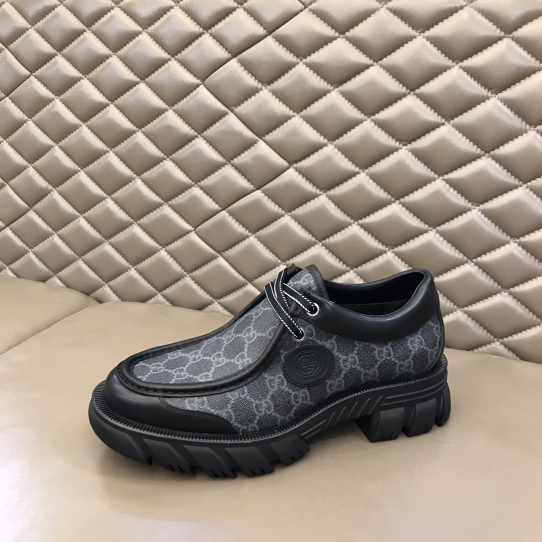 Top version Gucci 2021 autumn and winter men's black GG Supreme canvas double G loafer, thick sole, height increase, kills all general versions. If you need original high quality, please recognize our store. The retro style and classic details blend together, conveying the brand's love for trend elements from different eras. This lace-up shoe is made of black GG Supreme canvas, lined with calfskin, and meticulously decorated with an oval interlocking double G leather detail. The double G letter pattern has different interpretations in different periods, paying tribute to the brand founder Mr. Guccio Gucc*. The rubber grooved sole, every detail exudes elegance!