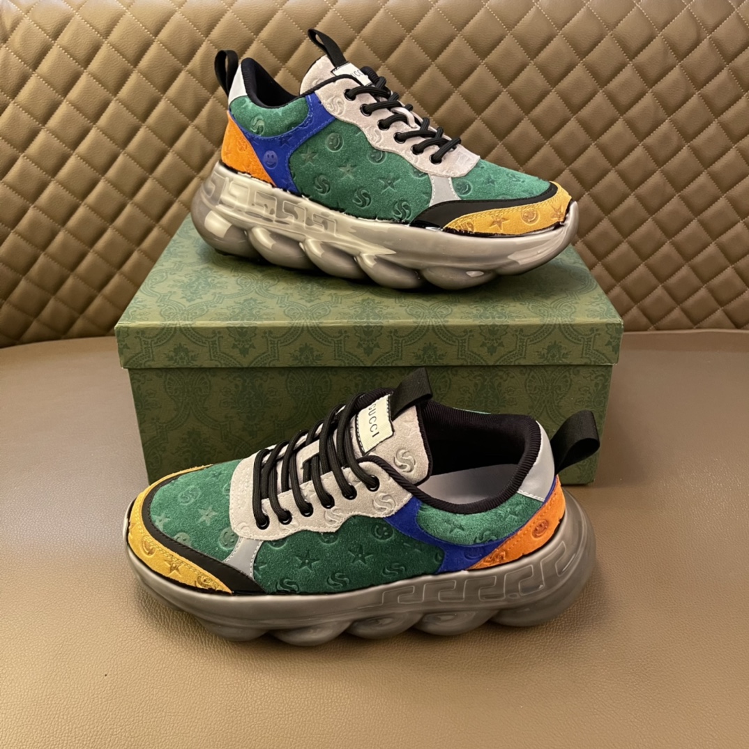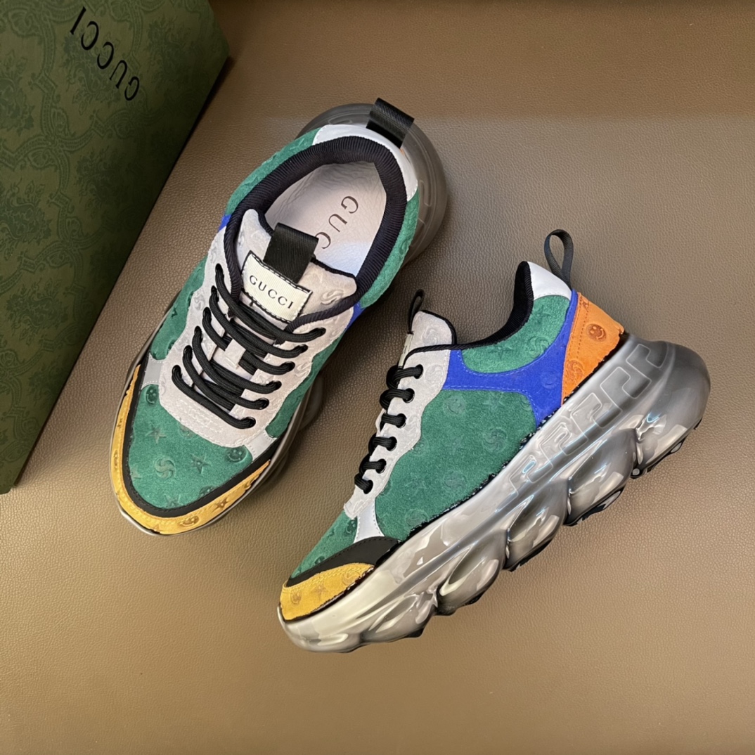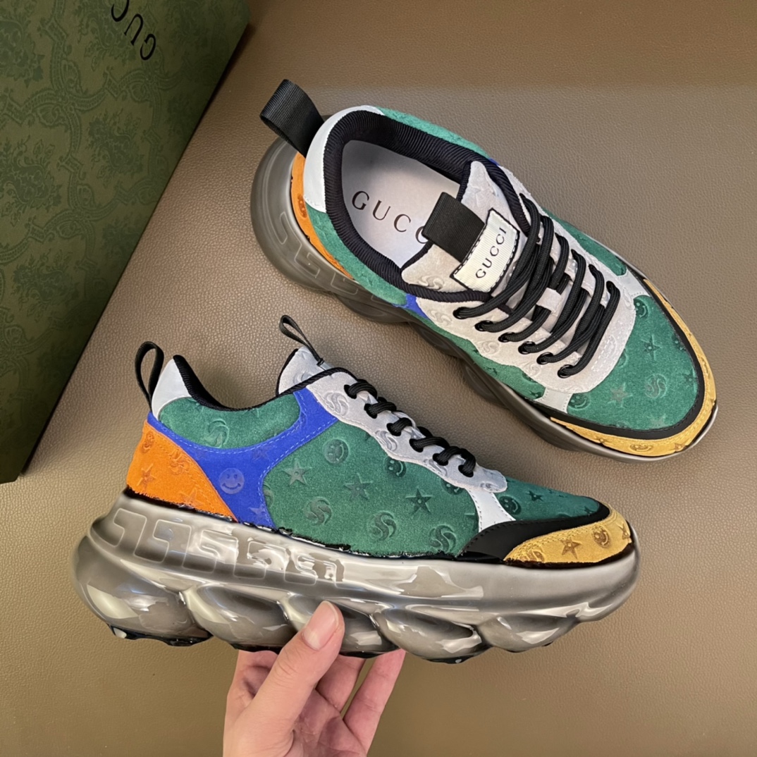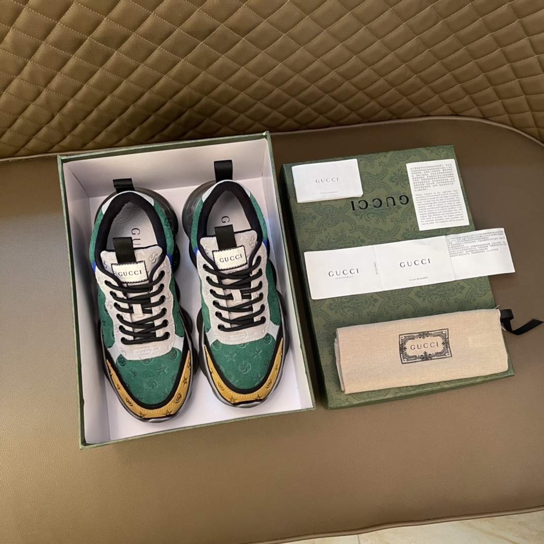 🚗Real🉐️Gucci 2021 brand new top series, trendy mid-top dad shoes, this item is full of fun retro vibe. The brand's new series continues to draw inspiration from the daily life of other eras and incorporates the essence of current design, with color-blocking and splicing creating a refreshing design. These sneakers feature a coated rubber outsole and are made of classic logo printed suede leather, highlighting the profound brand identity connotation!