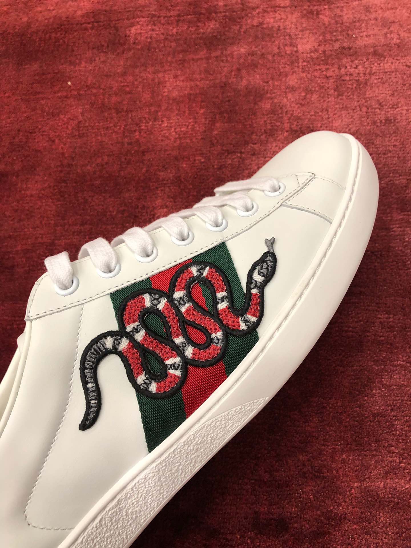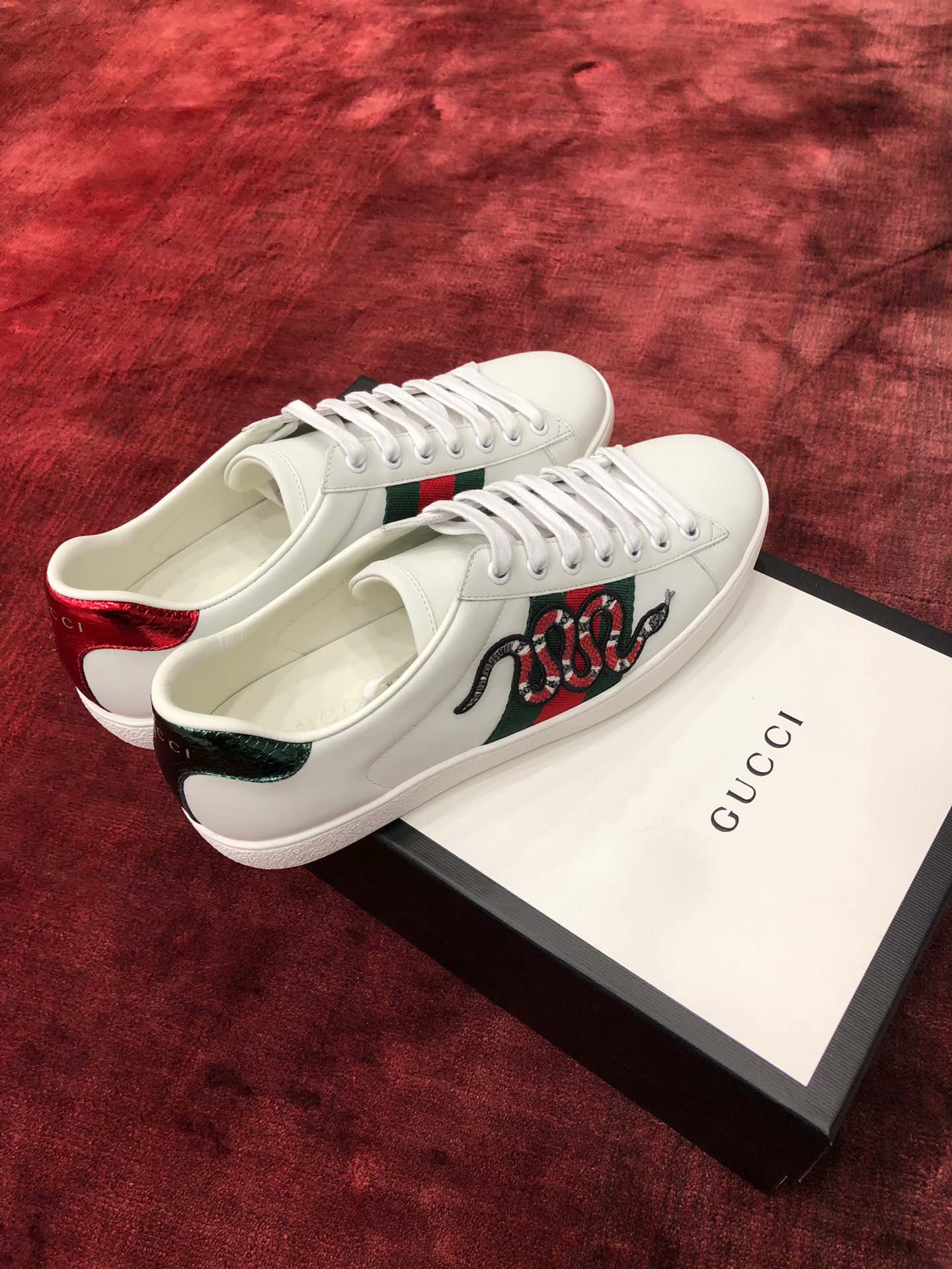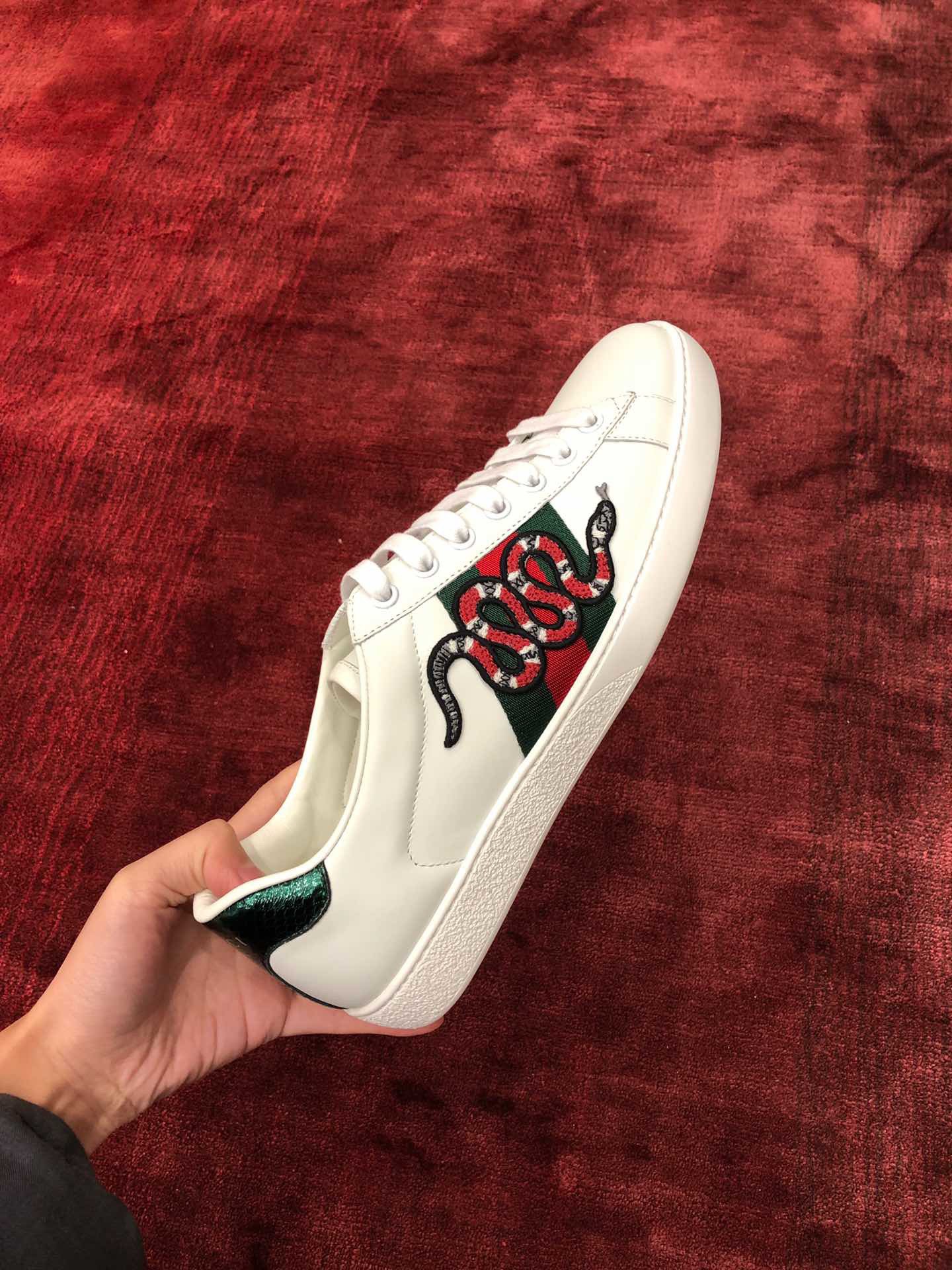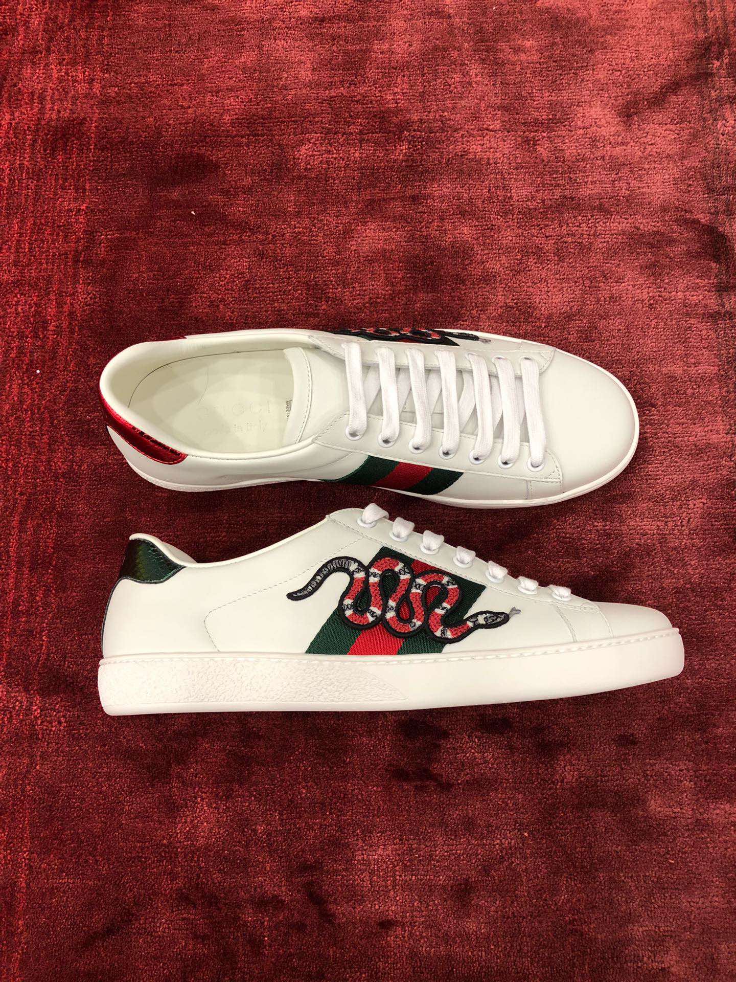 Material: Shoe upper uses original factory channel imported Italian cowhide surface, comfort and softness are higher than domestic ordinary cowhide + full cowhide inner, footpad, inner uses original version consistent last covering method, midsole and original version consistent also printed with double G, shoe insole also original version mold opening 3D process! Different from market ordinary goods! + Outsole uses original version high-density one-to-one outsole +! Snake skin tail consistent matching authentic color, real snake skin one piece one small piece + embroidery applique also matching authentic disassembled after each color comparison accurate before shipping!! Shoe size: Women 35-40 Men 39-44