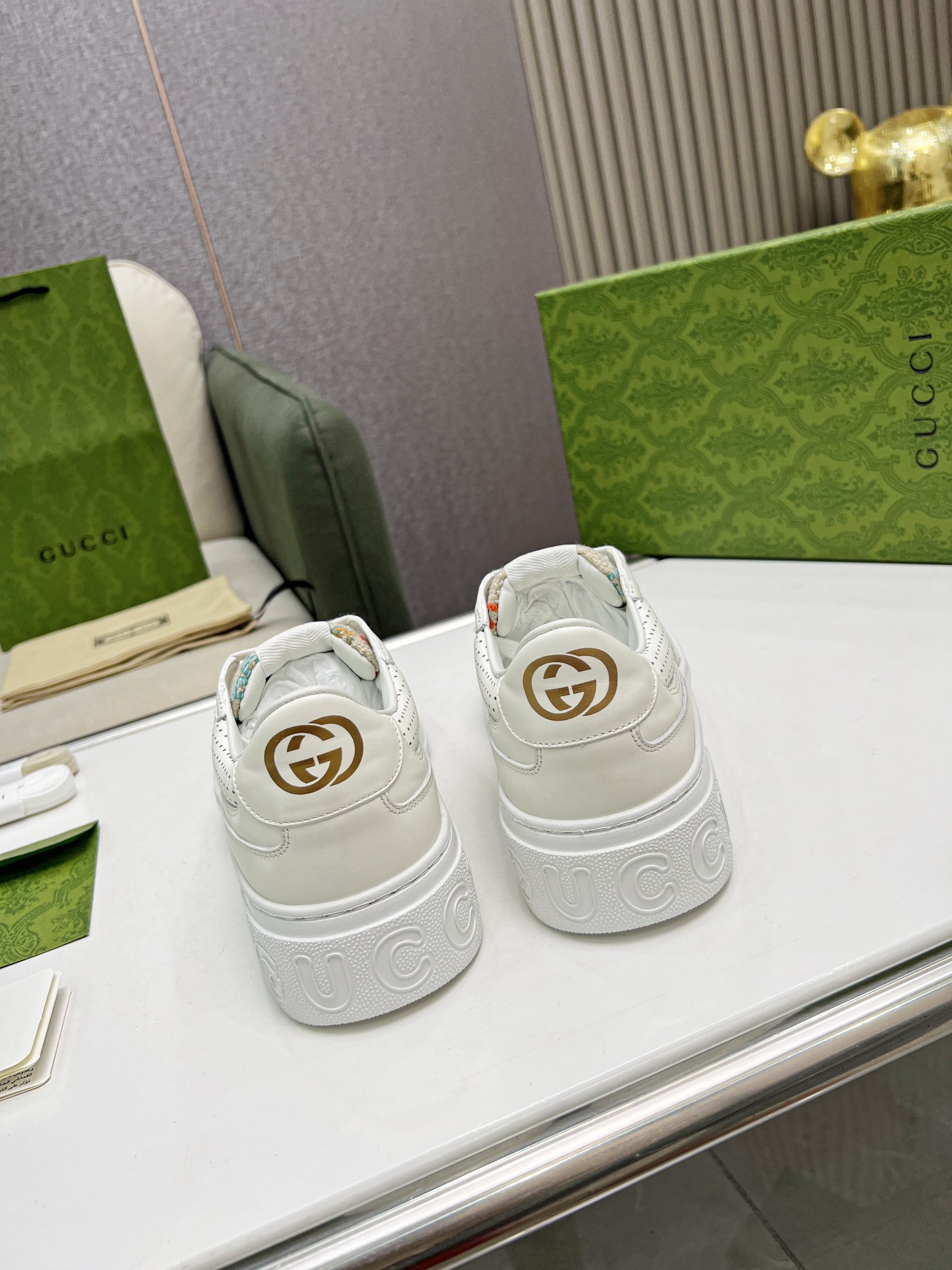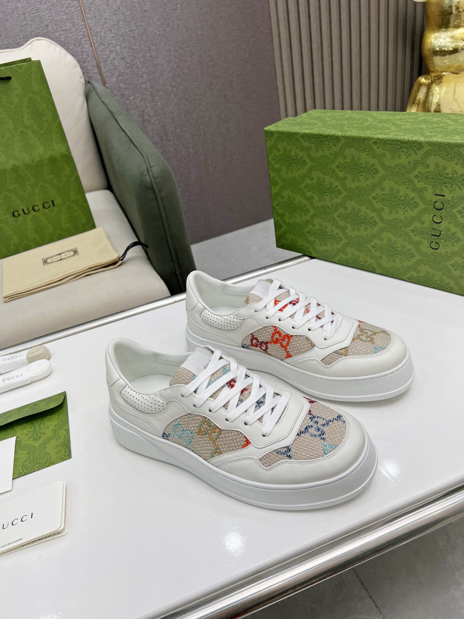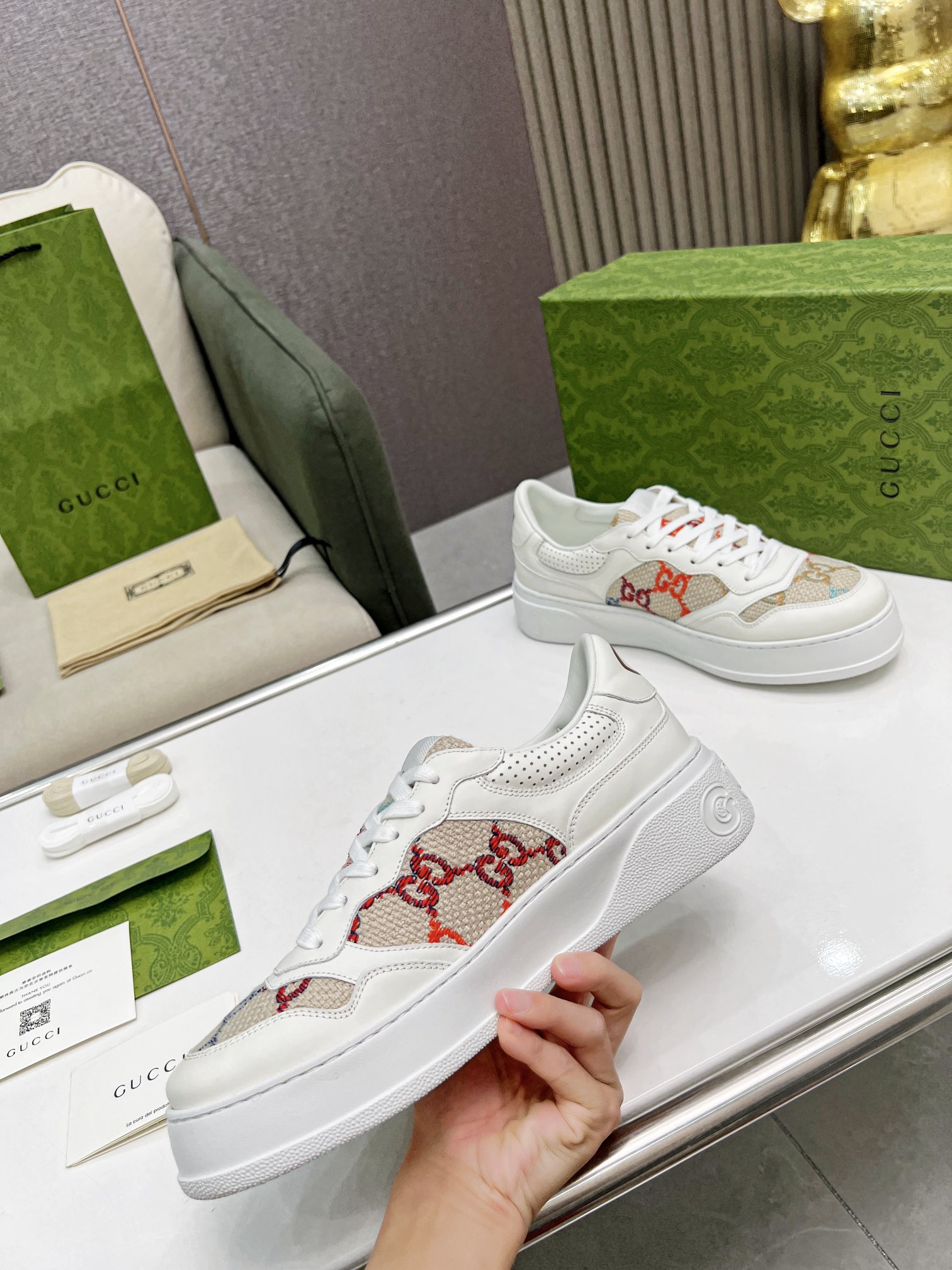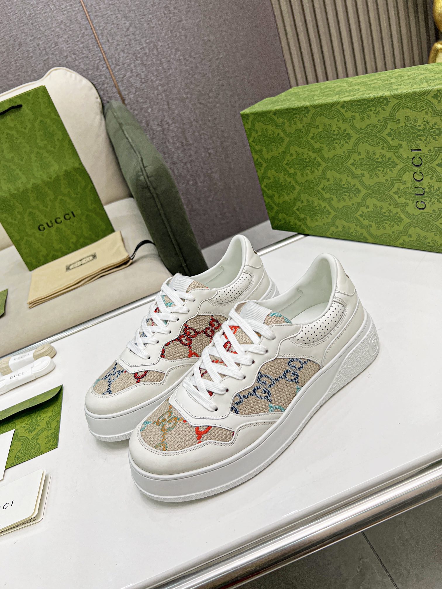 Super popular Gucci biscuit shoes 22 new platform white sneakers Couple style Original 1:1 High-quality oil edge craftsmanship