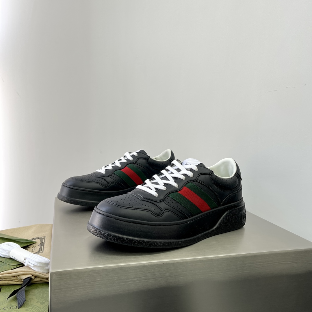 The brand's classic webbing element draws inspiration from Gucci's equestrian heritage. Each season, it is reinterpreted through various novel and unique designs and styles. It appears on these leather sneakers with red and blue details, embodying the brand's design philosophy that blends sportiness and leisure. The thick sole design gives the sneakers a retro feel. The heel height is approximately 5cm, super thick and versatile!!