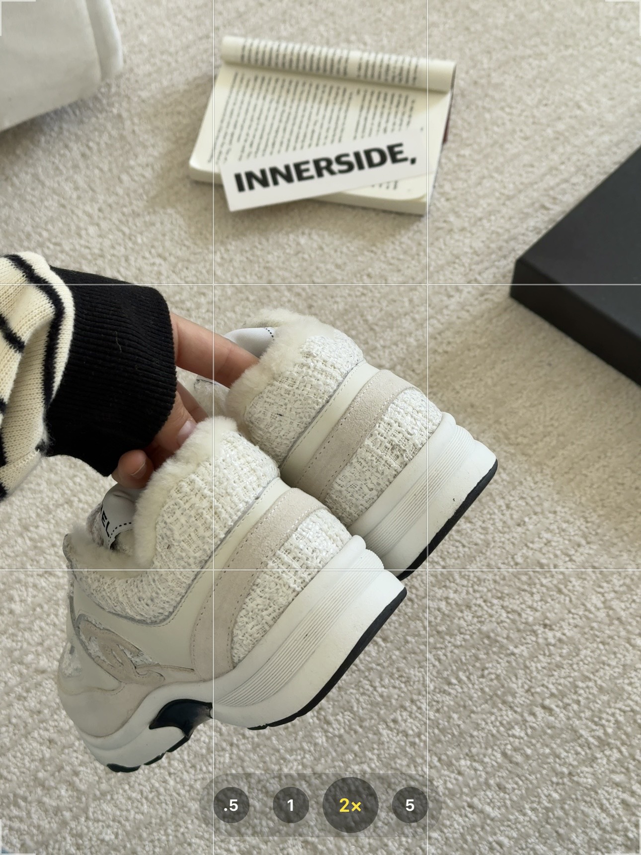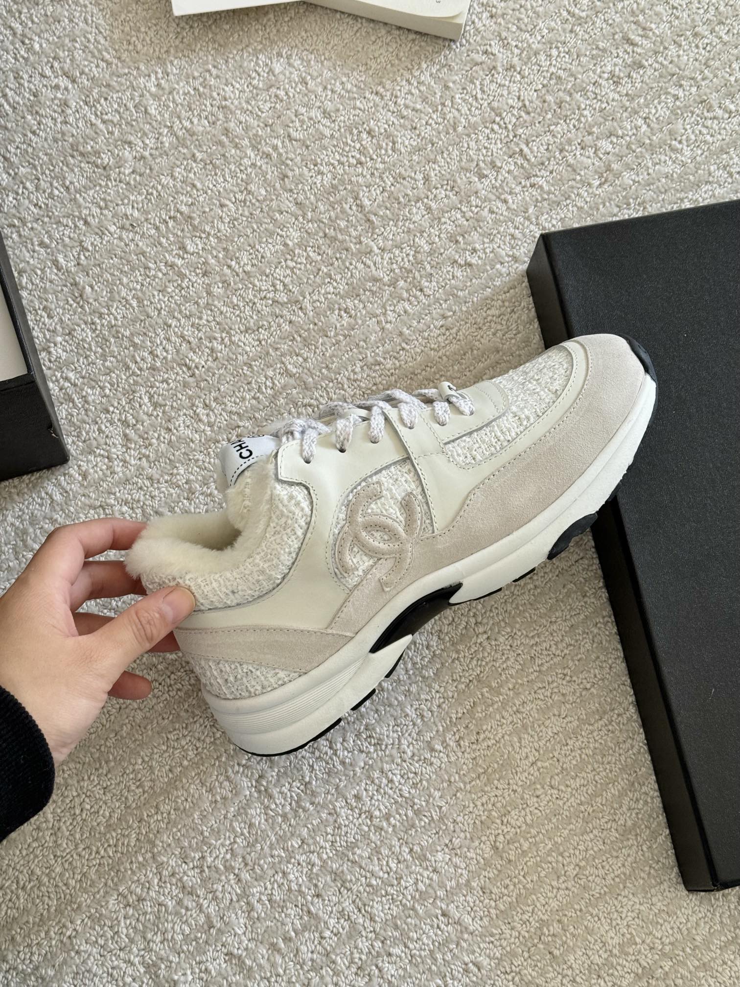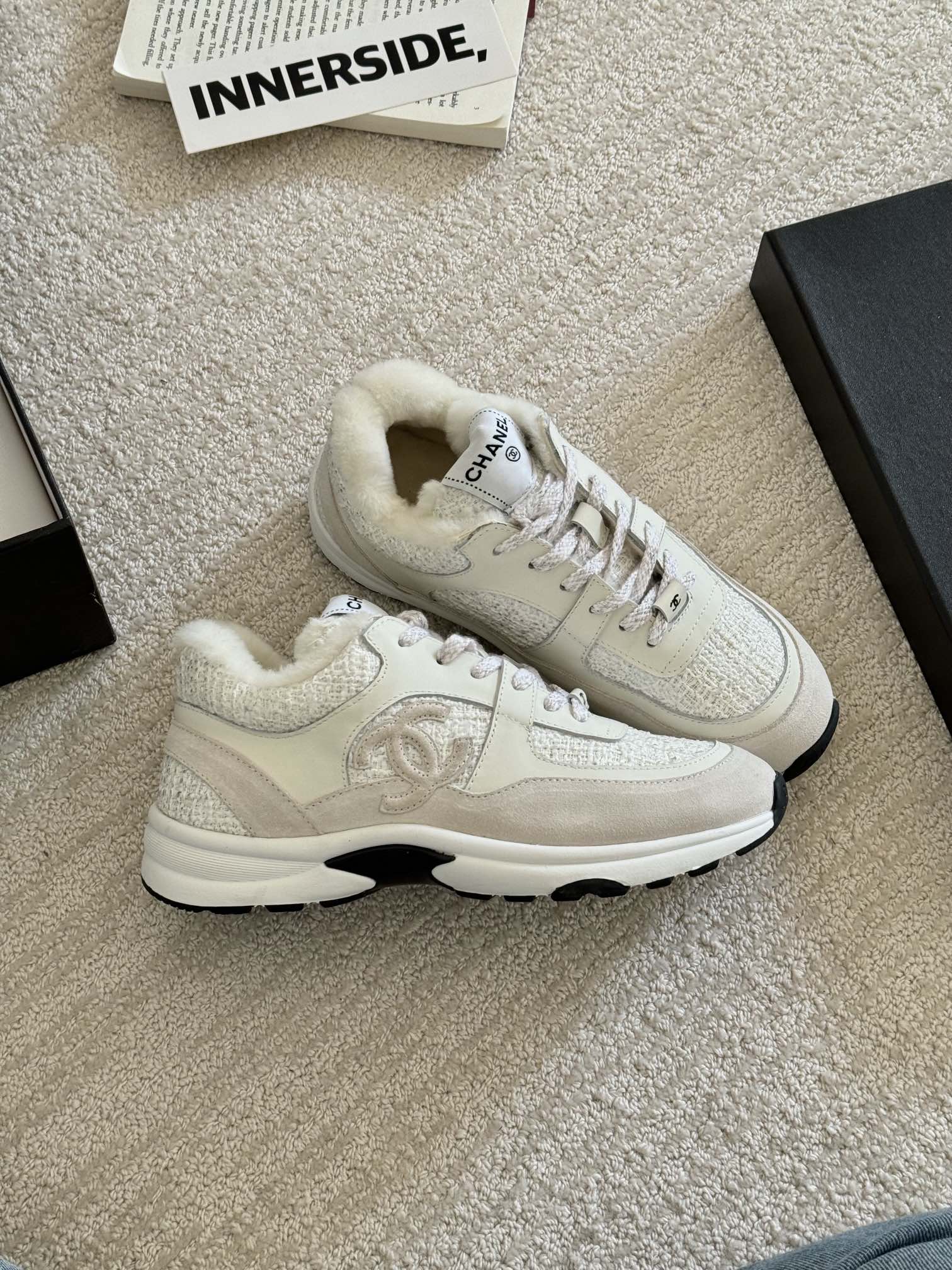 Coarse floral tweed - wins completely in both looks and practicality. Already worn for sports, suitable for autumn and winter sports. The shoes themselves are not heavy, the actual item is absolutely stunning, simply a combination of futuristic and retro feel.