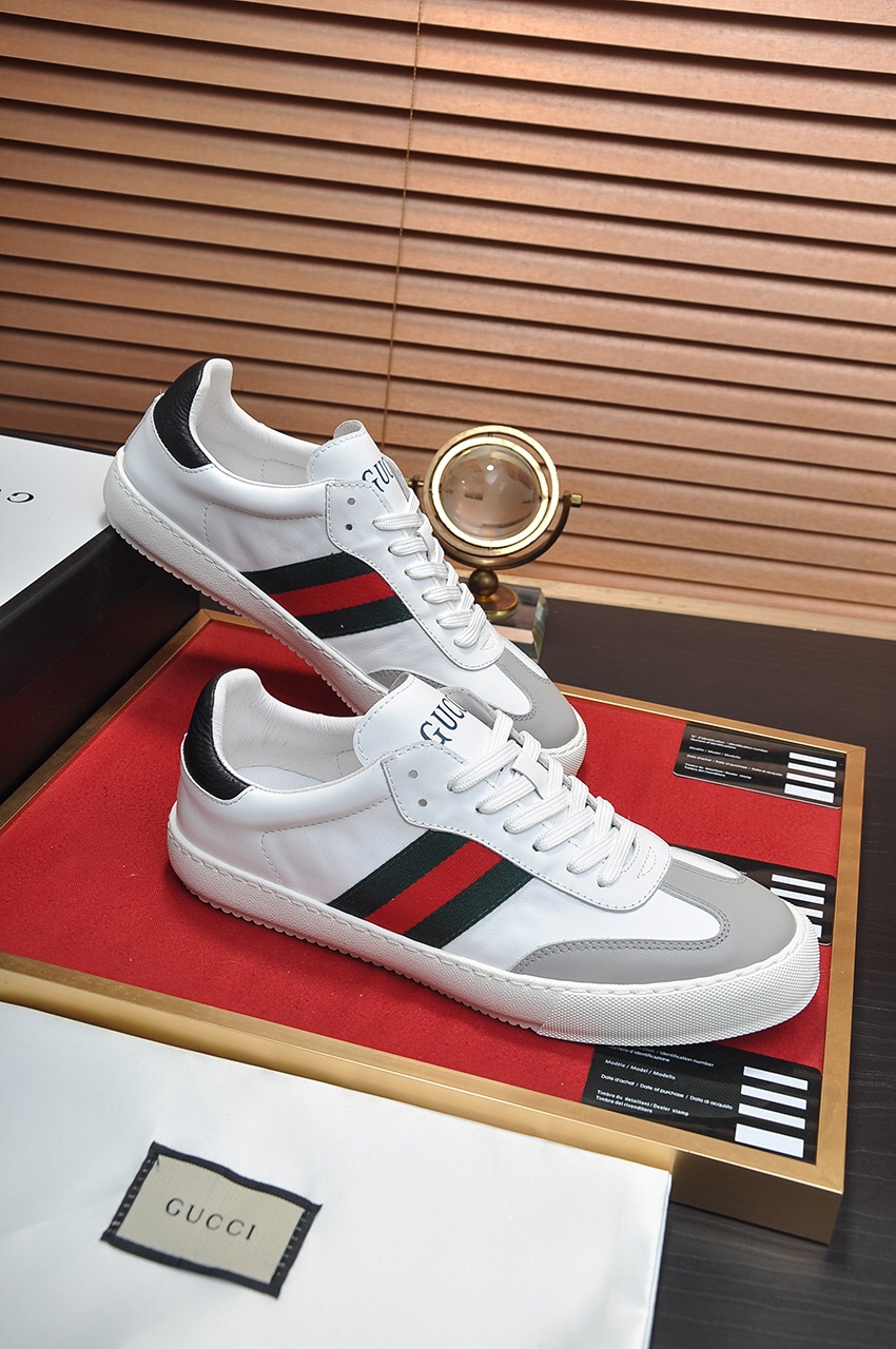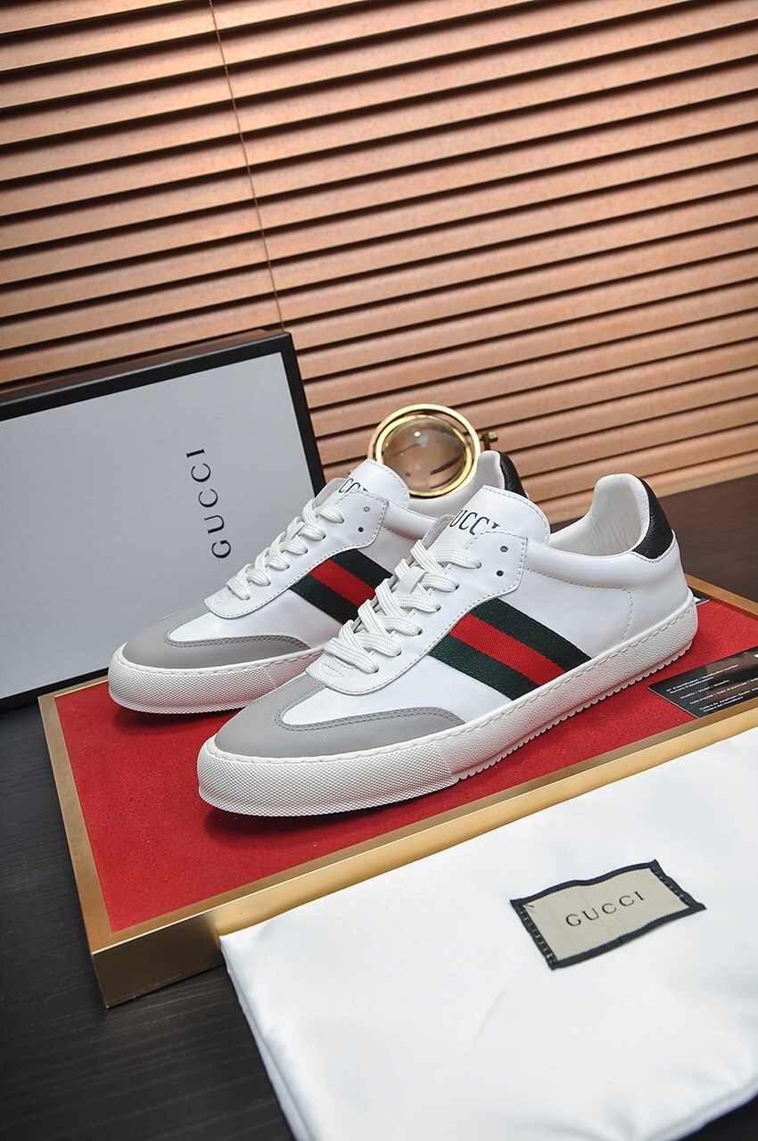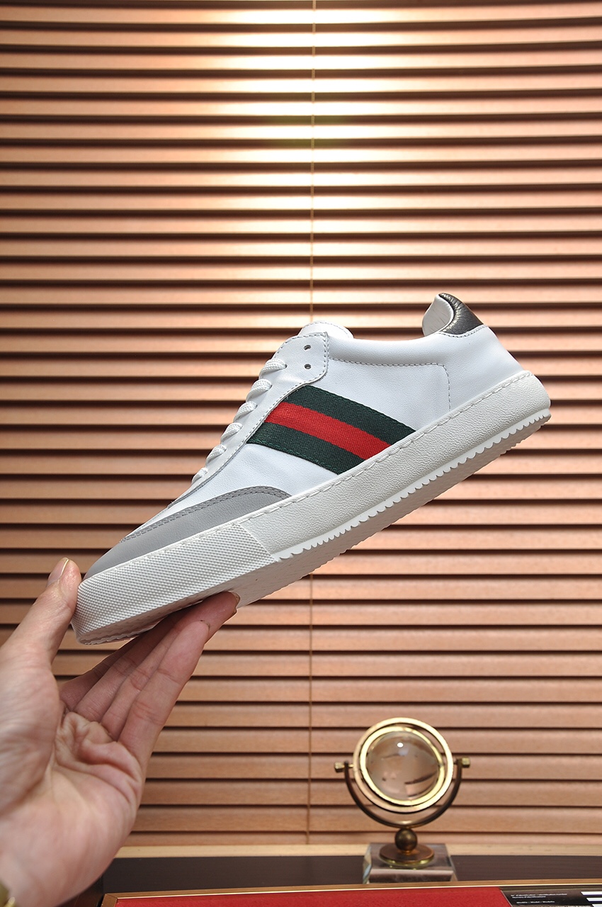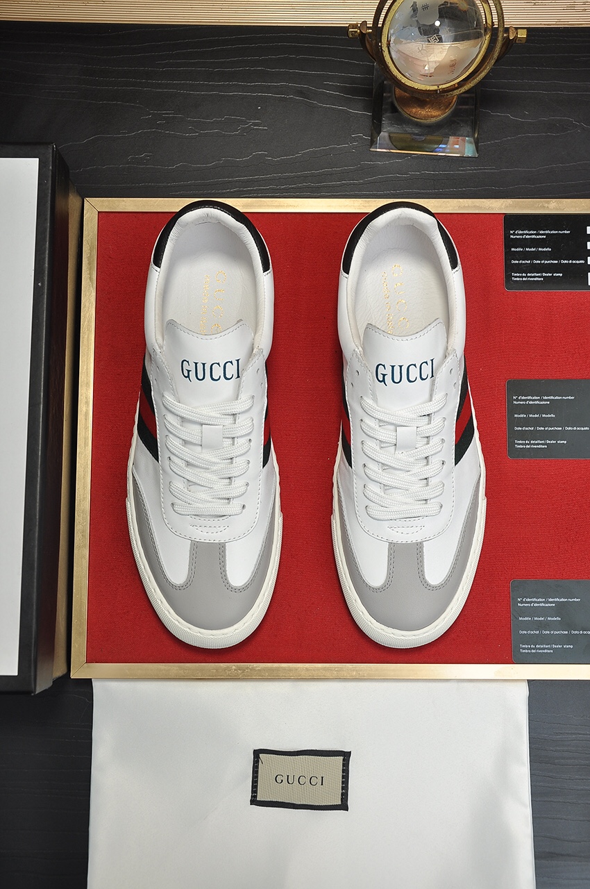 (GUCCI) Men's classic casual shoes, original quality. Upper made of imported Italian cowhide + breathable sheepskin, exquisite workmanship, high-end and elegant. Fashionable model design. Rubber wear-resistant anti-slip sole. Sizes: 38-44.