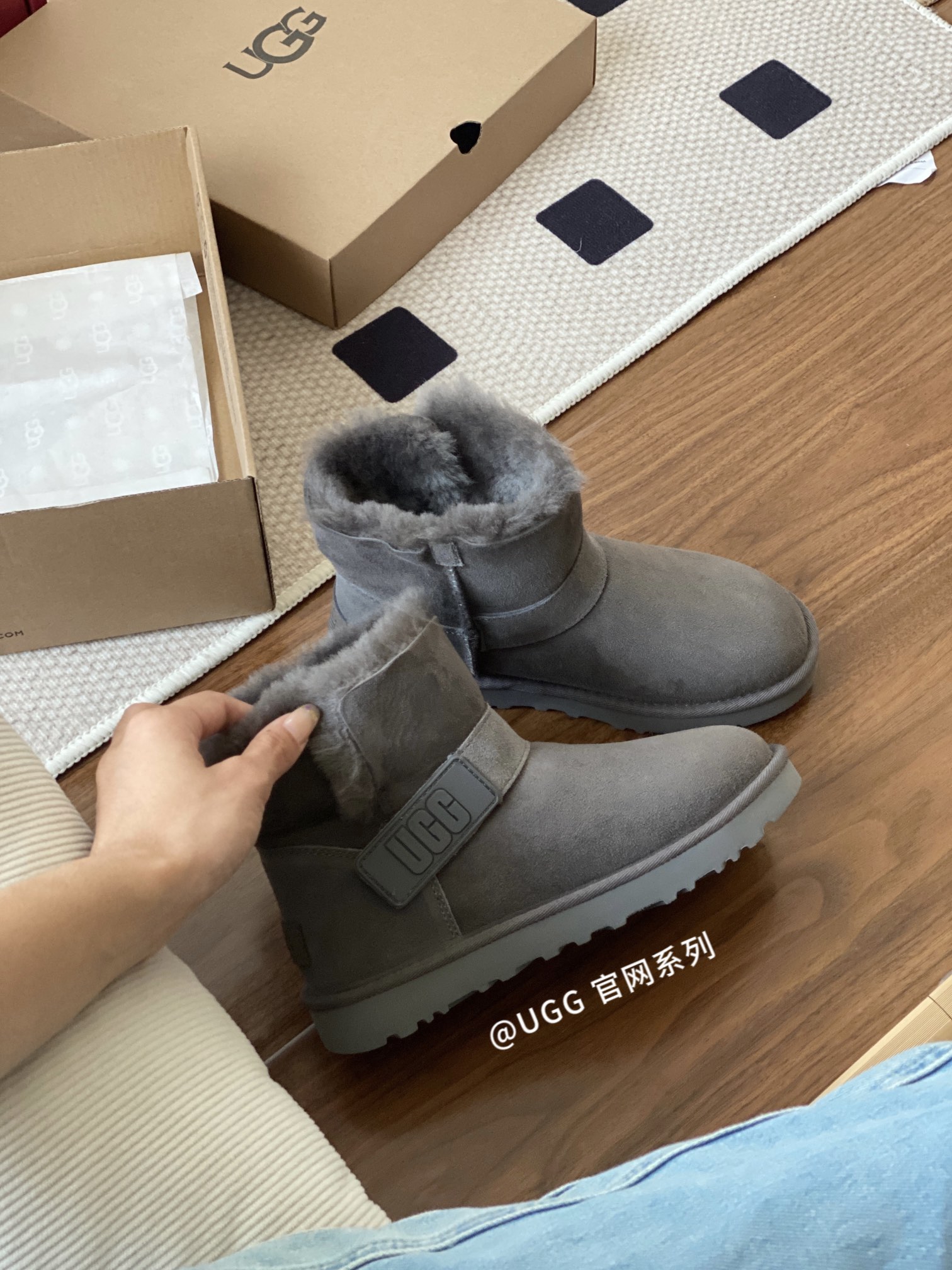 New flat casual logo embossed strap Velcro women's snow boots, fur integrated, three color options, sizes: 35-40 in stock