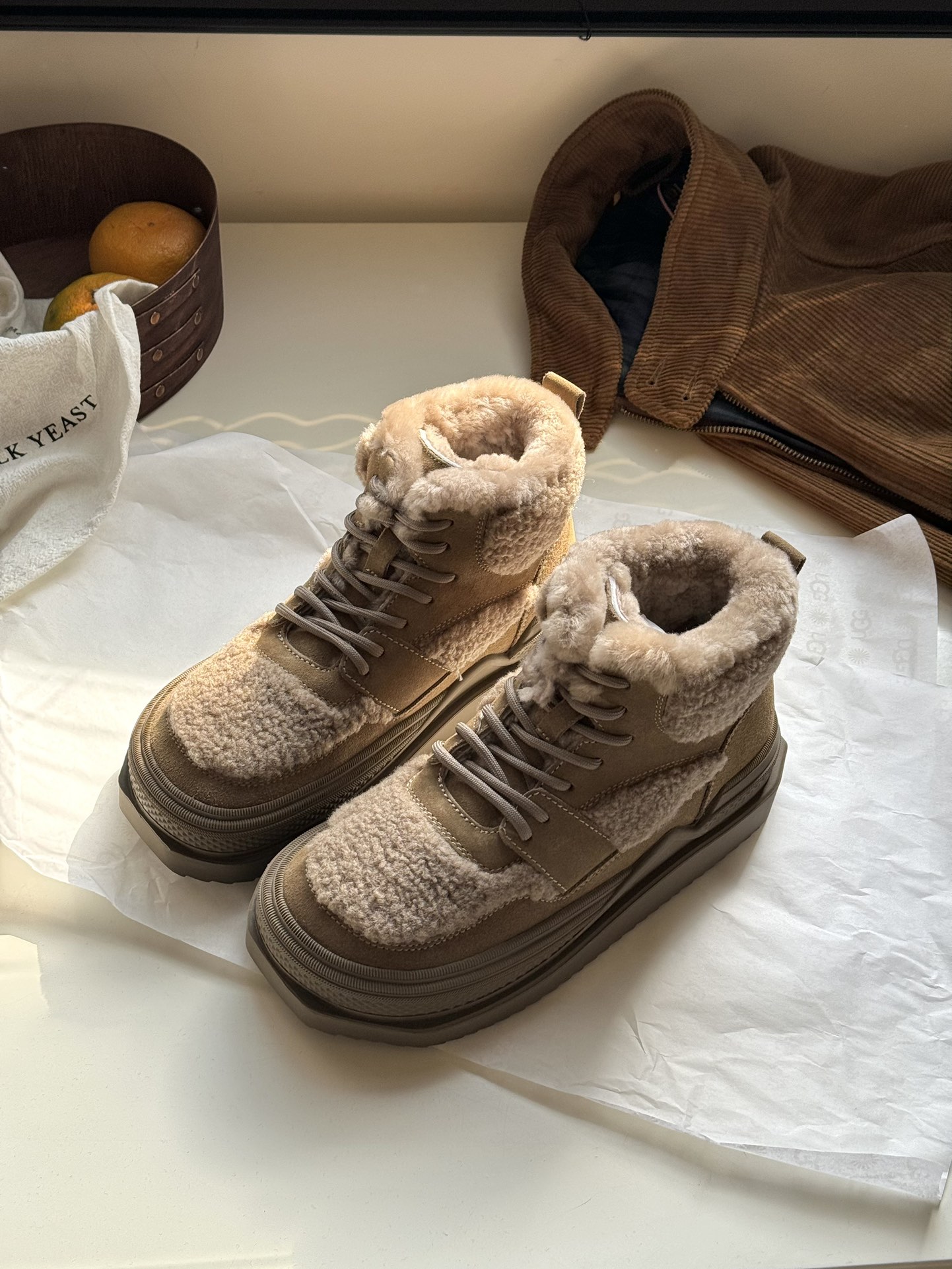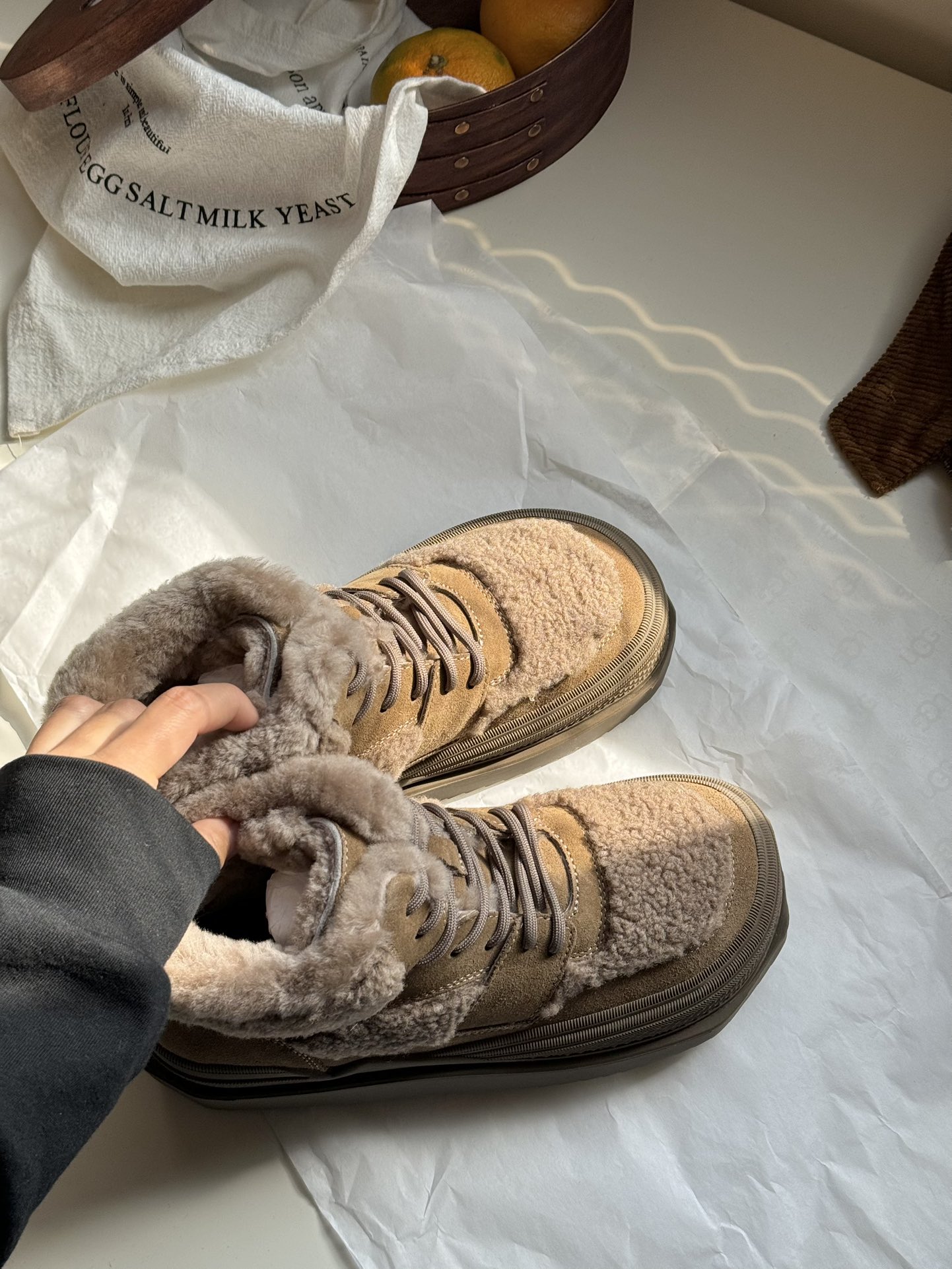 Retro shearling provides top-notch warmth! Super soft to step on! The entire interior is lined with shearling