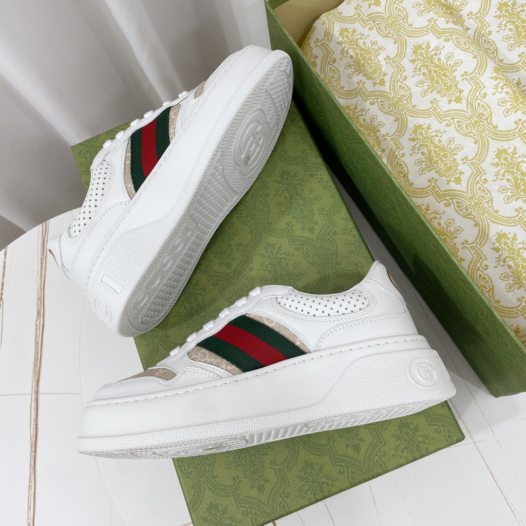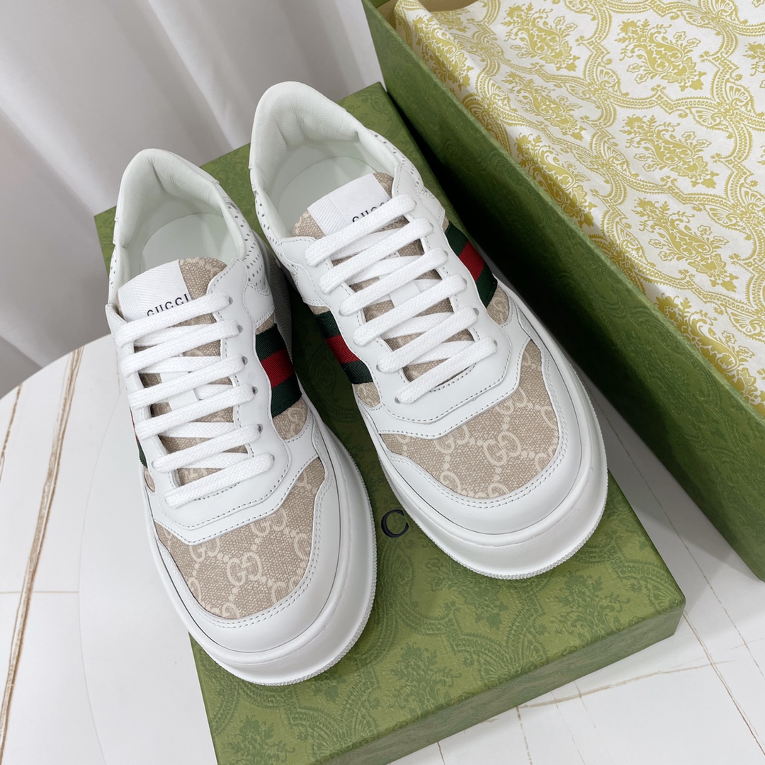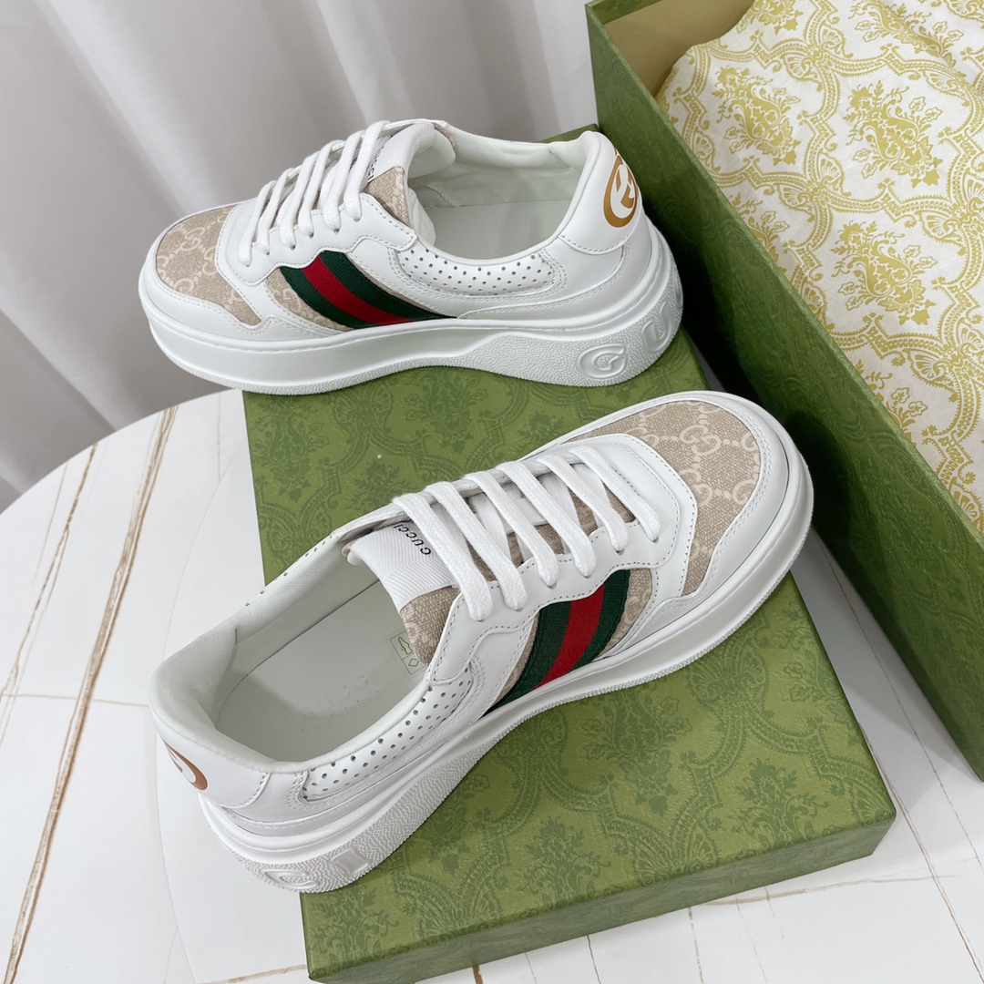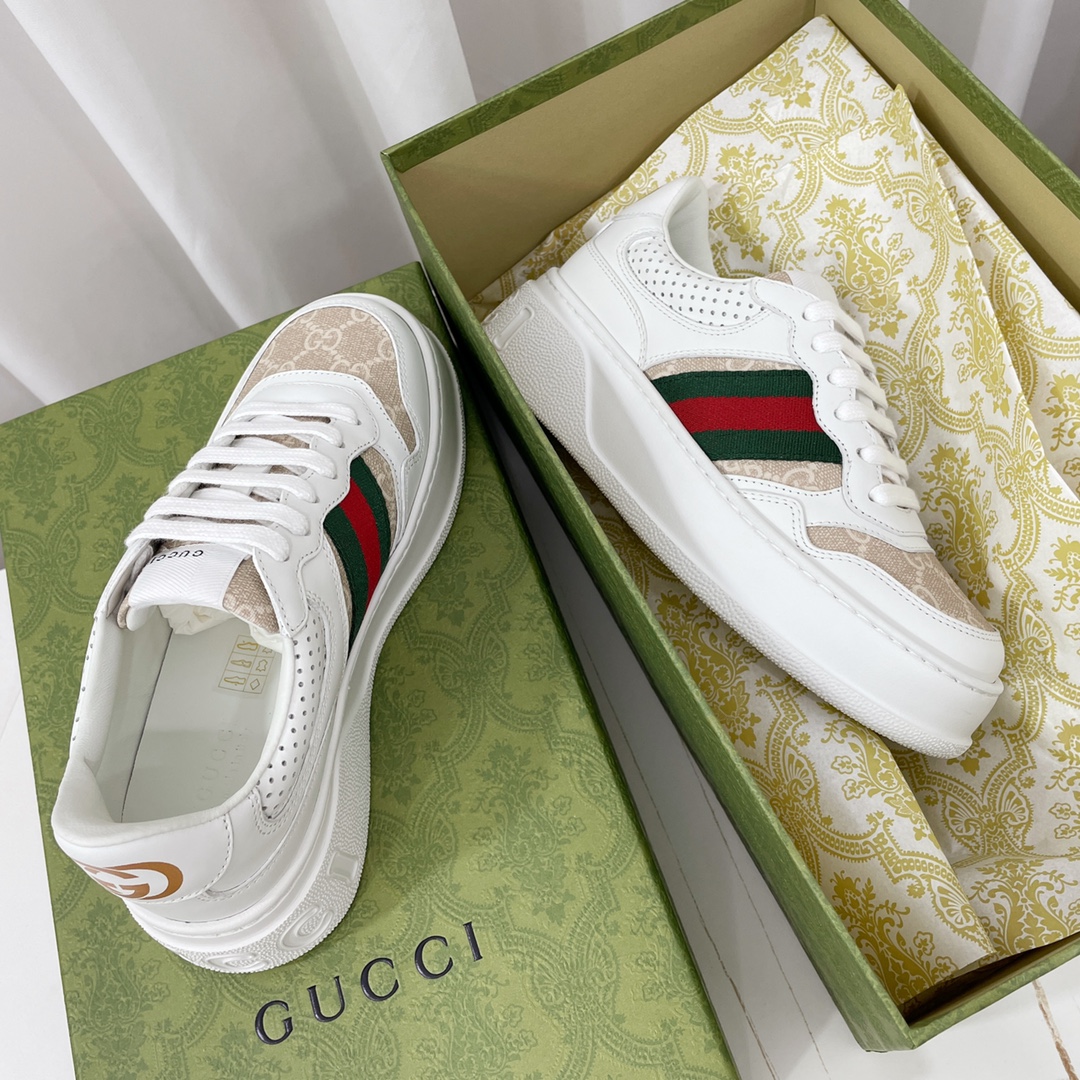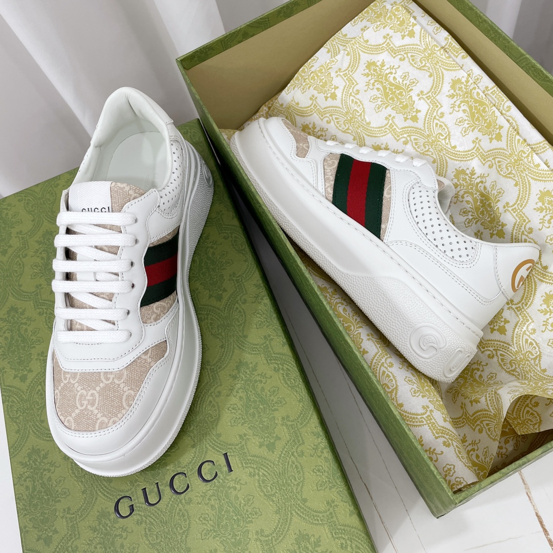 Custom-made original cowhide material (classic monogram fabric, perforated, embossed craftsmanship), original sole features large Gucci Logo, heel also has GG Logo, 5cm platform height, classic Gucci webbing...