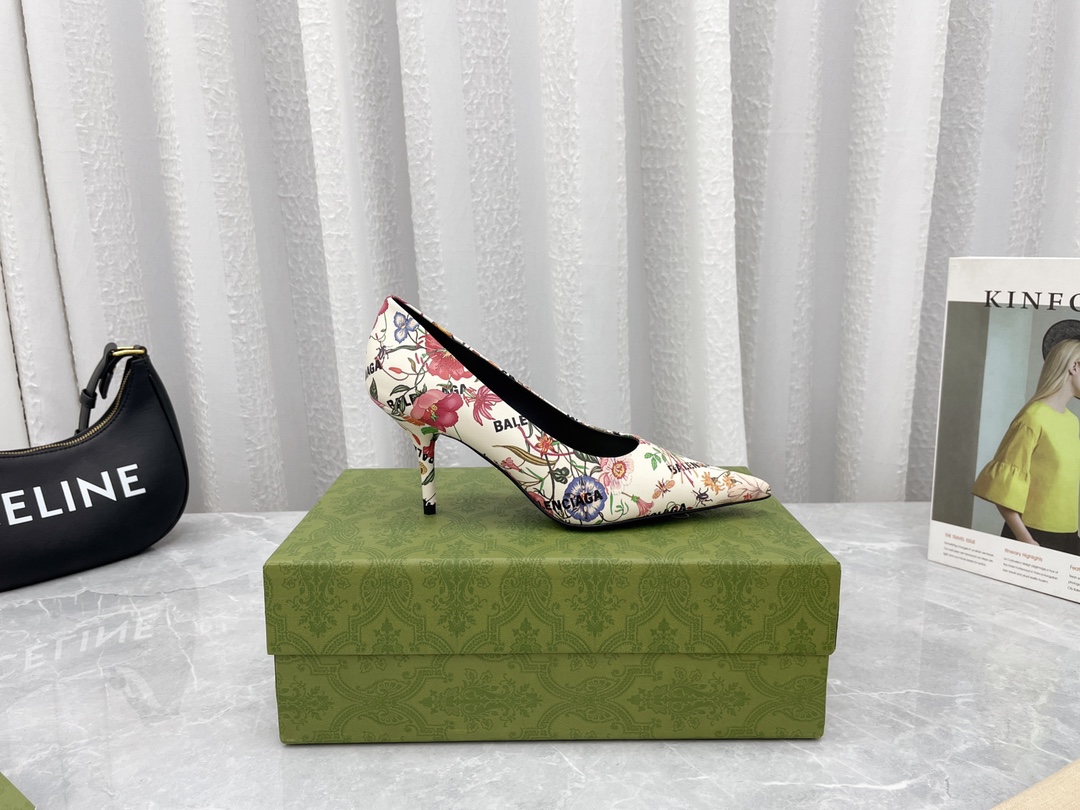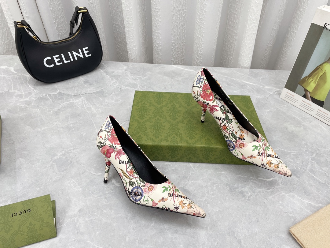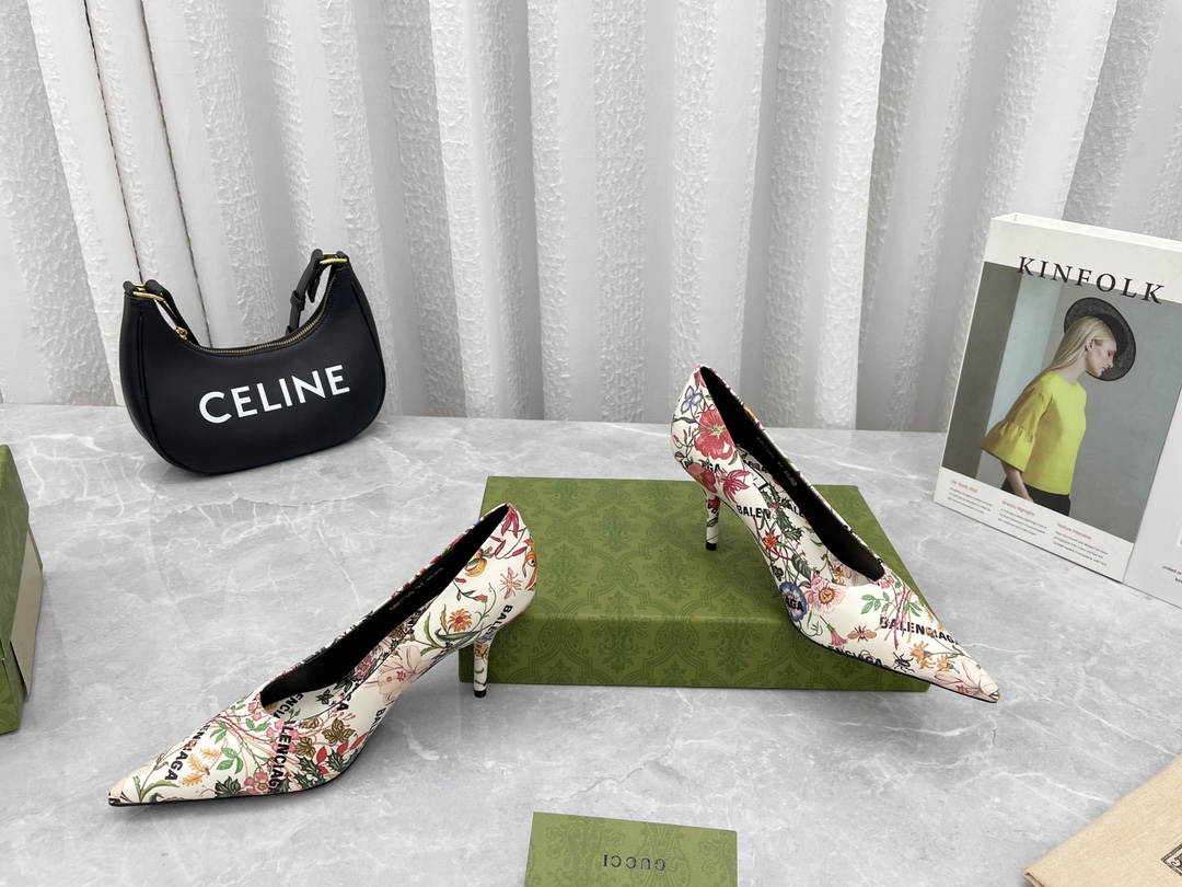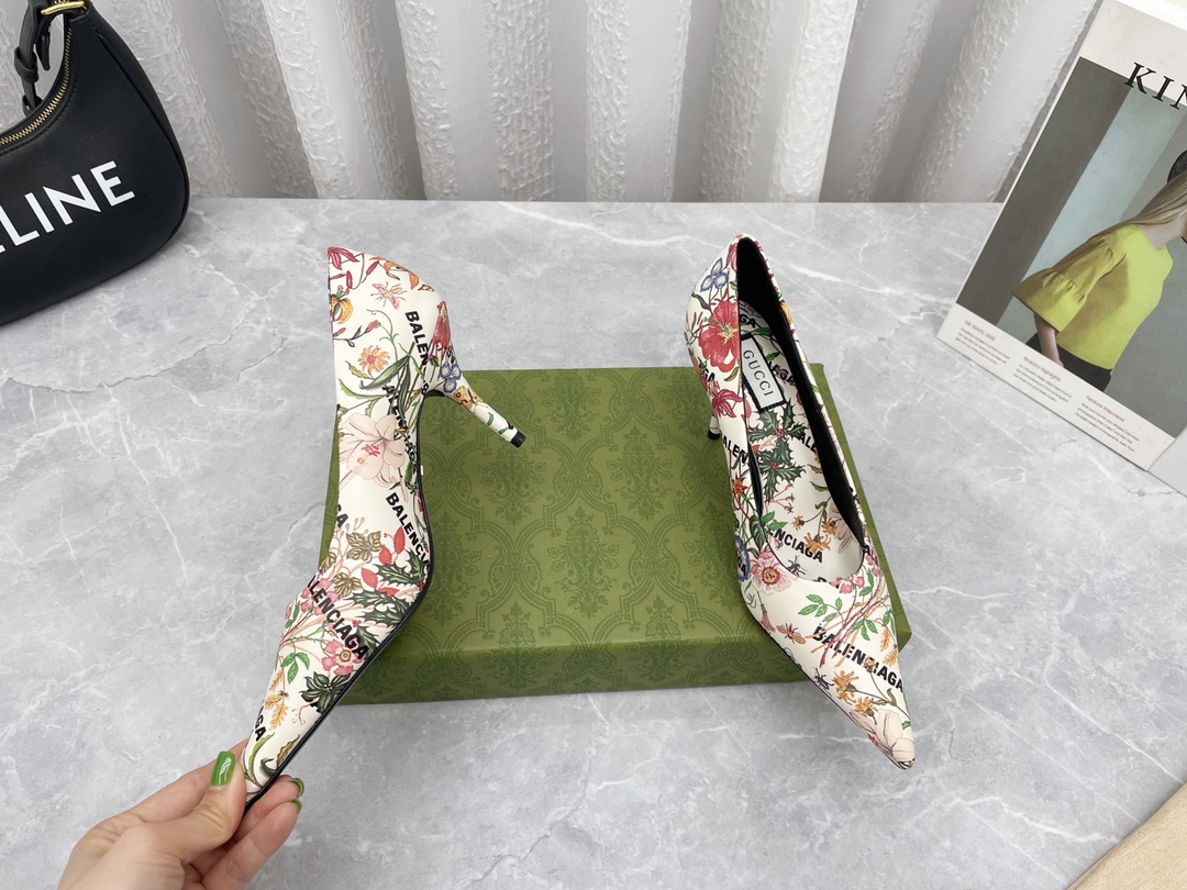 Hundredth Anniversary Collaboration Pop-up Series High Heel Pumps, new product's strong silhouette blends with retro prints, making the collaboration break away from form yet retain its charm everywhere. The cool item, set against large areas of GUCCI monogram, makes Balenciaga appear more like a hidden essence, with little to praise. The designer used Balenciaga's square-toe high heel last through a hit mutual cover design, finally stamping the "BALENCIAGA" Logo and "GUCCI" golden sole tab, giving the product a strong collaborative vibe and exquisite appearance, showcasing a cool and spicy style. The exterior lines are smooth and elegant, a must-have trendy item for cool fashionistas...