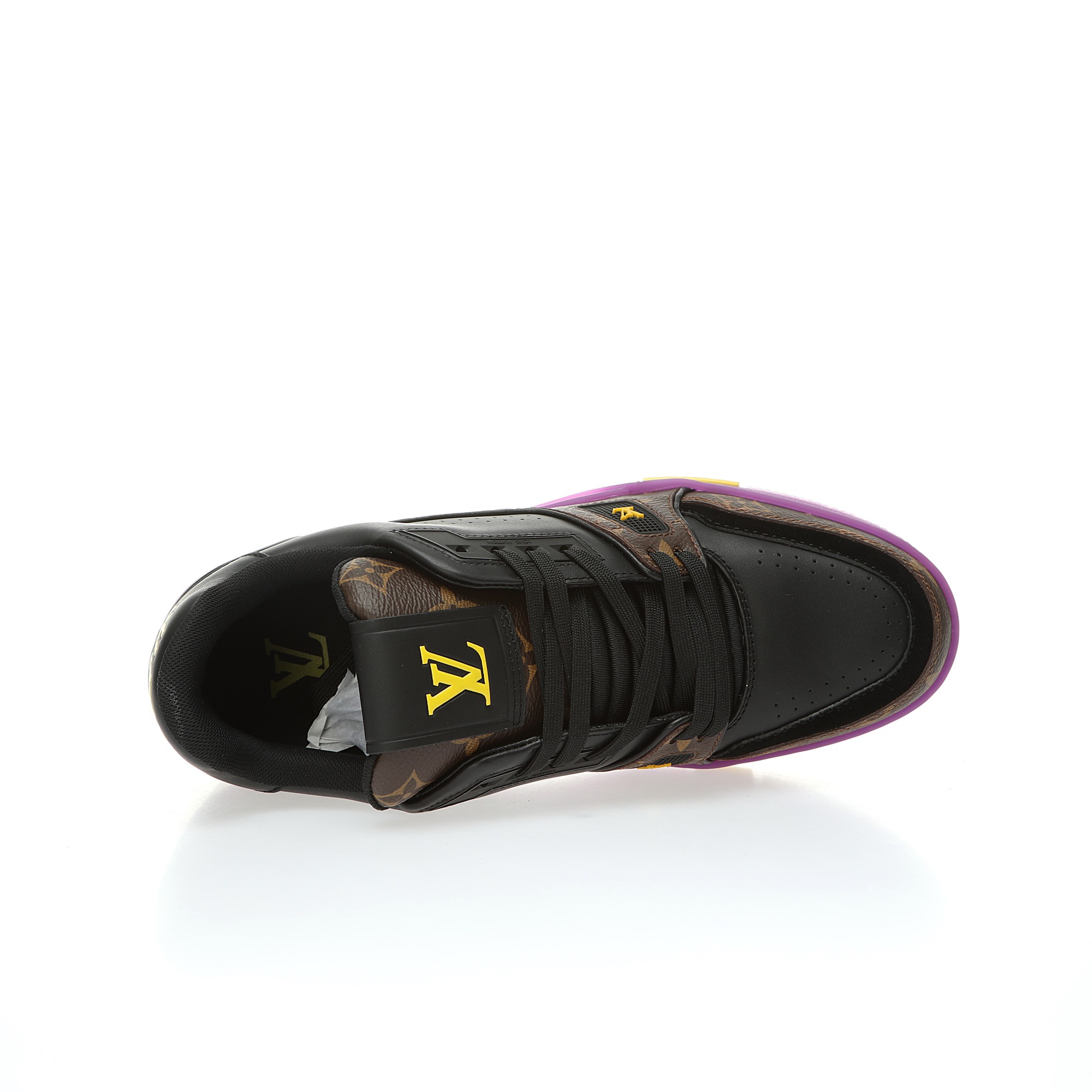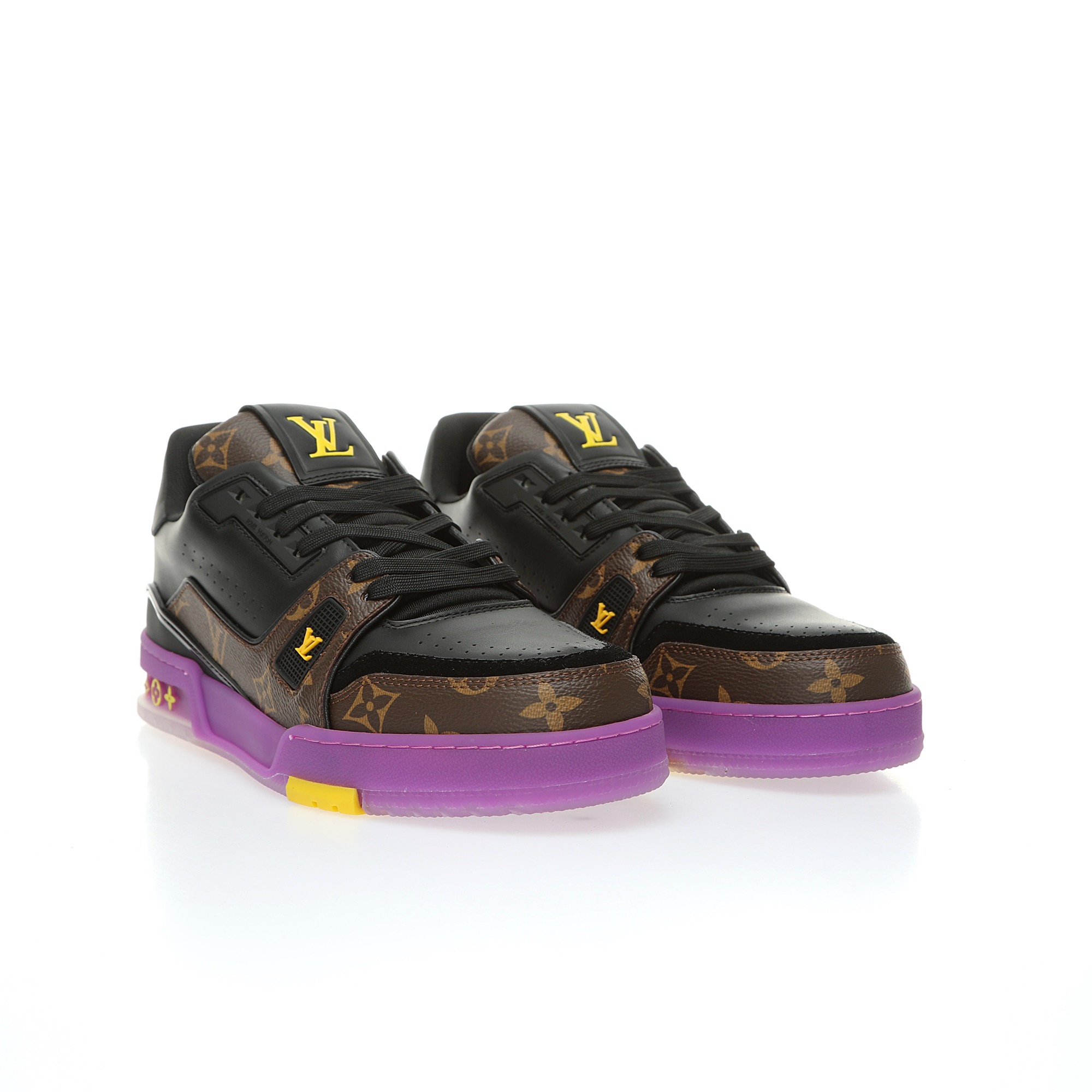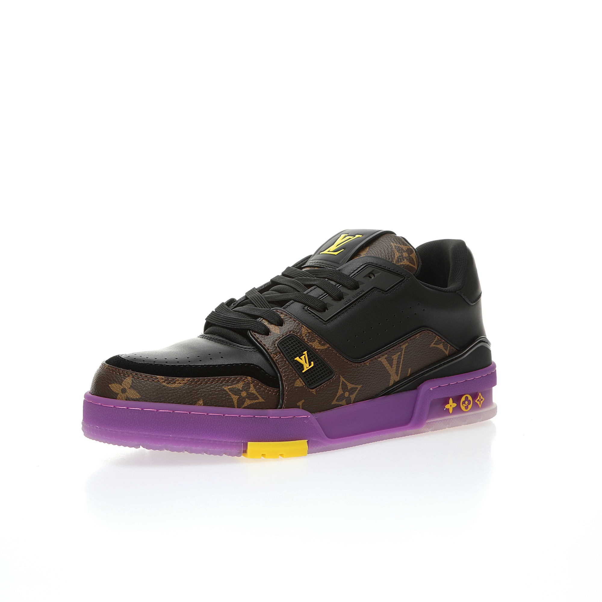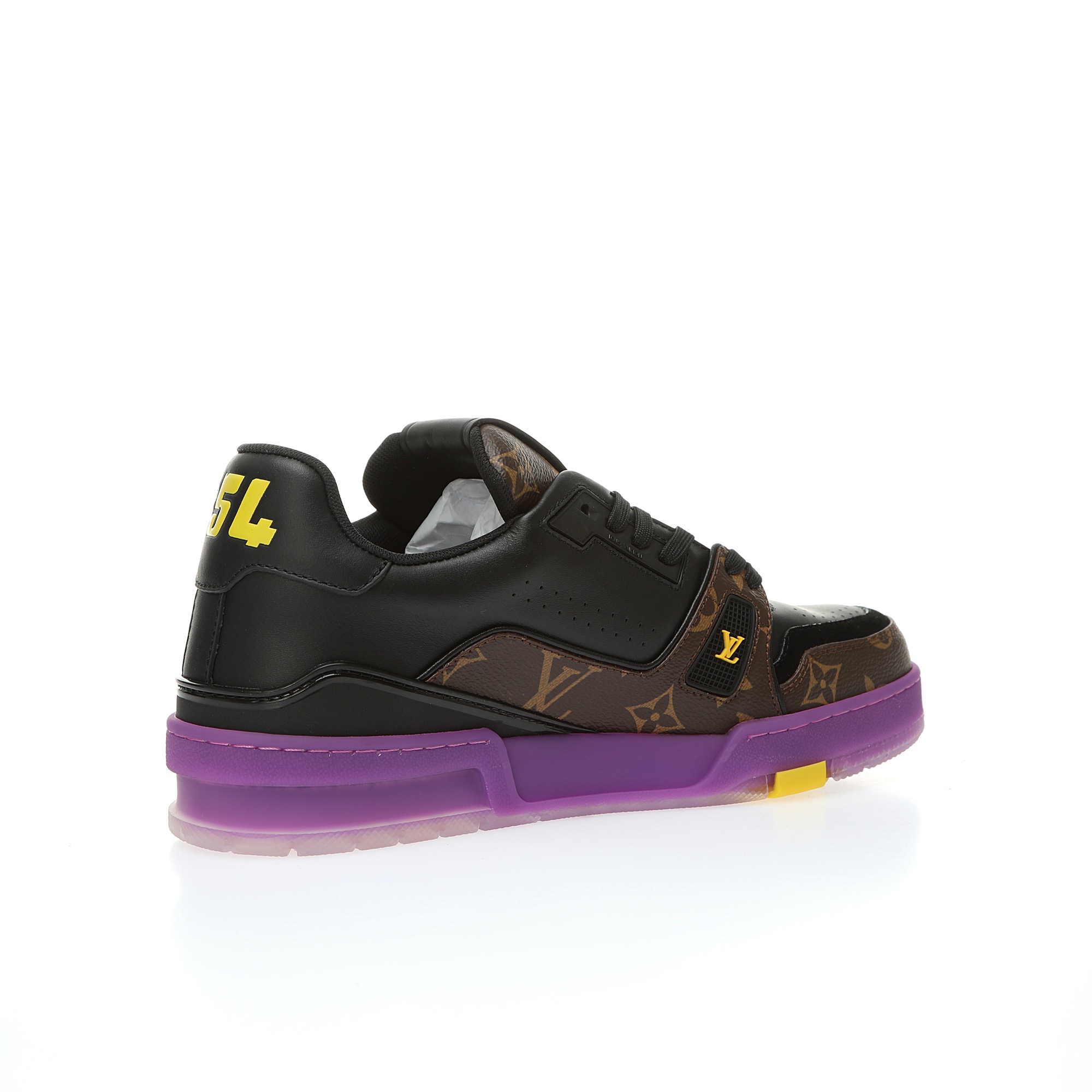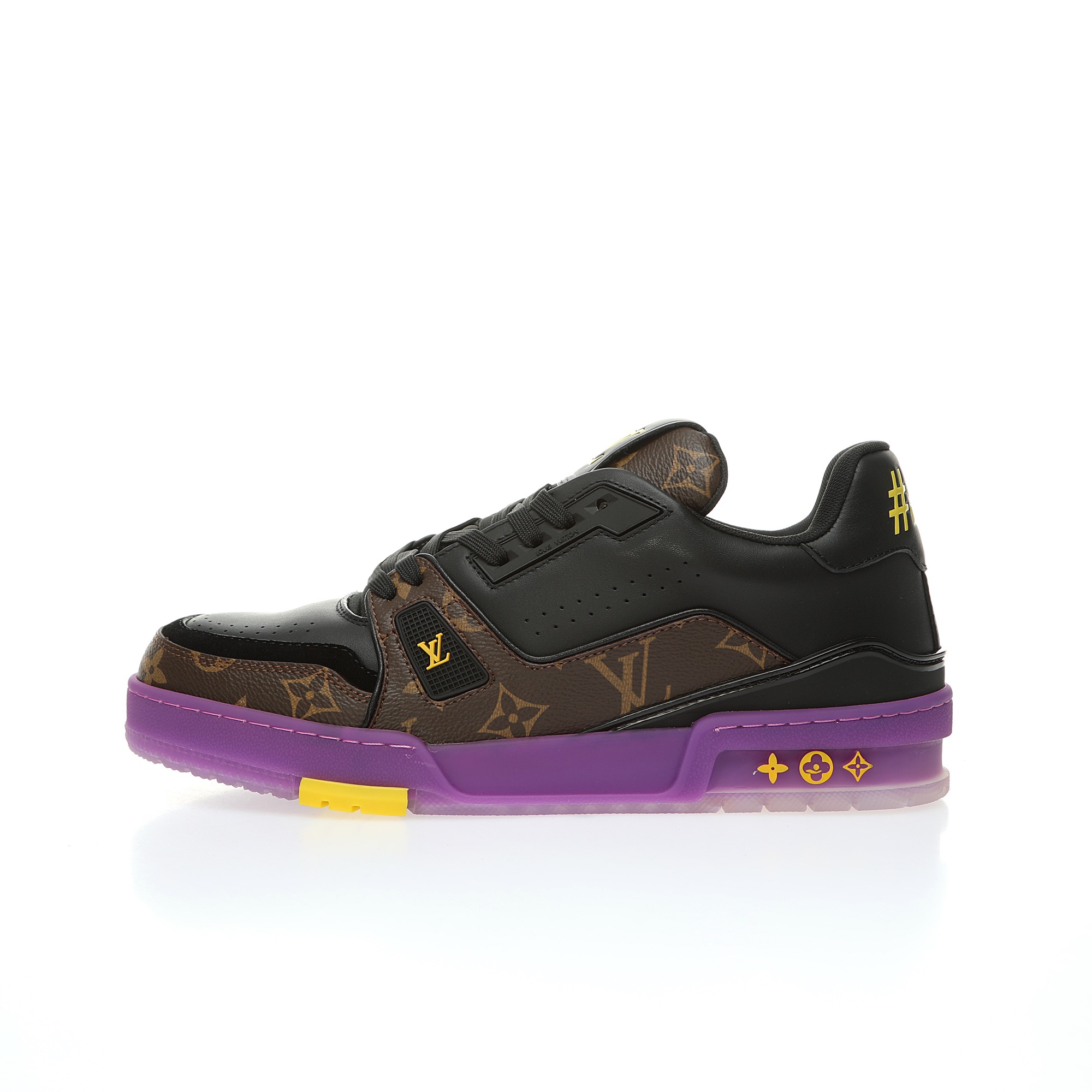 Original title: LV Louis Vuitton trainer uses imported fine grain top-layer calf leather and Damier canvas upper material. #Flex-resistant injection molded support plate#Embedded thickened ultra-soft EVA eco-friendly insole#Original three-layer combined TPR glossy shoe sole! LV's basketball shoes, designed personally by Virgil Abloh! The new LV Louis Vuitton Trainer sneaker low series low-top retro casual sports culture versatile basketball sneakers "Leather Black Brown Monogram Lakers Purple Yellow" 1a8wi5