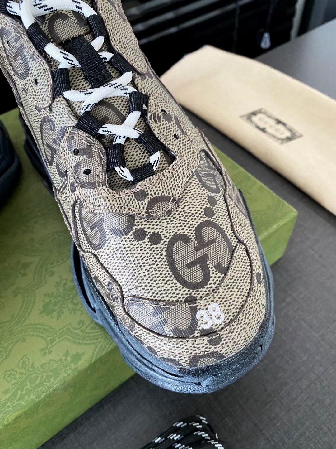New color TPU eight-layer sole Gucci "Aria - Fashion Aria" fashion series launches The Hacker Project series, exploring the fashion industry's concepts of originality and appropriation. Alessandro Michele pays tribute to heritage and classics with a new series, combining iconic Balenciaga silhouettes and Gucci elements to create witty and harmonious new creativity. Sizes 35-45 (women's 41, 42, men's 39, 46 can be custom-made, no returns or exchanges)