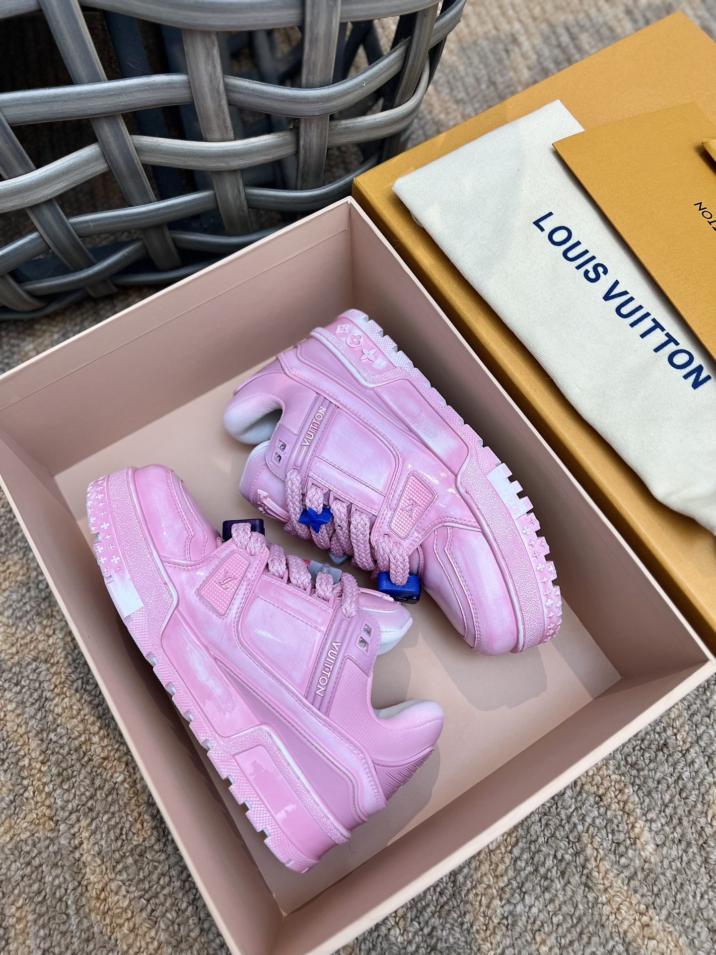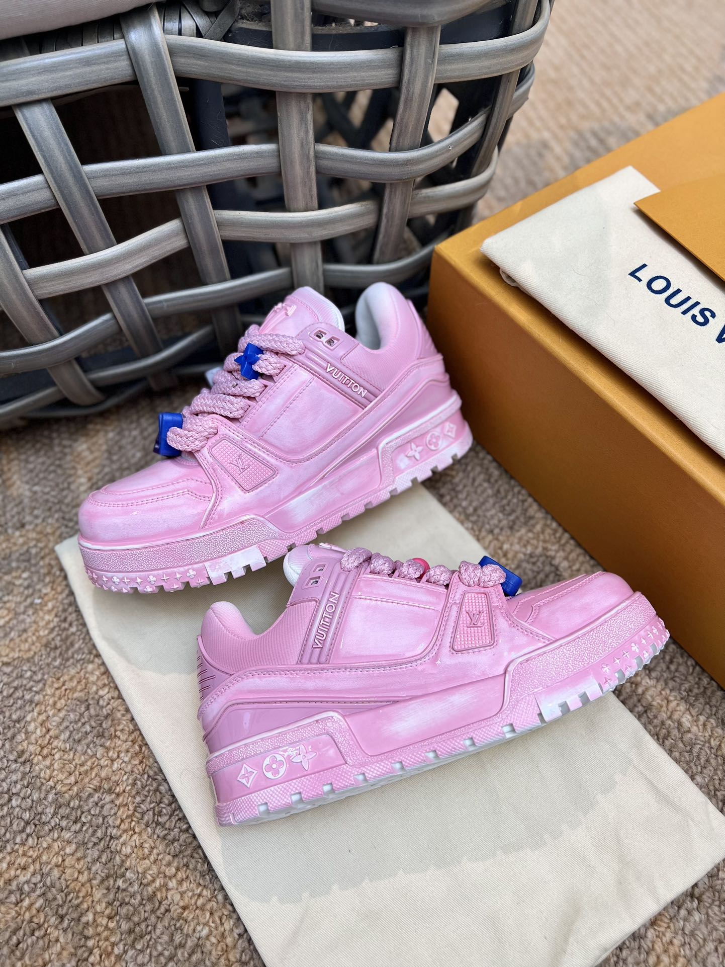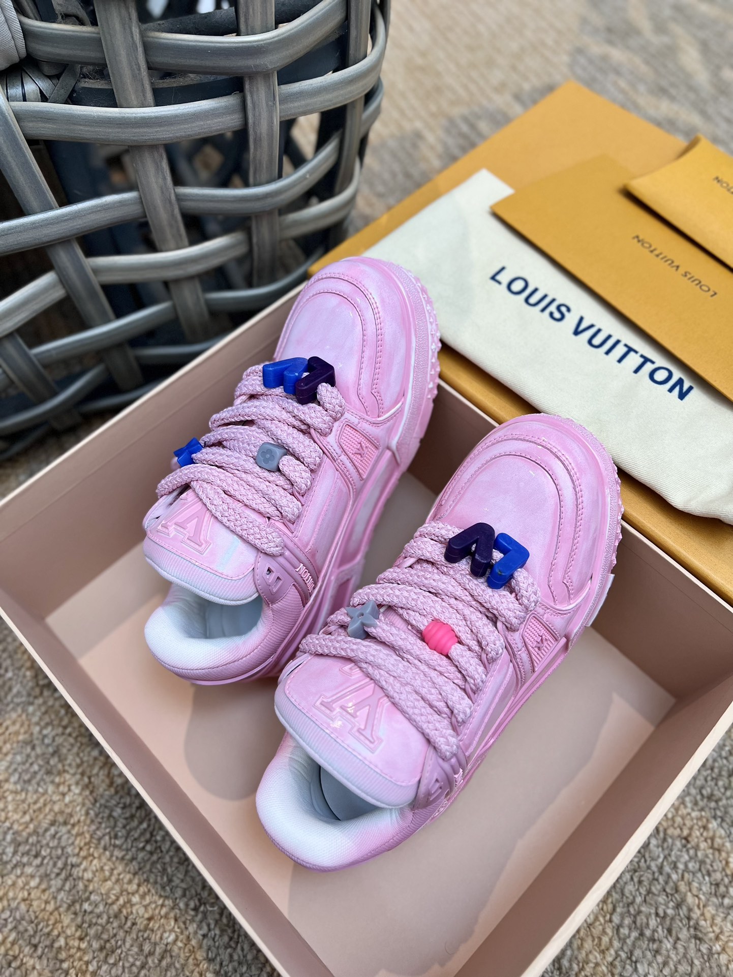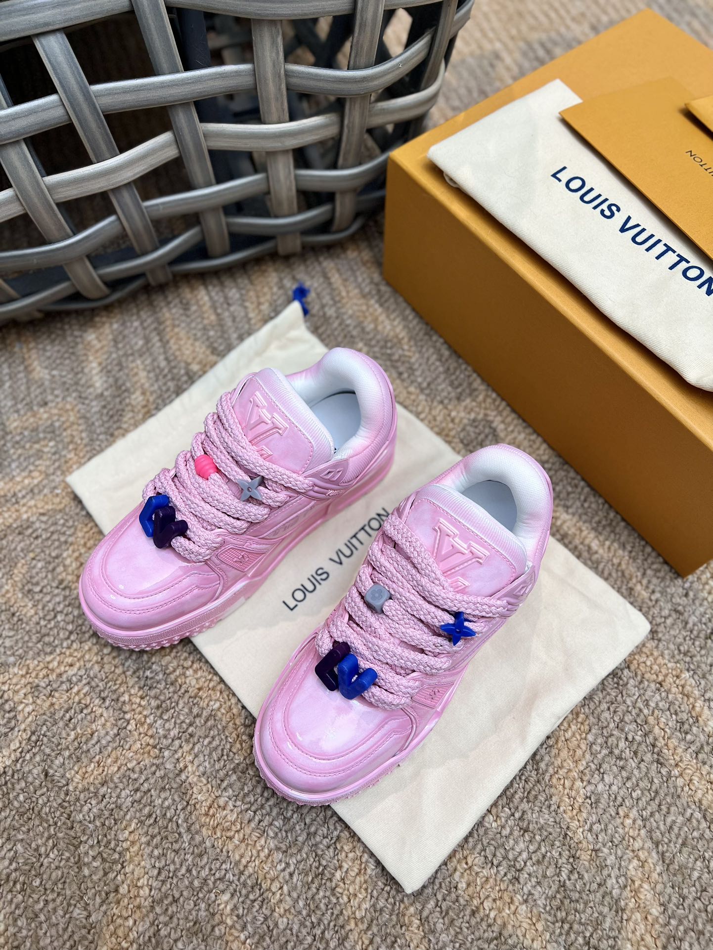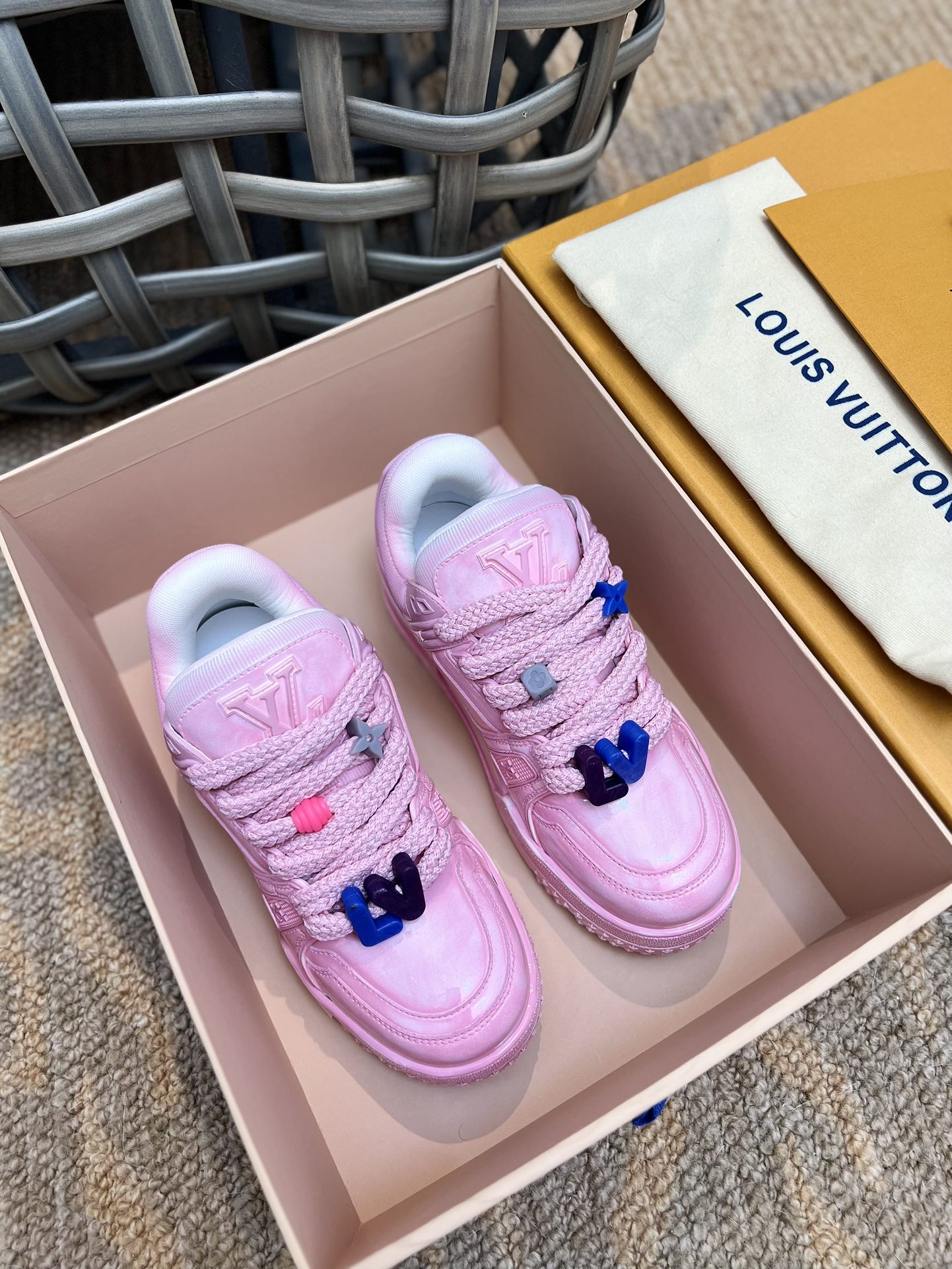 LOUIS SS23 showpiece Trainer DIY beaded small Pading bread shoe|Three-dimensional and full colorful shoe body|Paired with contrasting letters and logo on the laces|The entire shoe looks as if molded from clay, full of childlike innocence between trendiness and coolness|Original custom imported top-grain leather|Adhesive process with color wiping for an aged effect|Original custom breathable mesh lining|Original molded TPU combination outsole|Sole thickness: 3.5CM,