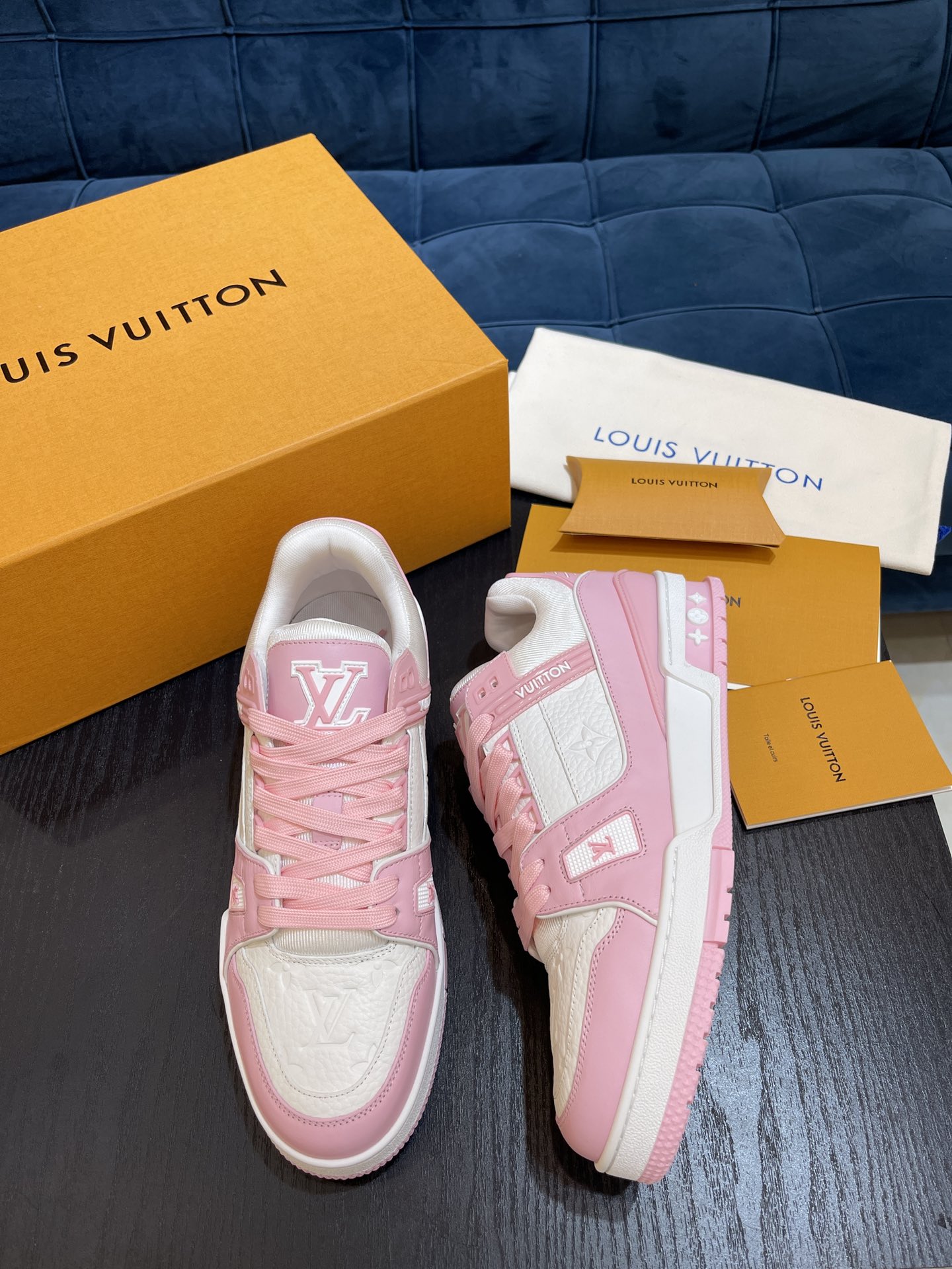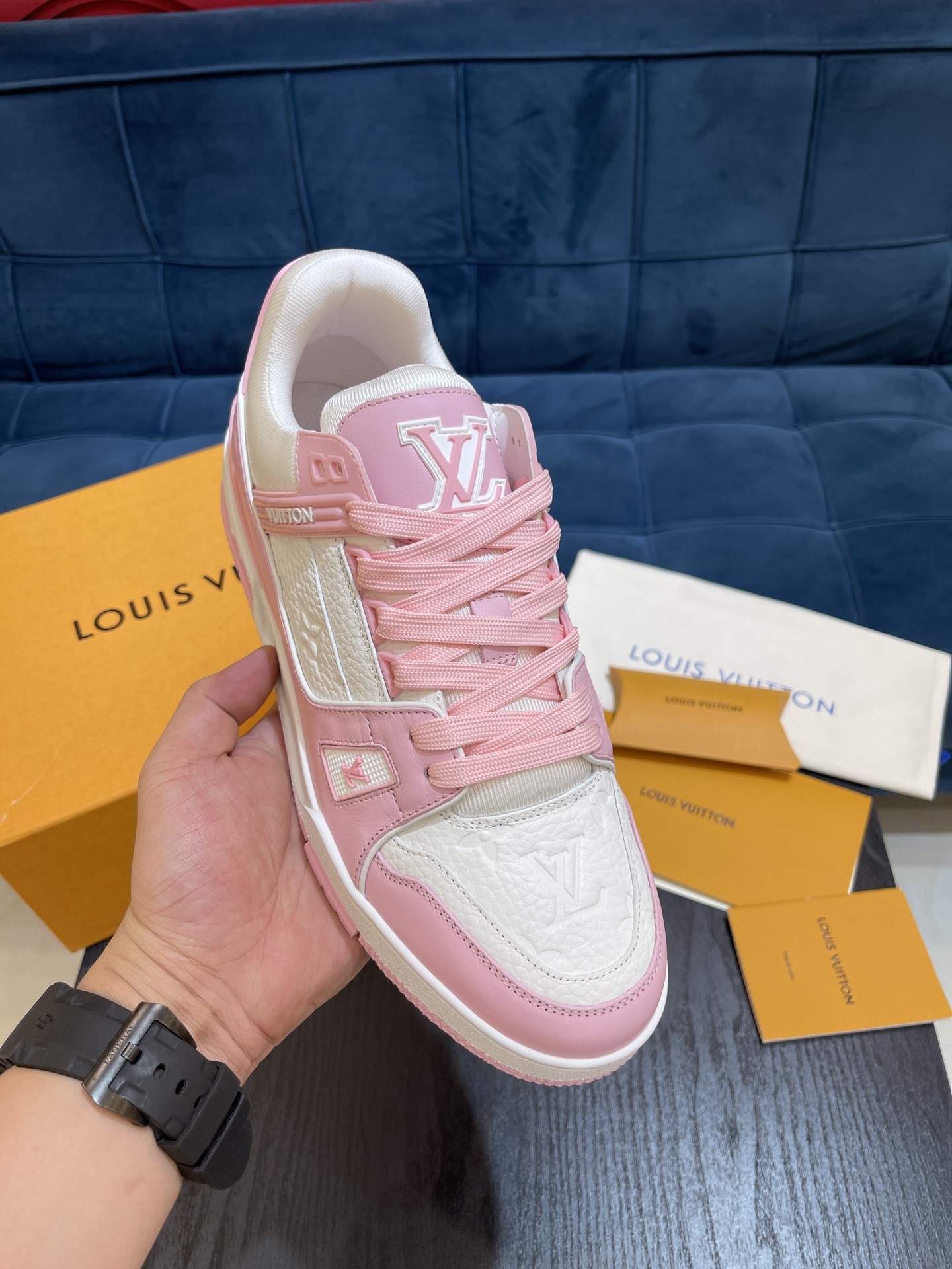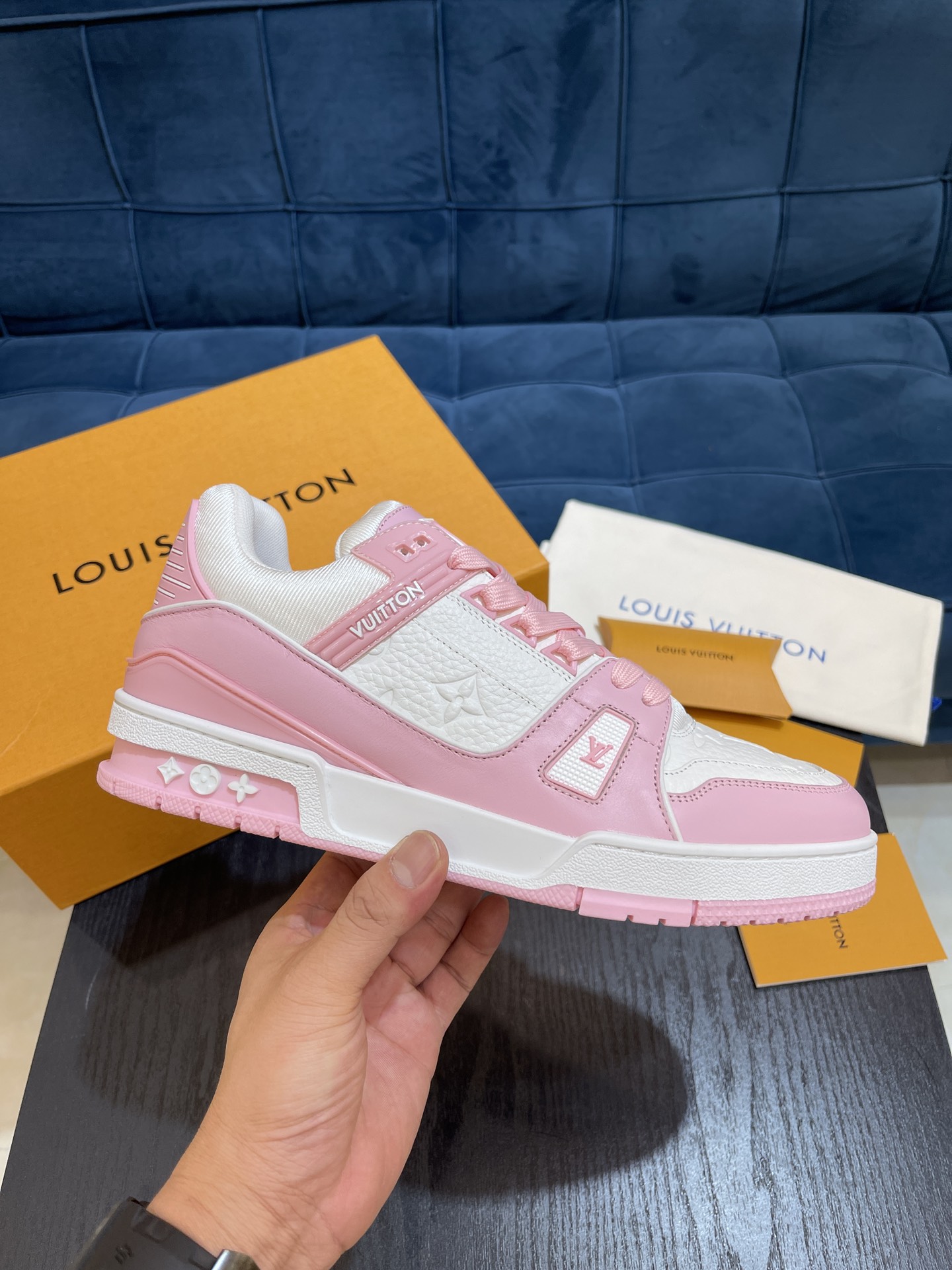 Virgil Abloh drew inspiration from retro basketball shoes to create the highly sought-after LV Trainer sneakers. This shoe features grained calf leather embossed with the iconic Monogram pattern, combined with smooth calf leather to create a new classic design.
