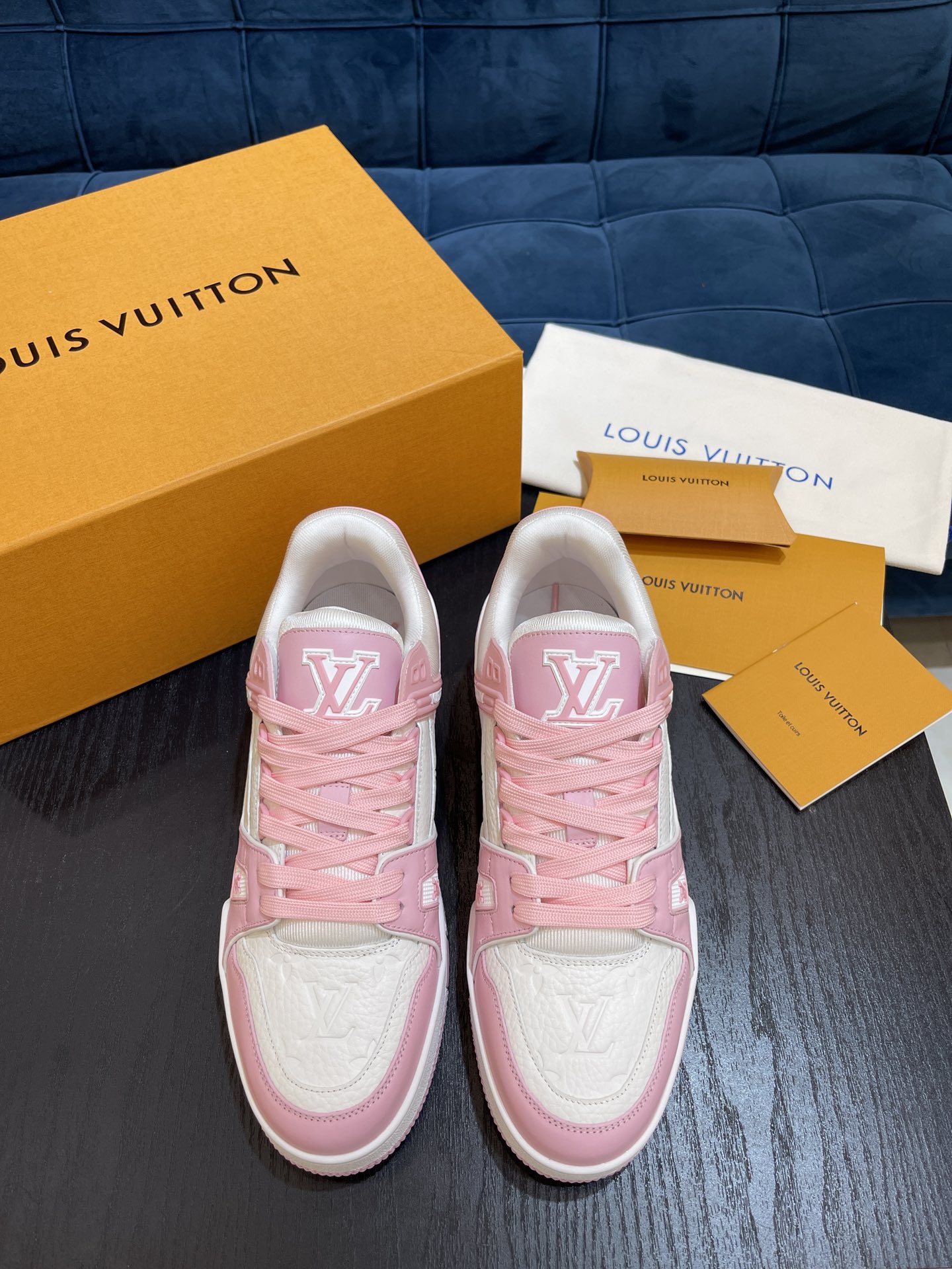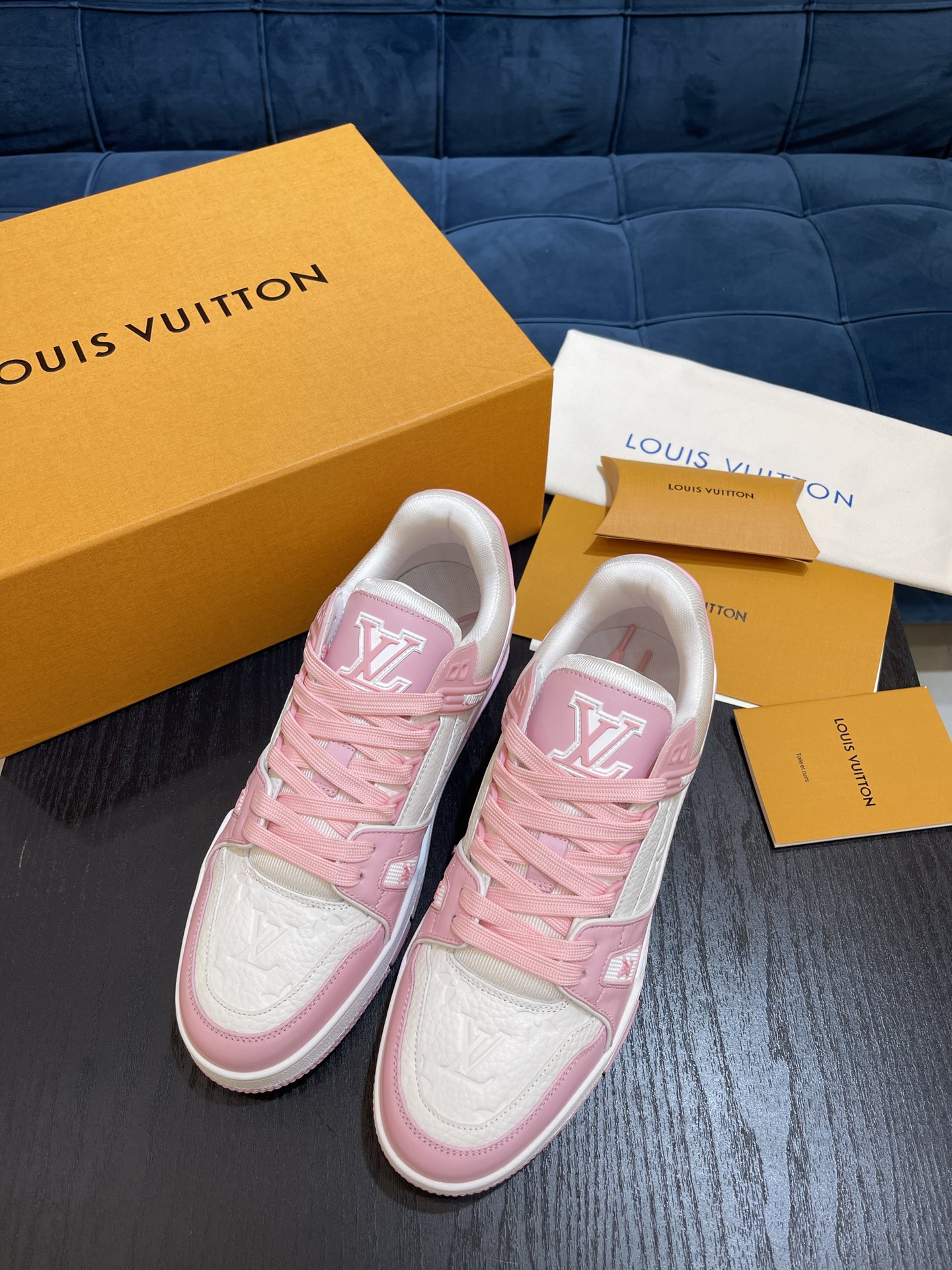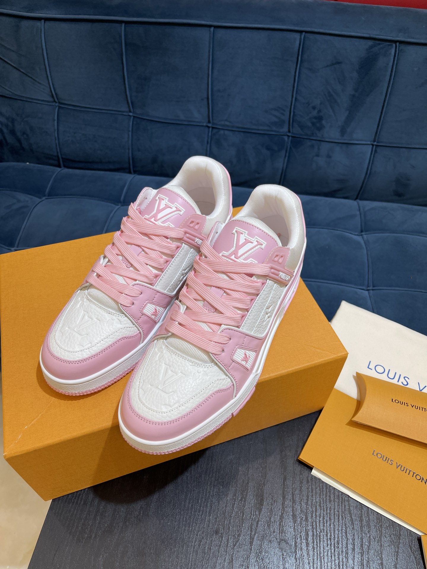 Virgil Abloh drew inspiration from retro basketball shoes to create the highly sought-after LV Trainer sneakers. This shoe features grained calf leather embossed with the iconic Monogram pattern, combined with smooth calf leather to create a new classic design.