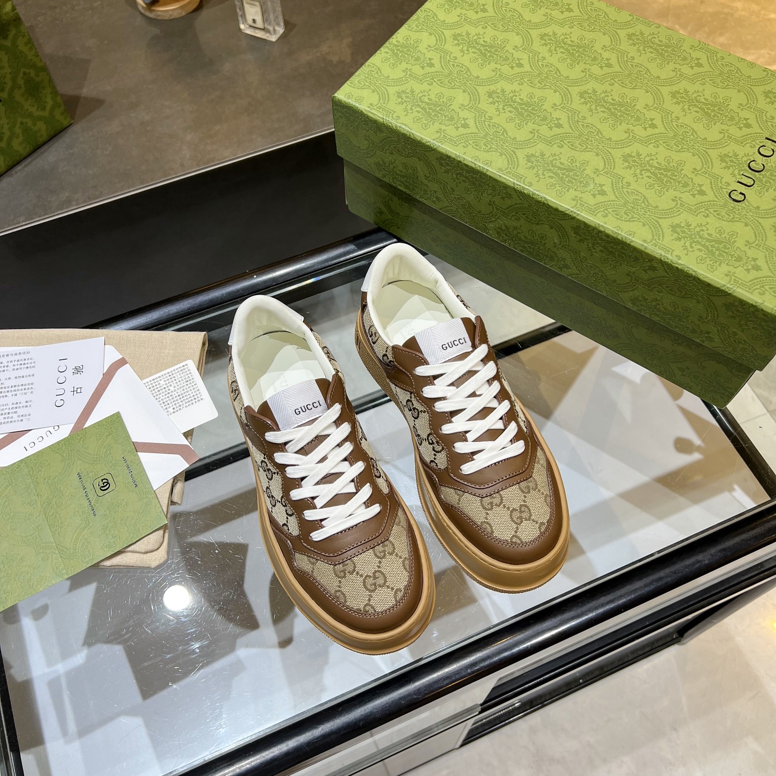 Custom original calfskin material (classic monogram canvas, perforated, embossed craftsmanship), calfskin lining, original lightweight foam sole, GG Logo on the heel, 4cm height-increasing thick sole, classic Gucci woven strap...