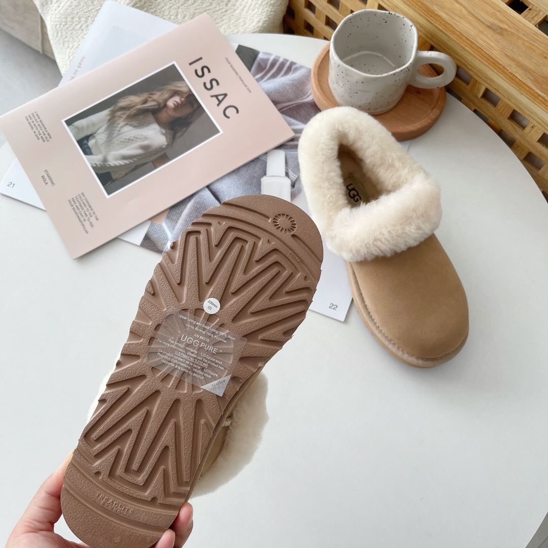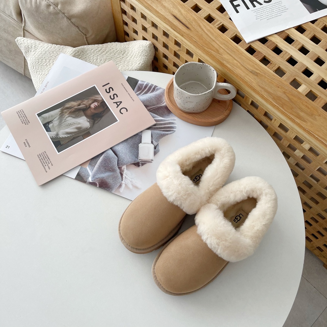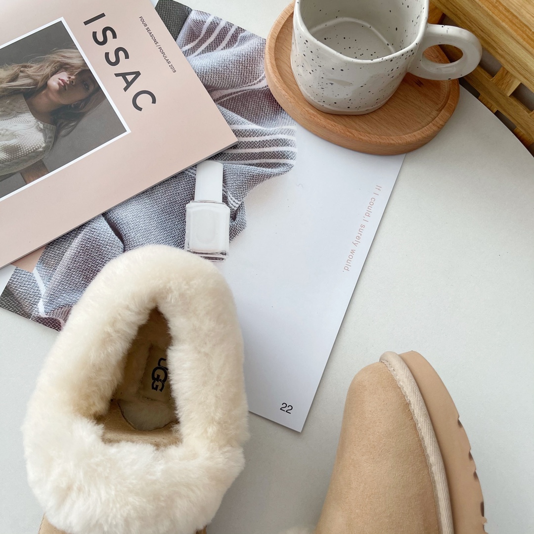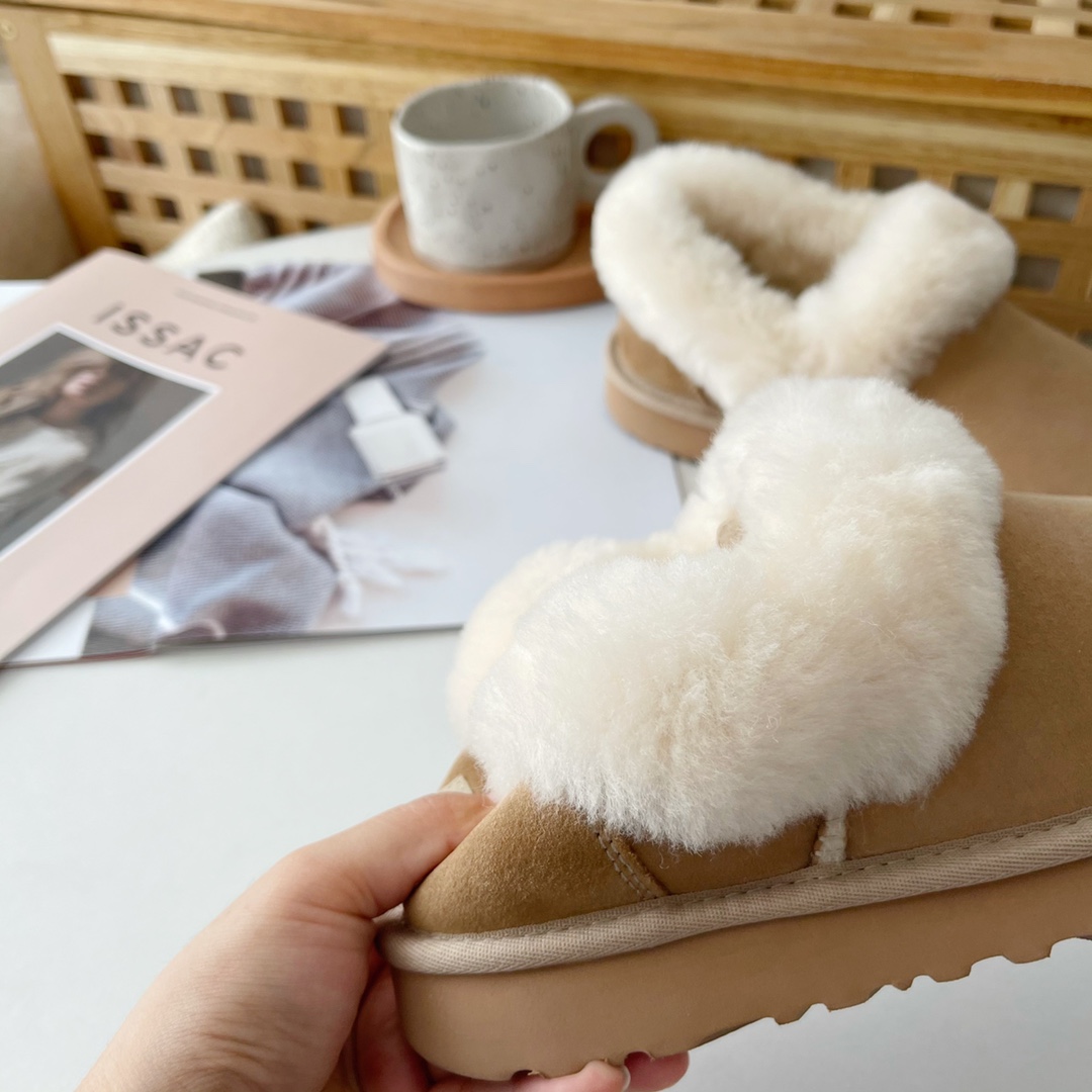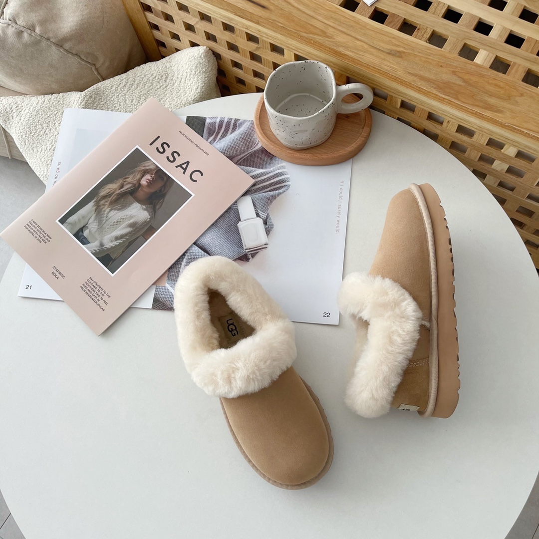 1. Trendy V-neck, furry shoe collar, reveals slender ankles, winter leg-lengthening essential