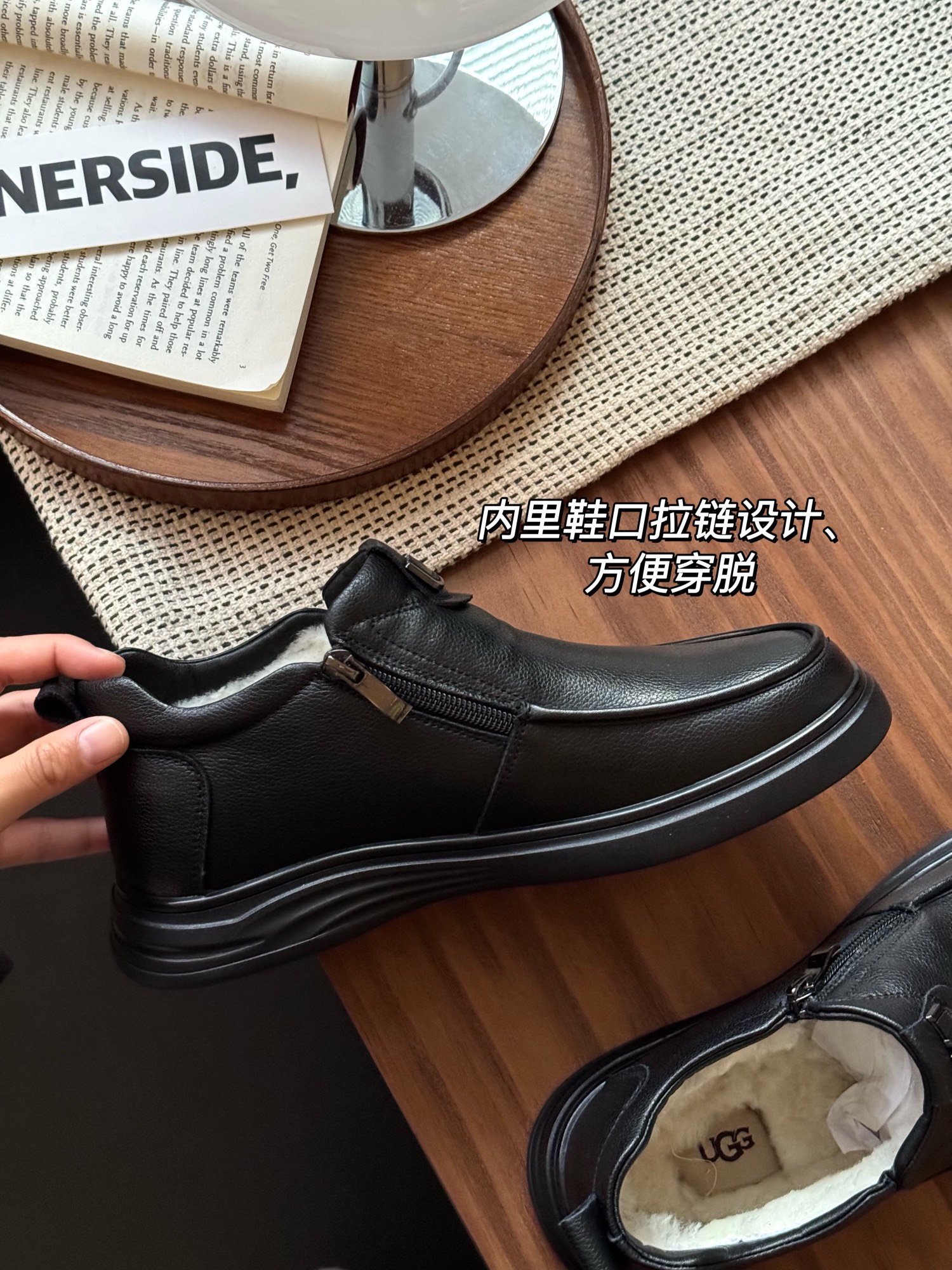 Zipper design at shoe opening for easy wear and removal.