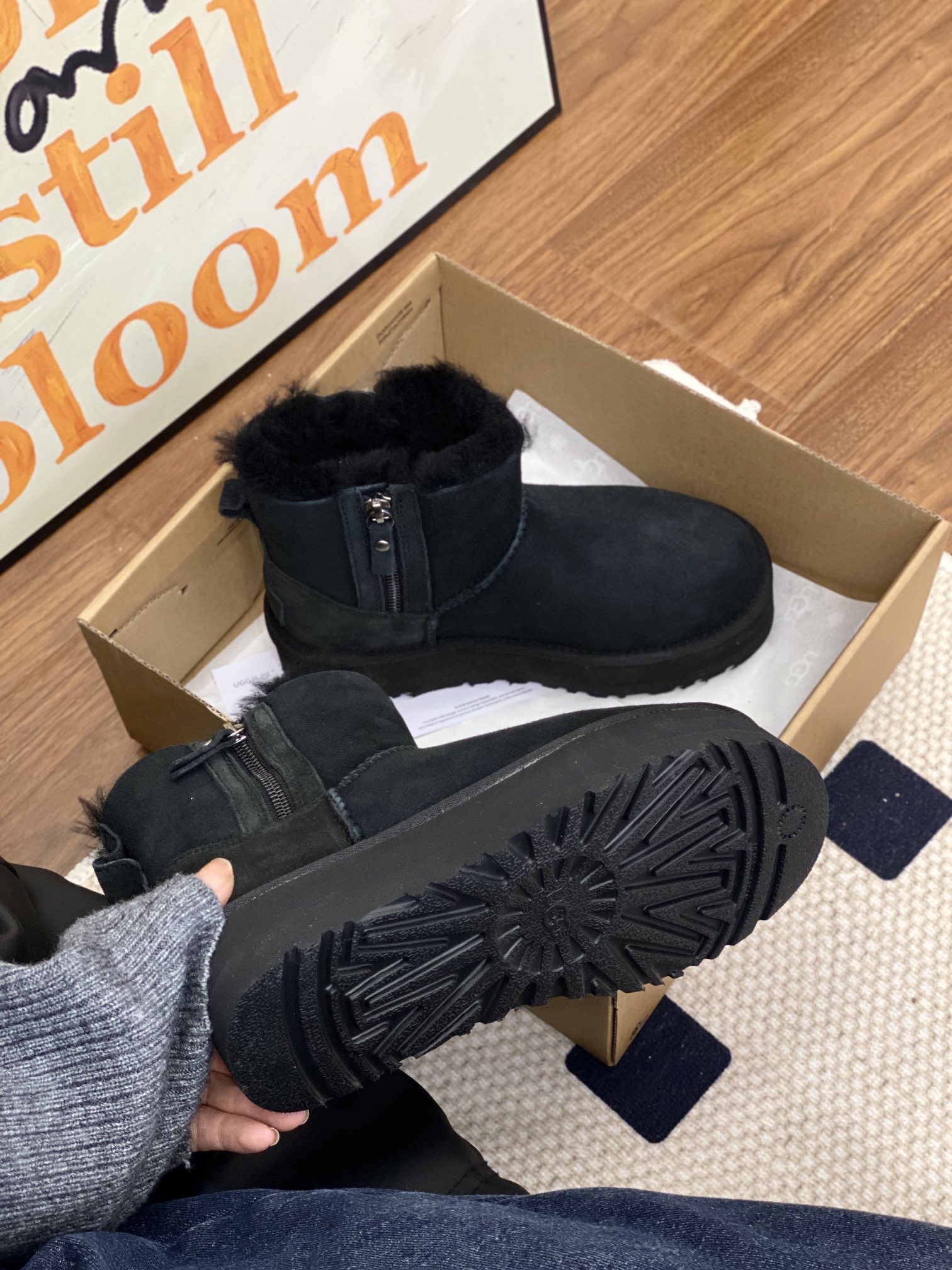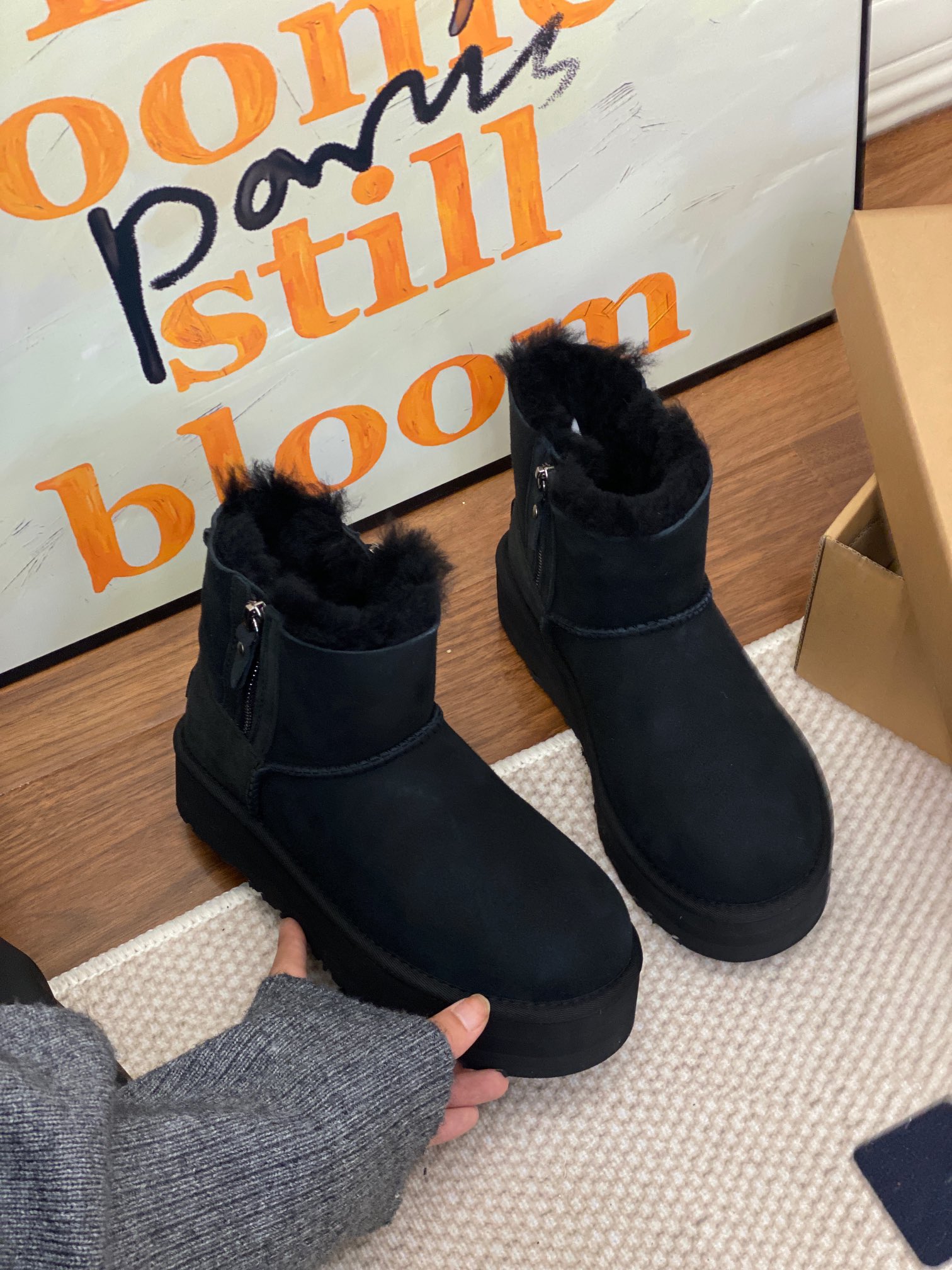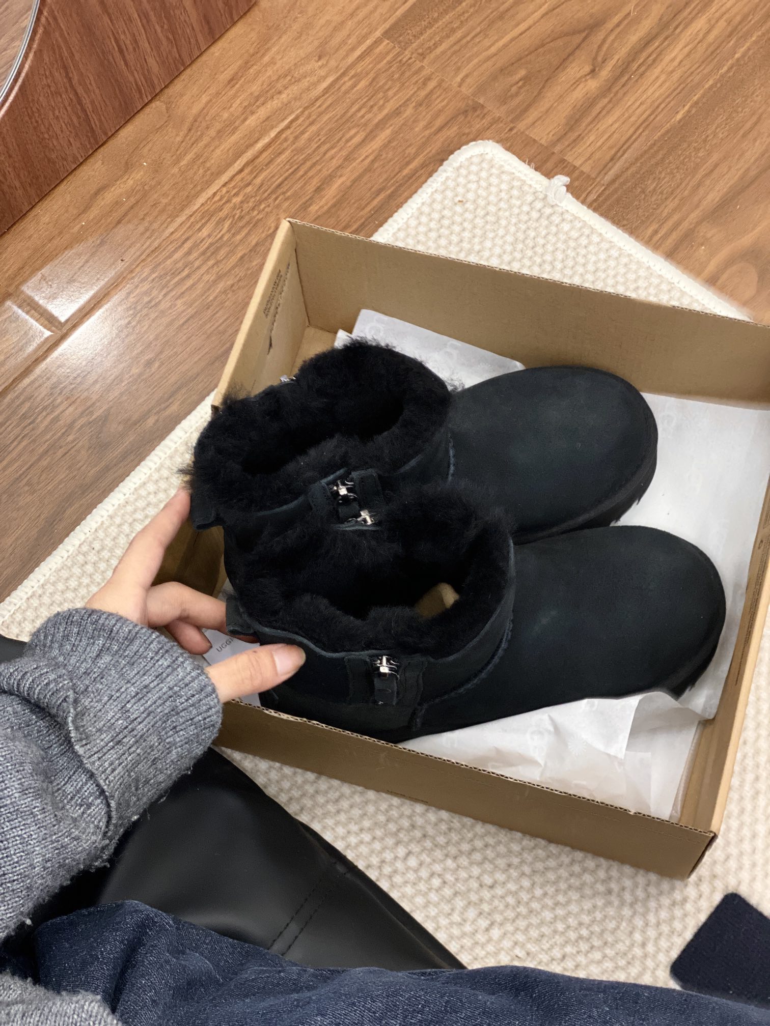 UGG official website double zipper new snow boots, genuine fur one-piece simple and convenient, preferred for petite individuals, suitable for both wide and narrow feet. Two colors: black, chestnut. Sizes 35-40.