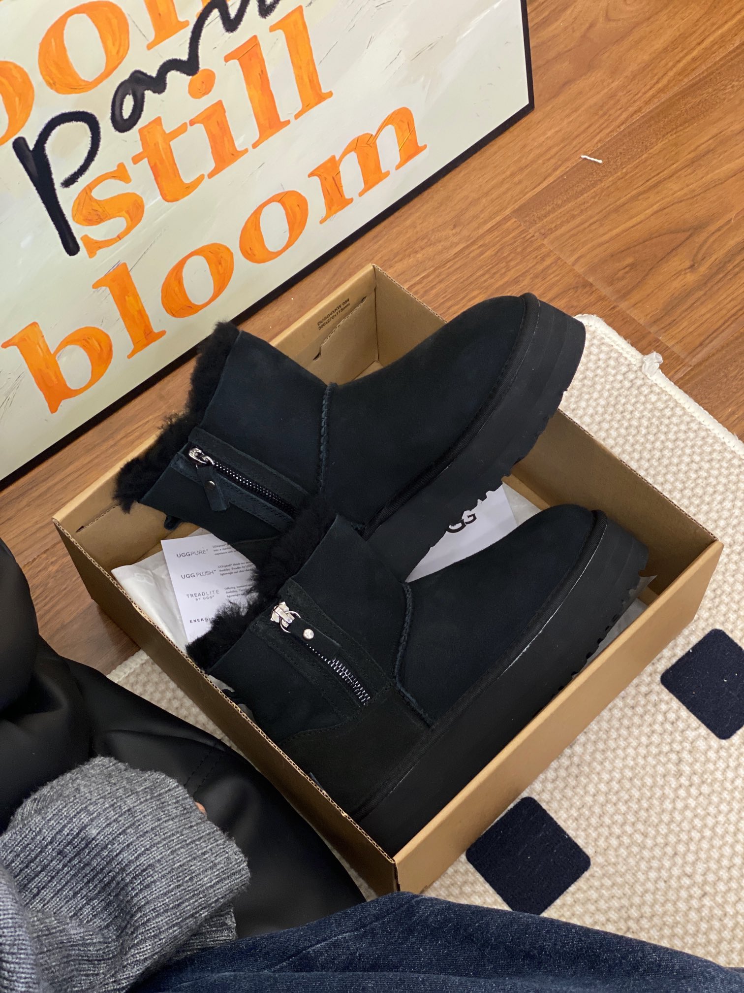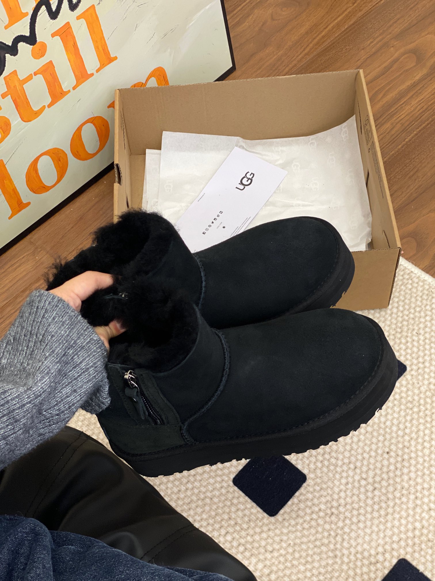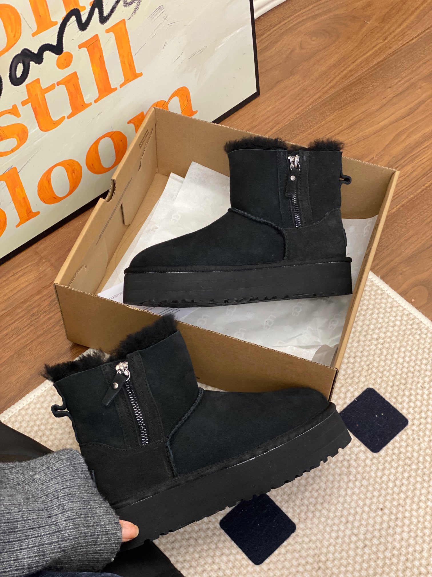 UGG official website double zipper new snow boots, genuine fur one-piece simple and convenient, preferred for petite individuals, suitable for both wide and narrow feet. Two colors: black, chestnut. Sizes 35-40.