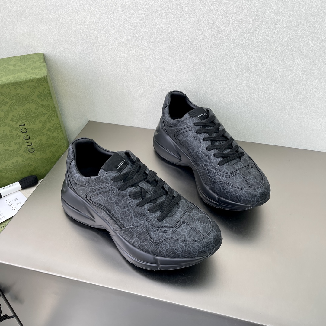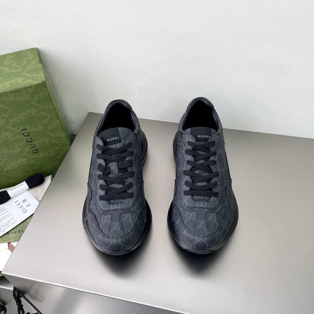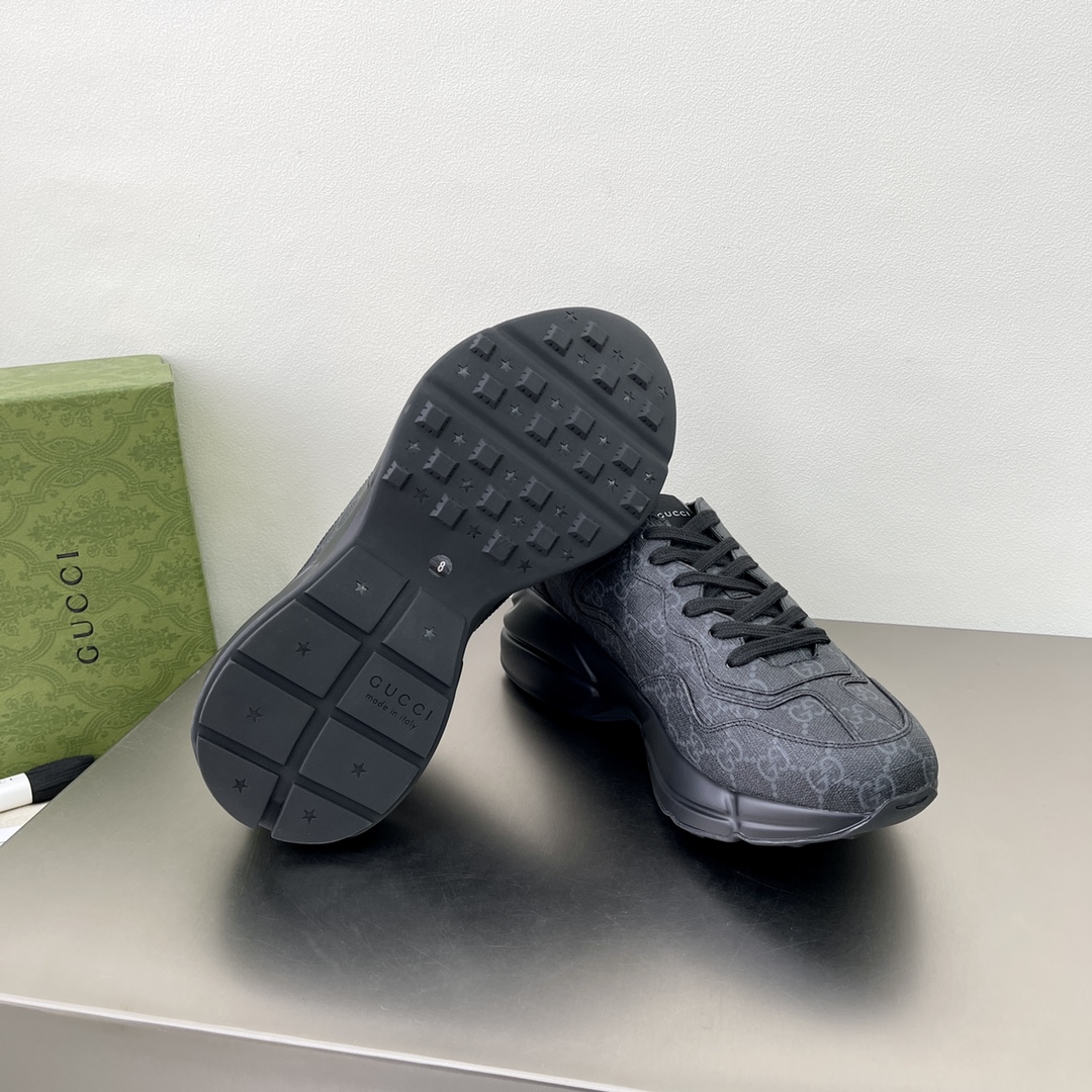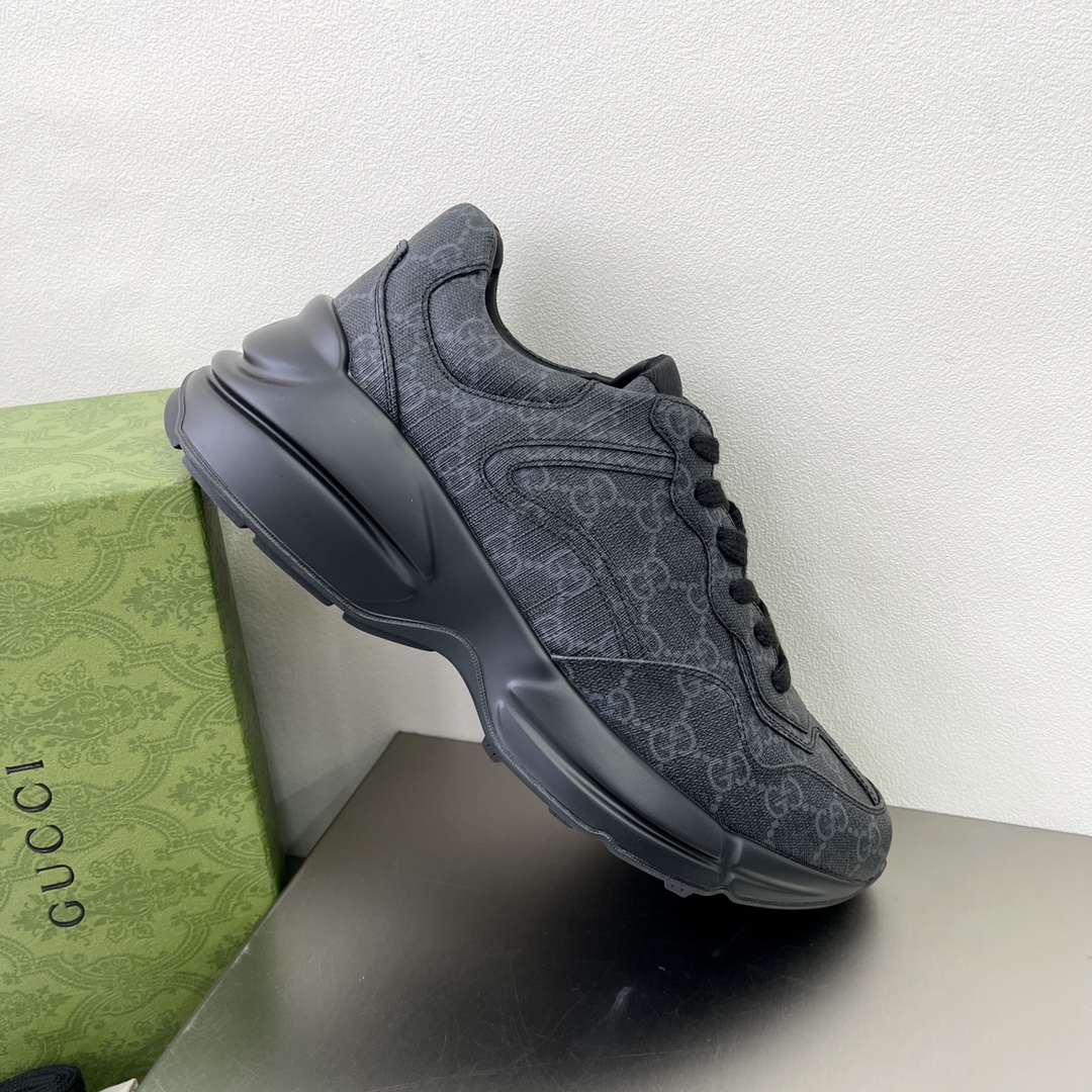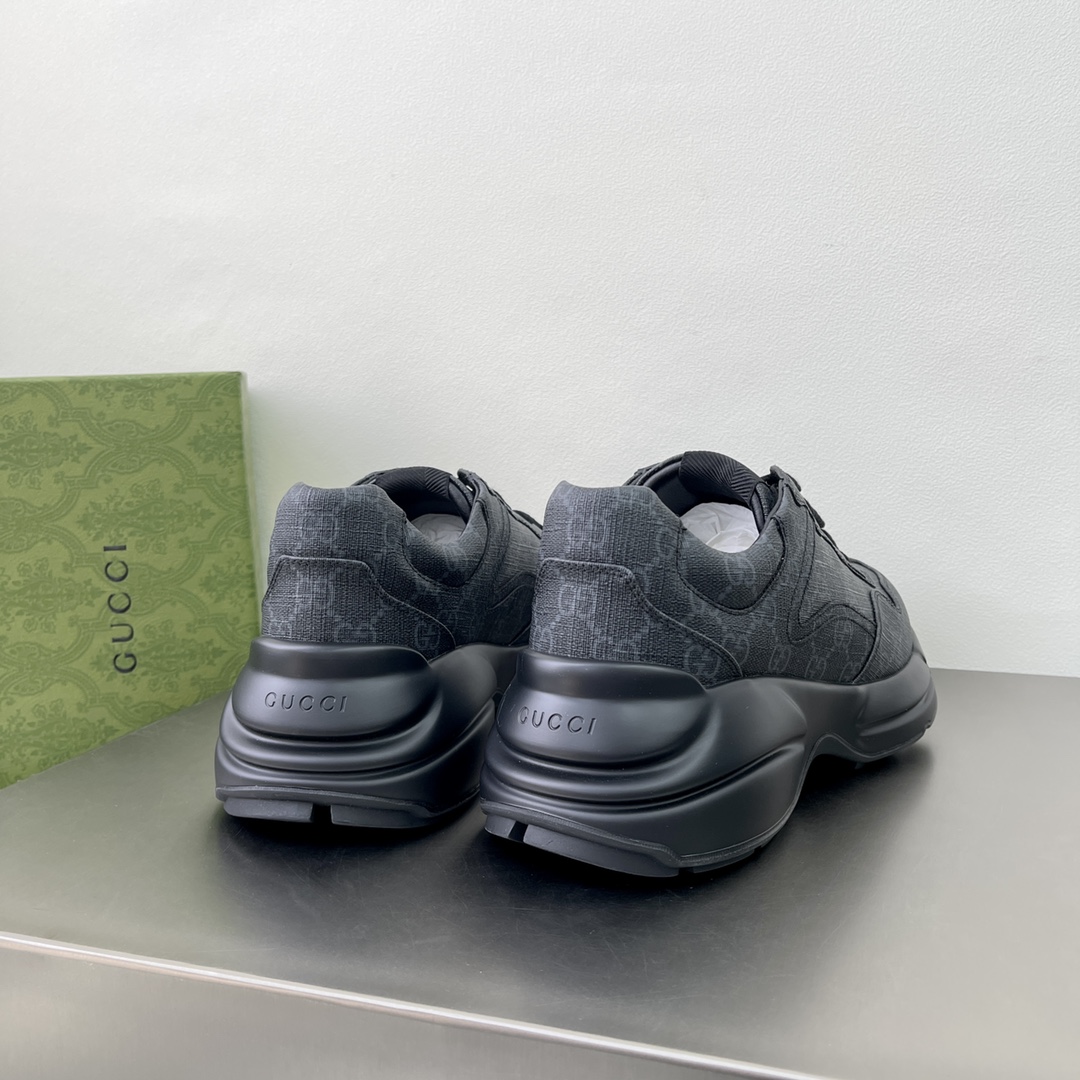 The "Gucci March of Love" series uses black GG Supreme canvas to interpret the historical origins of this material. This canvas material has been used in many series for a long time and has become a signature material of the brand. This classic color scheme creates eye-catching highlights for this Rhyton series sneaker.