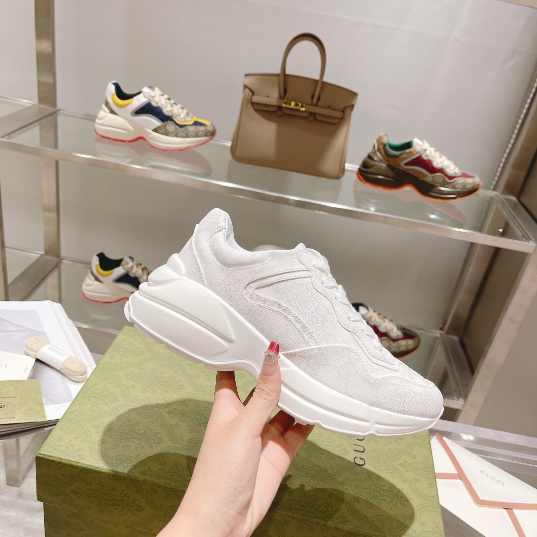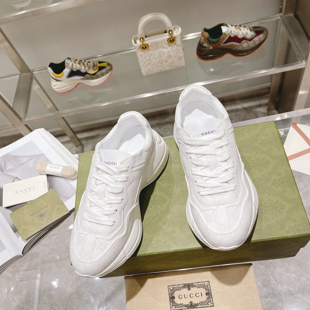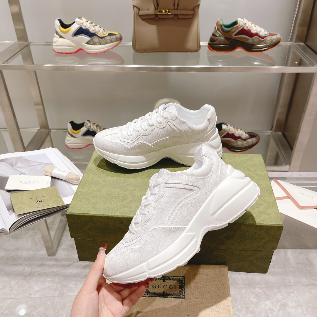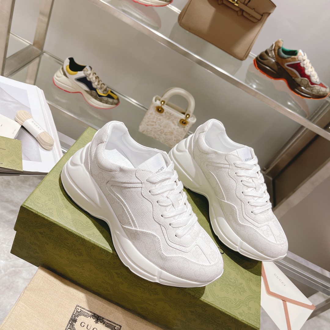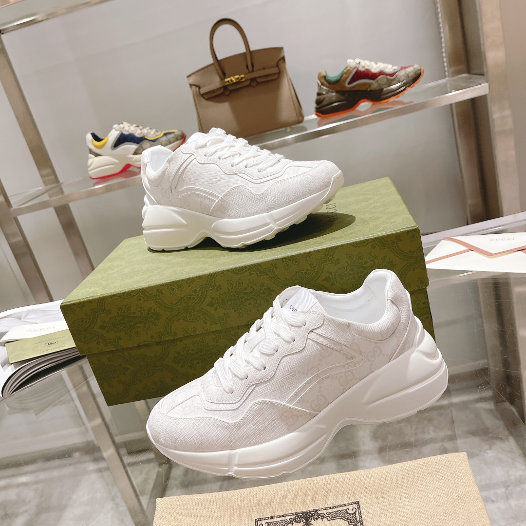 Gucci*Rhyton series dad shoes top version "mixed patchwork all white" couple style