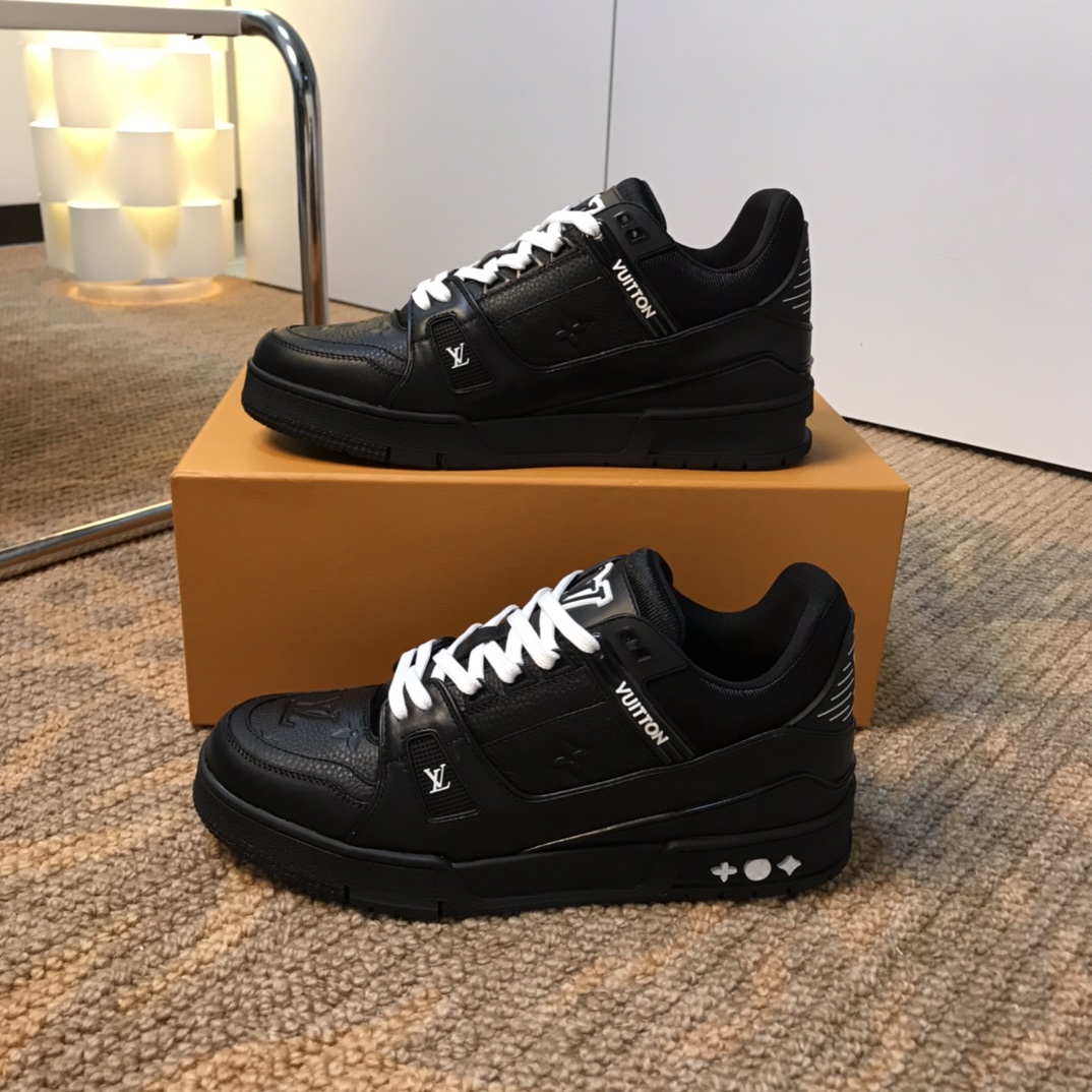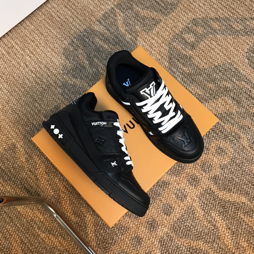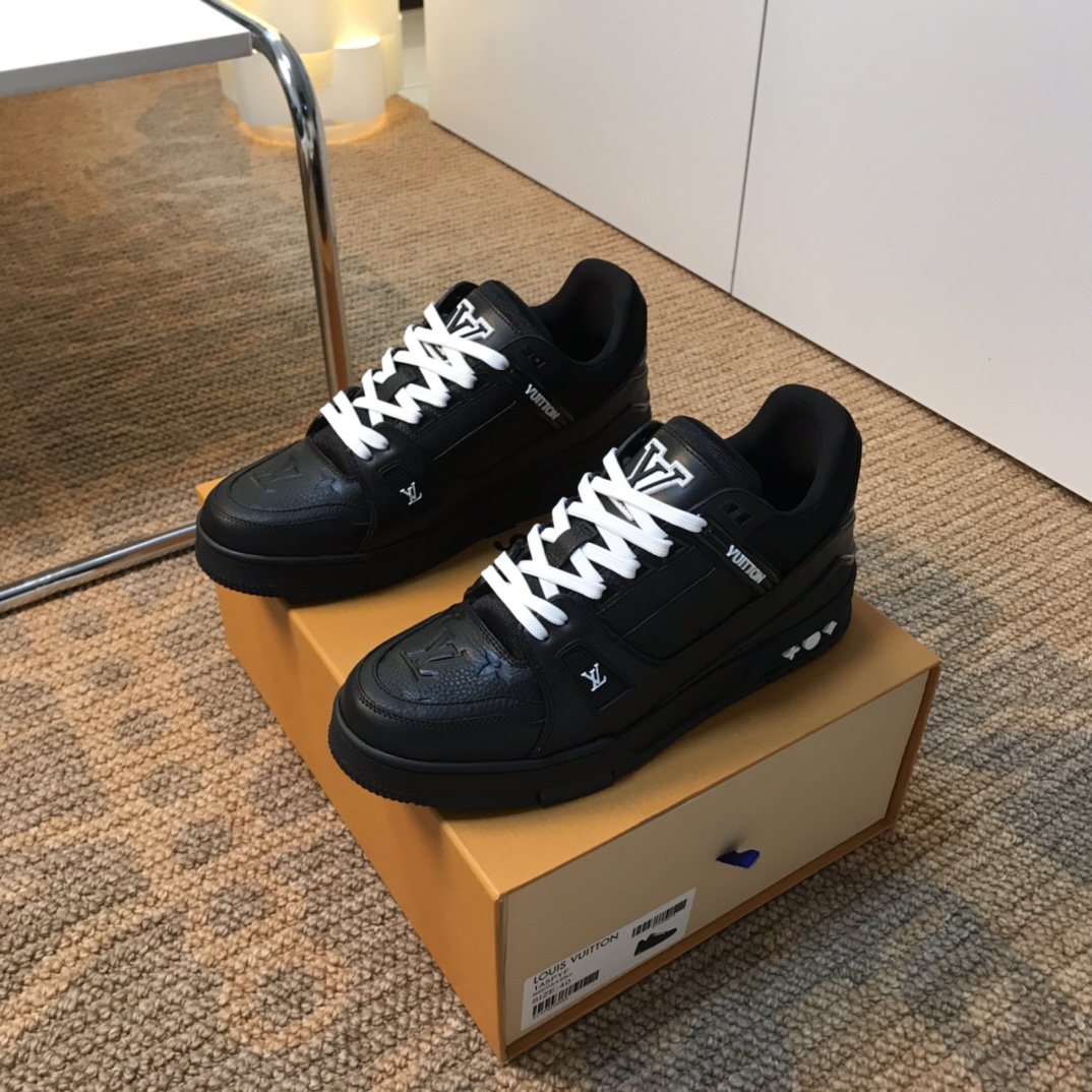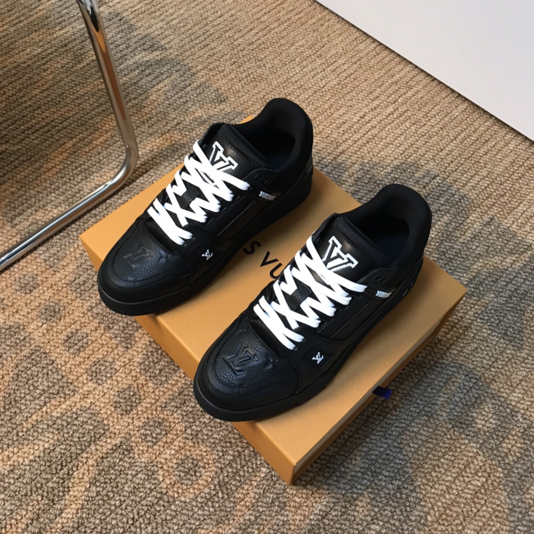 P L Trainer Series Sports Shoes | Black Warrior | Monogram Embossed Cowhide | Technology Rubber Outsole | Pure Handmade Stitching Retro Personality