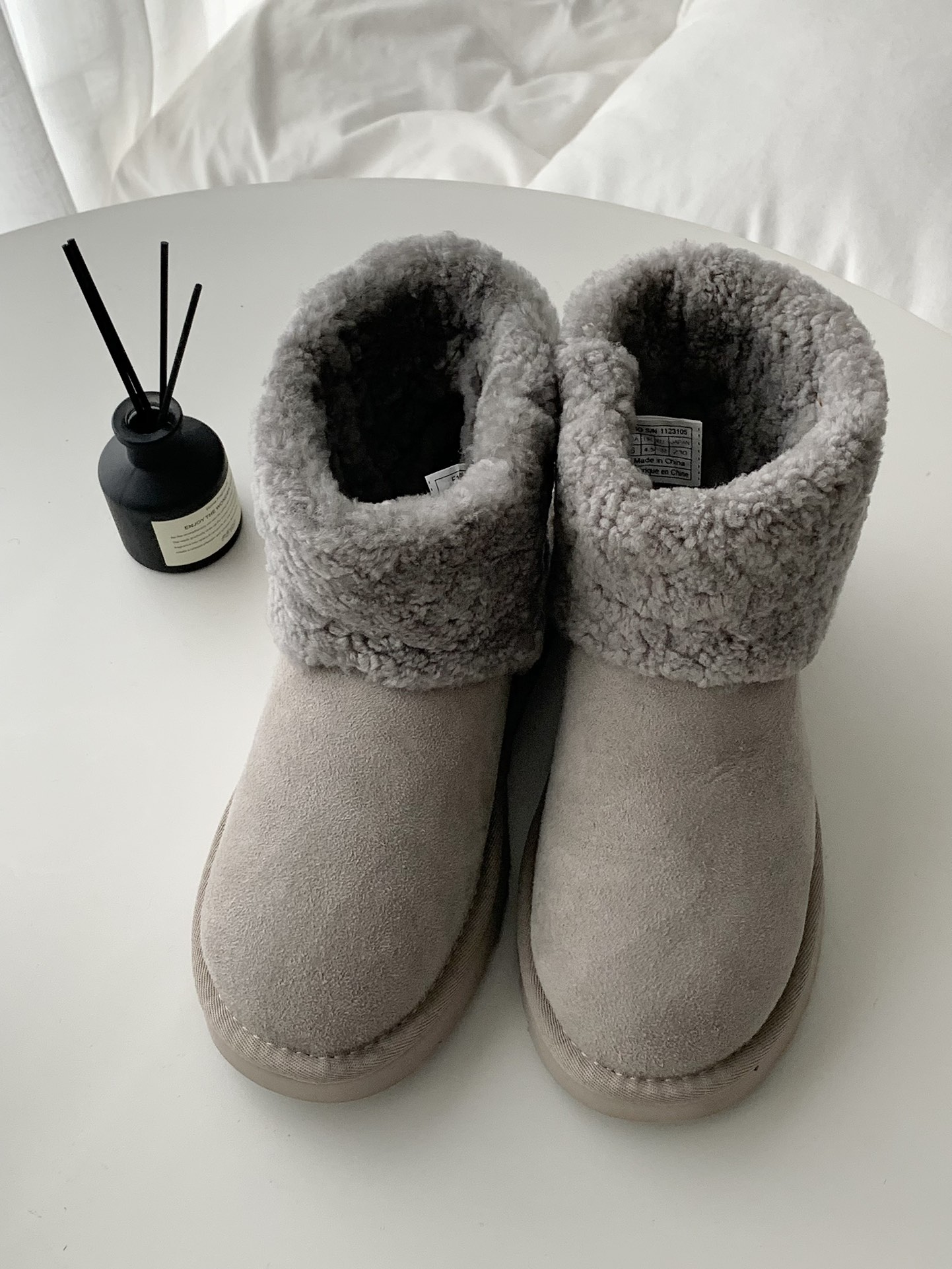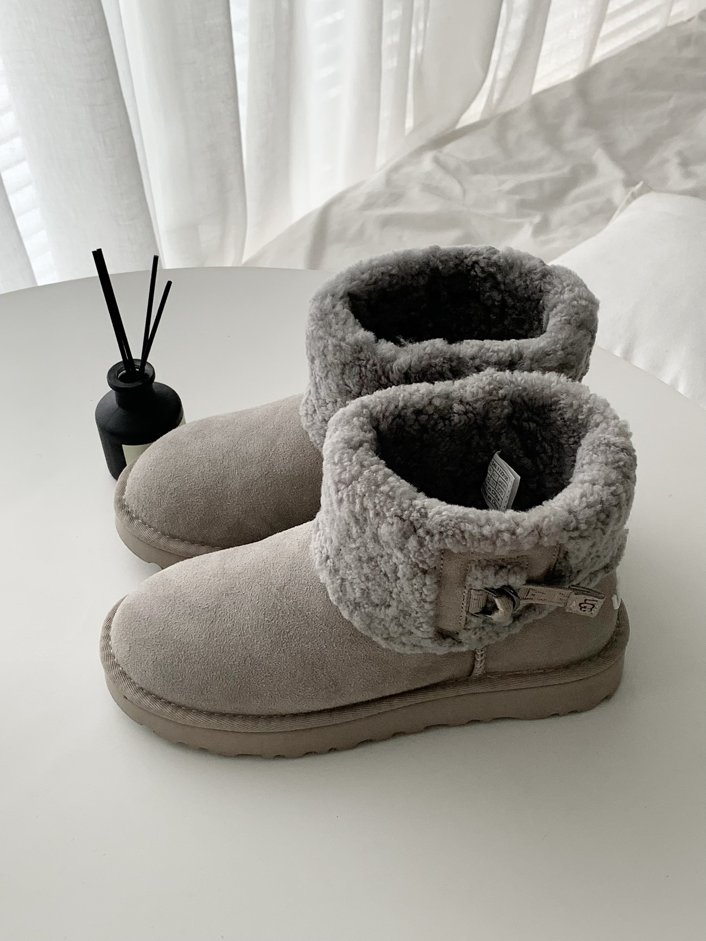Although they are furry shoes, the shoe shape is very elegant and doesn't look bulky on the feet! Inside features custom granular sheep curly fur.