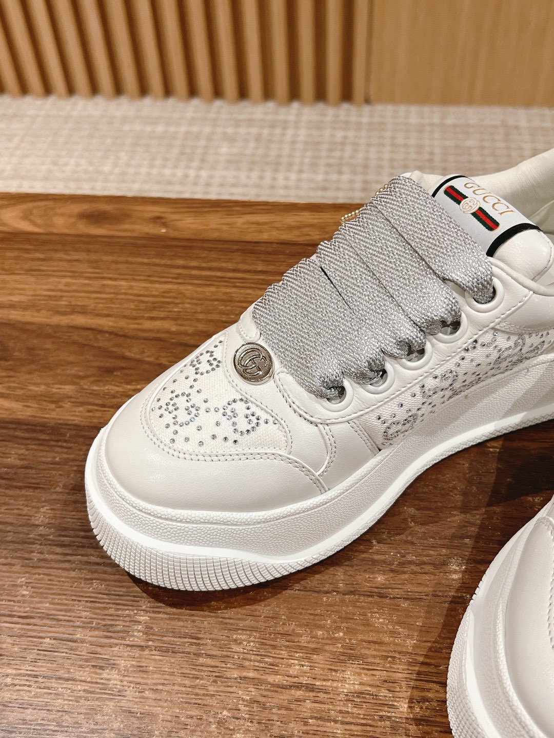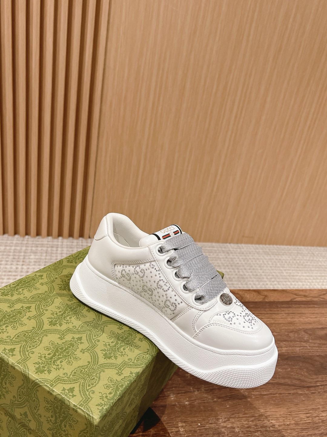 [Pine Lining] Gucci Double Screener Gucci's latest chubby thick-soled dirty shoes~~Couple's casual shoes. Upper features rubbed-color cowhide spliced with classic double G fabric, sheepskin lining, and latex injection-molded insole.