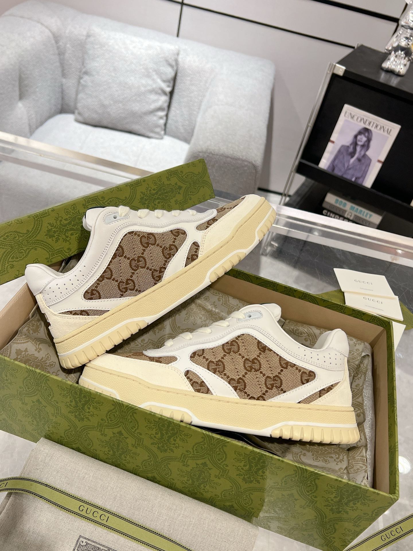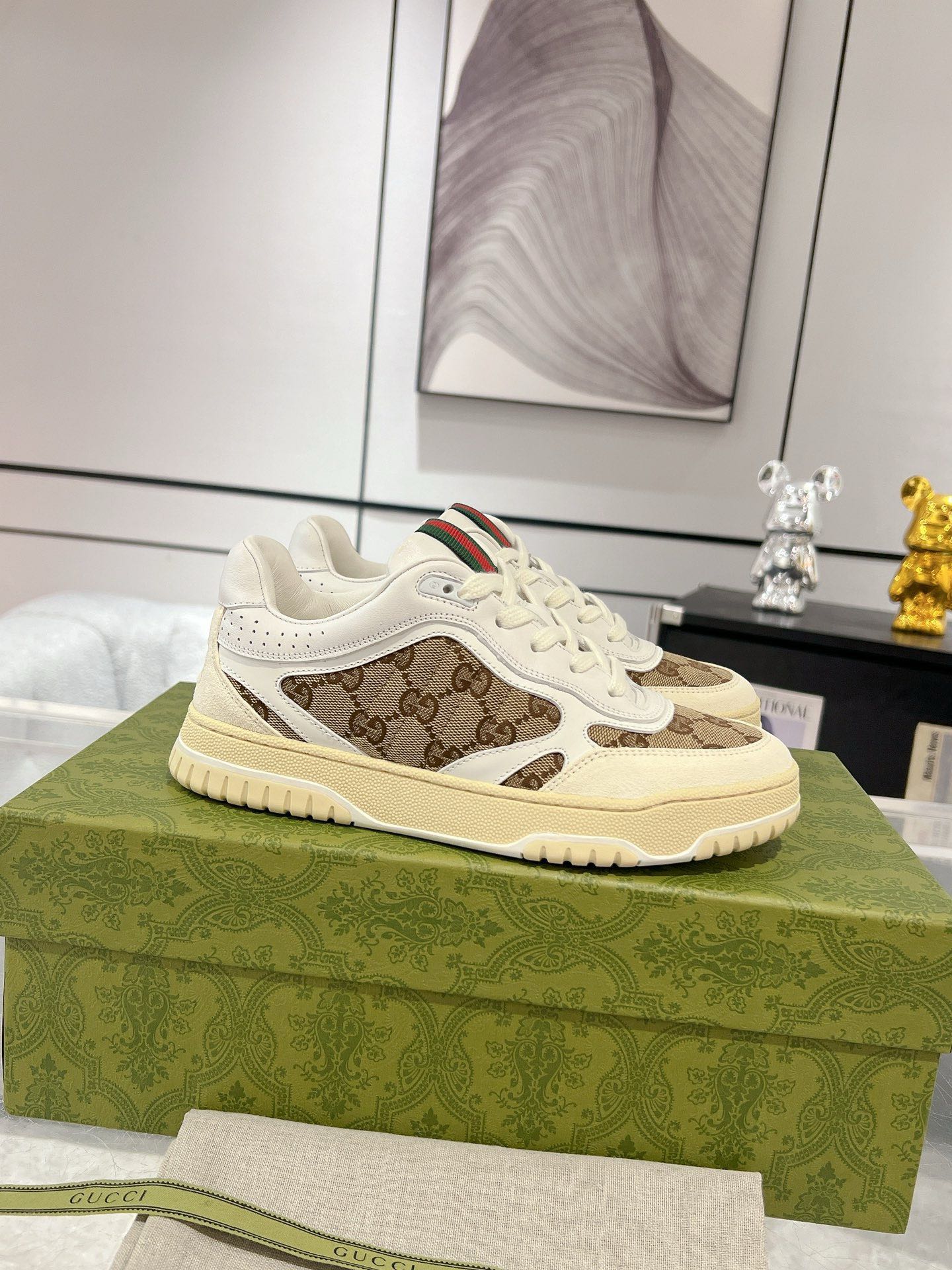Gucci new men's sneakers 2024 early spring series cleverly uses elegant tones, hollow-out design, and rubber details to reinterpret the classic low-top sneakers. These sneakers are meticulously crafted from black leather, adorned with rubber details, showcasing unique charm.