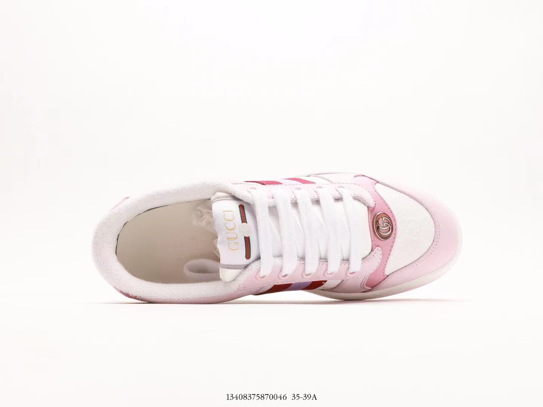 Gucci's new retro casual sneakers feature an exquisite and compact interlocking double G logo, romantically interpreting the aesthetic concept of this series. Retro inspiration is cleverly integrated into the sneaker design, with MS innovatively reinterpreting the brand logo. #Comes with boutique packaging from the counter. Made with original custom imported top-layer cowhide fabric, custom imported breathable mesh lining, and original molded two-color TPU sole with a 4CM thick height increase.