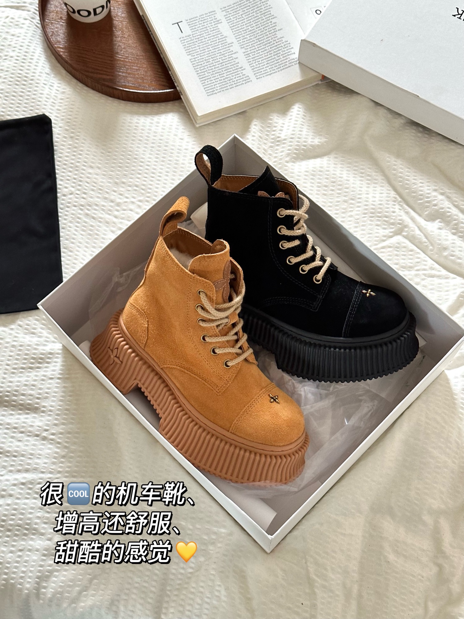 Cool motorcycle boots, comfortable with height increase, sweet and edgy style.