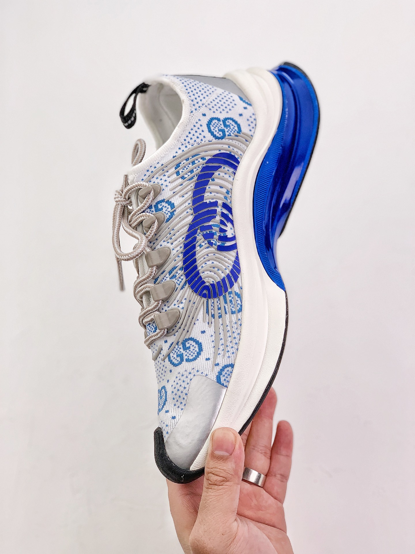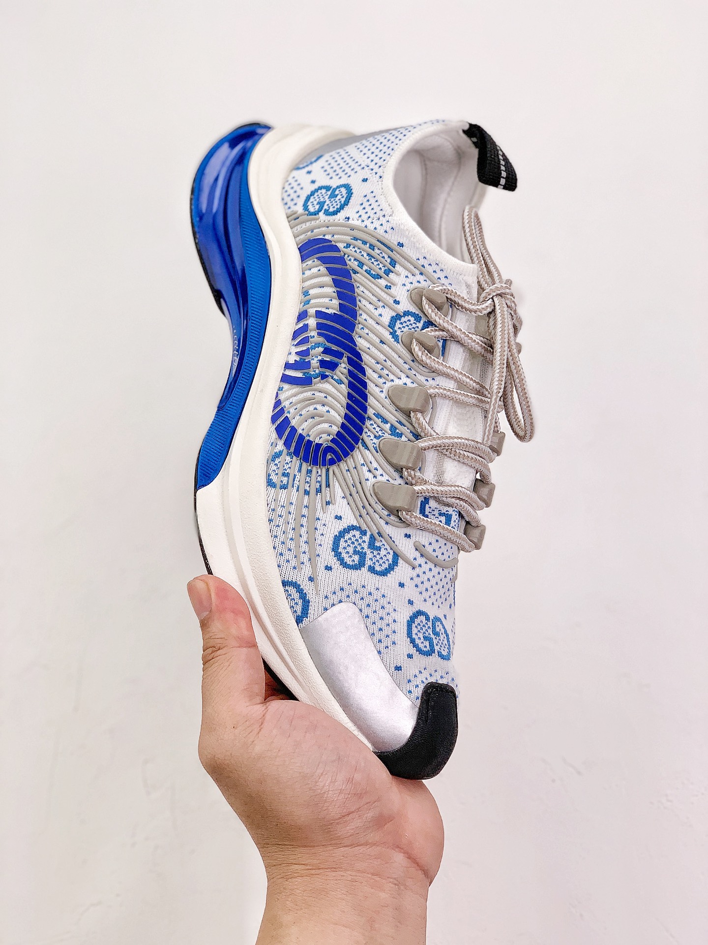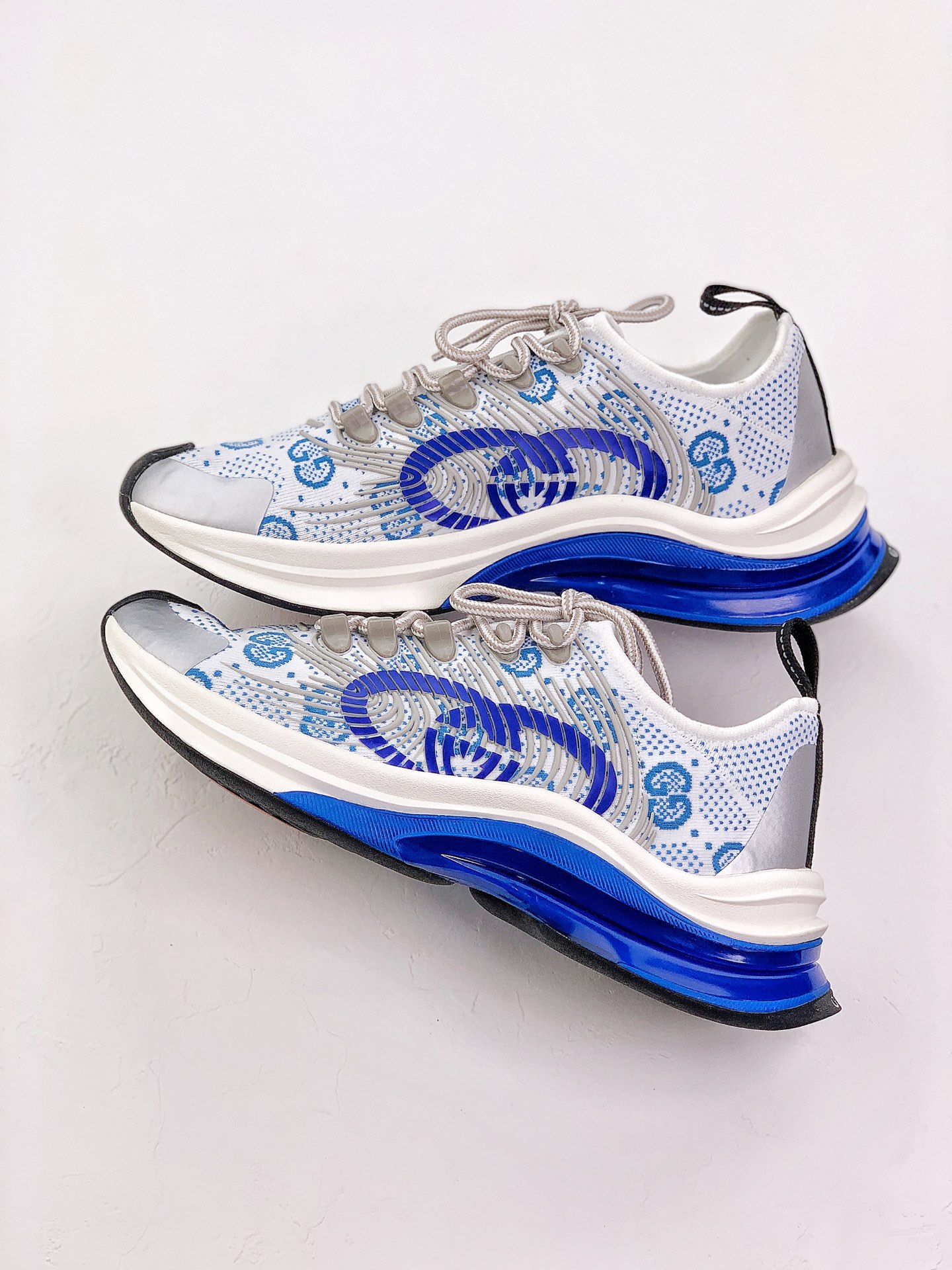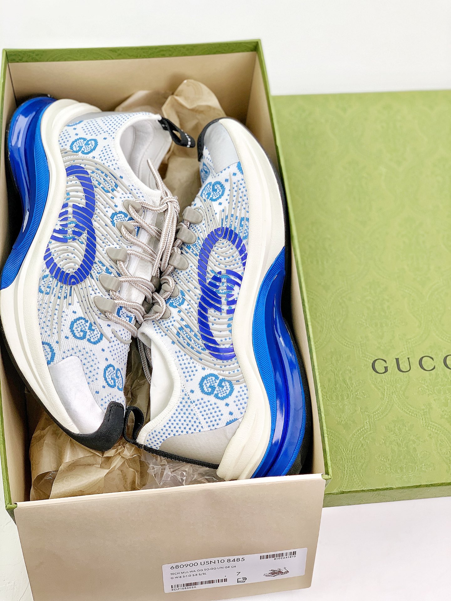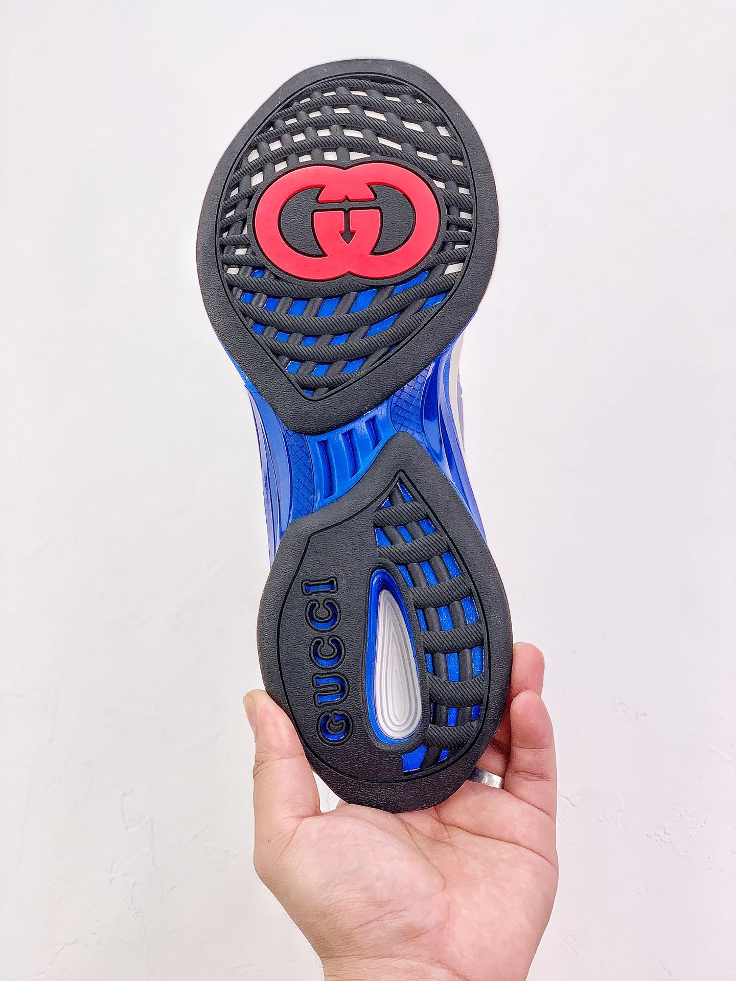 Authentic development, 2022 spring/summer new lightweight athletic shoes with flyknit! Streamlined sneakers use heat-pressed plain flyknit, Gucci, and are adorned with interlocking double Gs. Gucci's two-color sole adds charm to this item with playful color contrasts, the preferred running shoes for sports lovers! Plain flyknit fabric KPU heat-pressed upper, original texture TPU lightweight supercritical foaming anti-slip rubber five-layer combined outsole, not like the hard rubber outsoles commonly found on the market! Full set of Hong Kong version shopping agent gift packaging, full of unboxing experience.