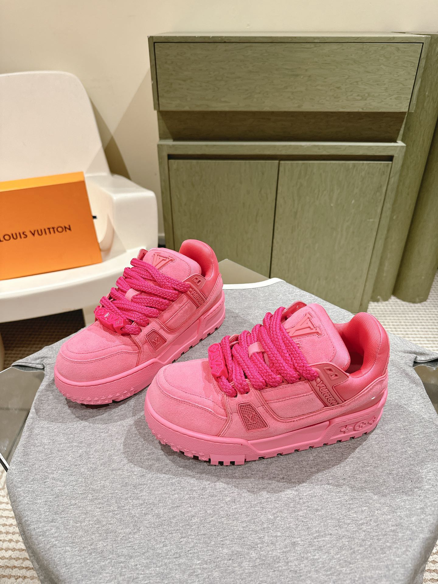 Original Title: (Upgraded Puffy Version) | 2024 SS 🤍🤎 Full Leather Couple's Outfit❗LV Louis Vuitton New Trainer Latest Color Scheme.
