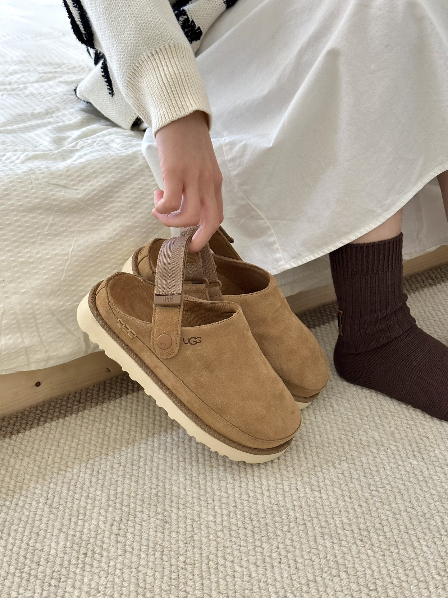 One pair of shoes, two ways to wear, switch freely! UGG Venus Clog Shoes √ Suede leather upper √ Fabric lining