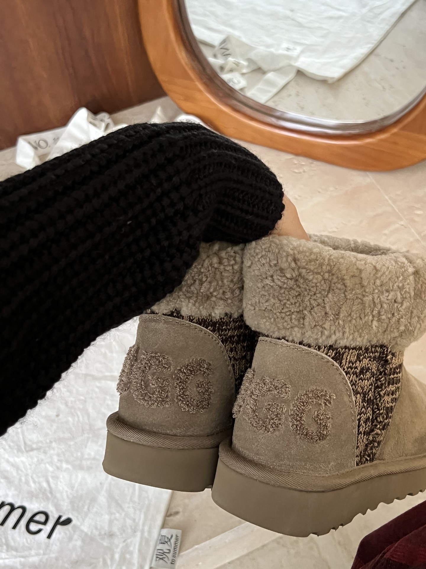 UGG. Knitted curly snow boots