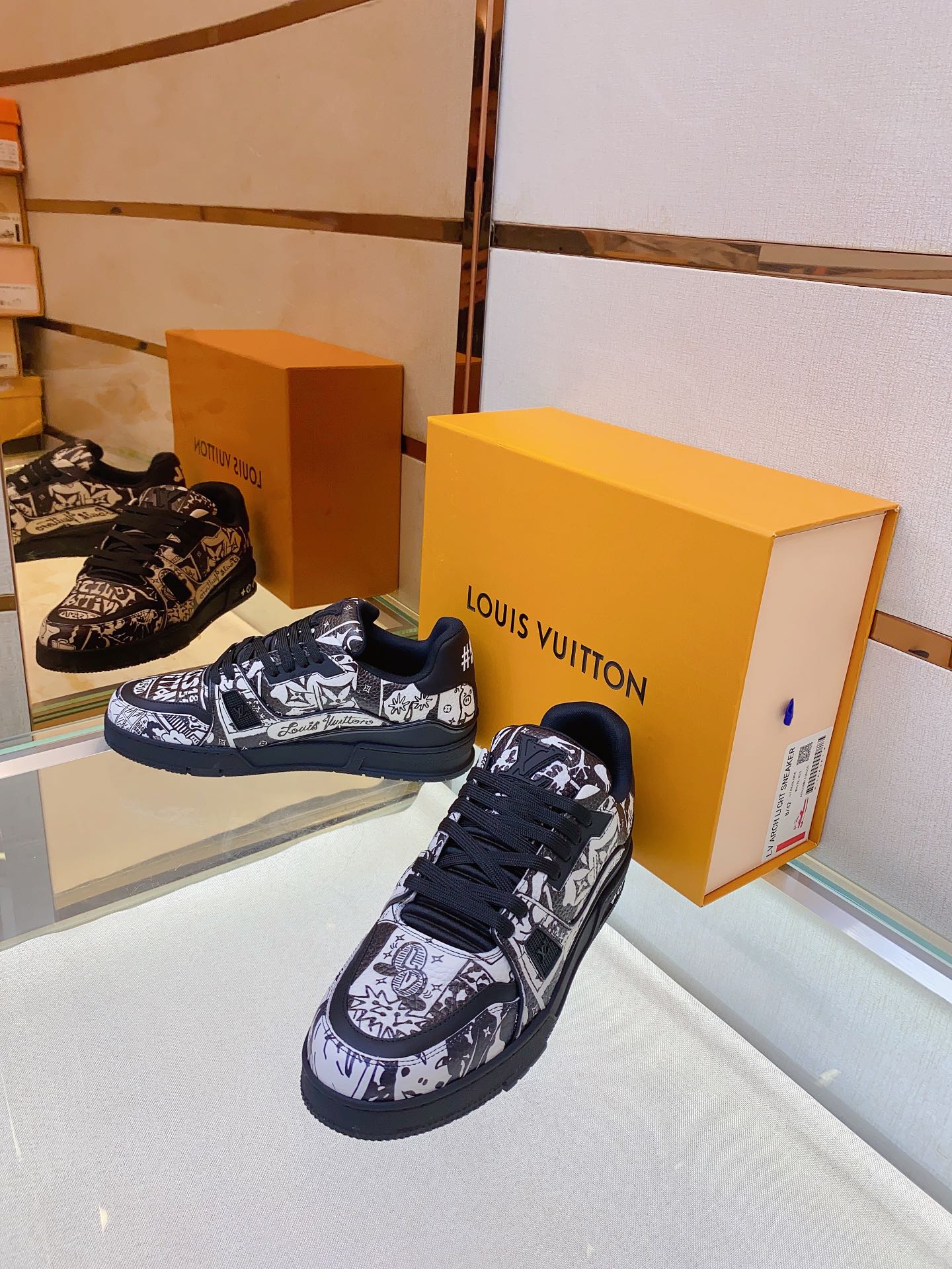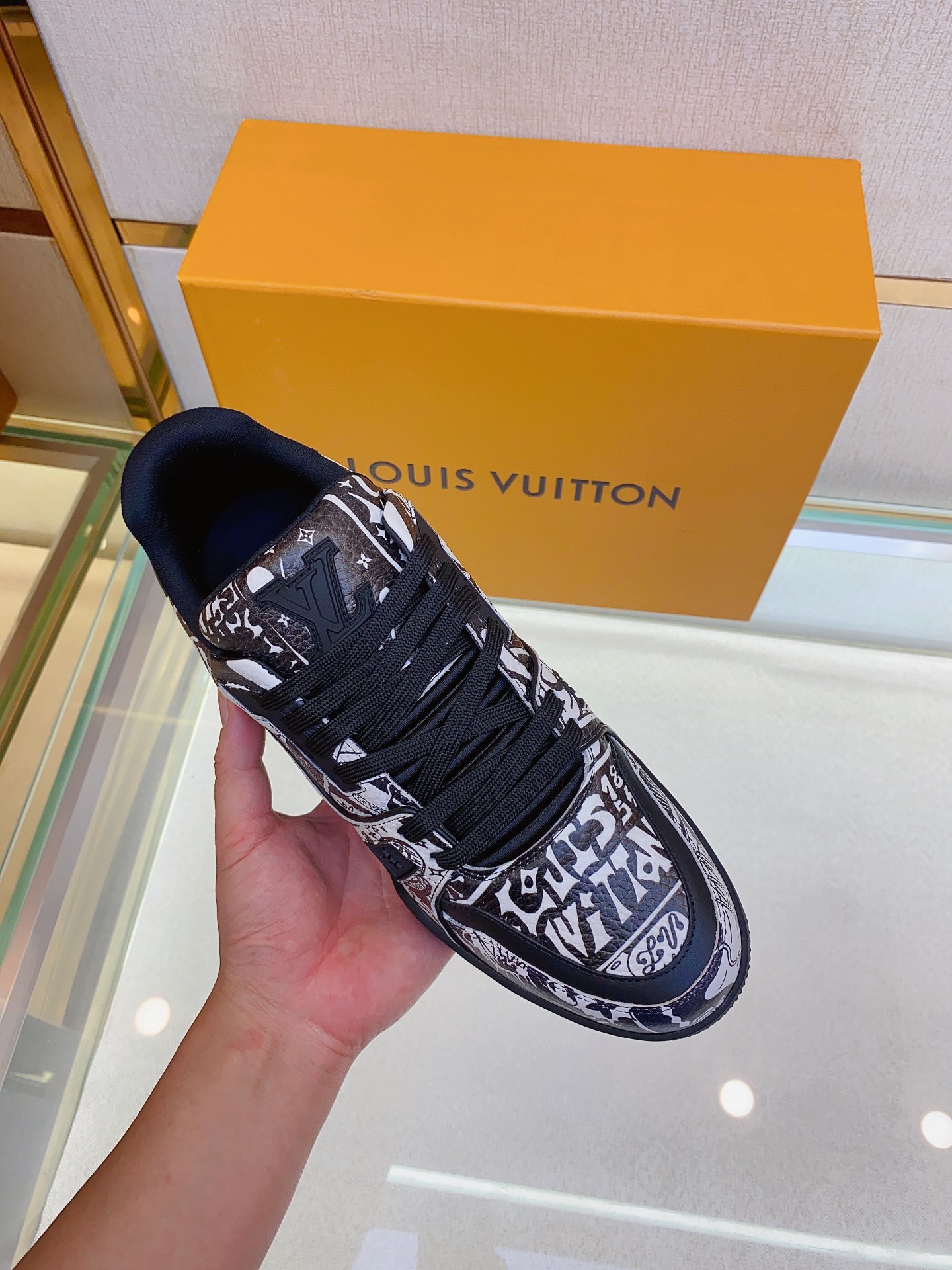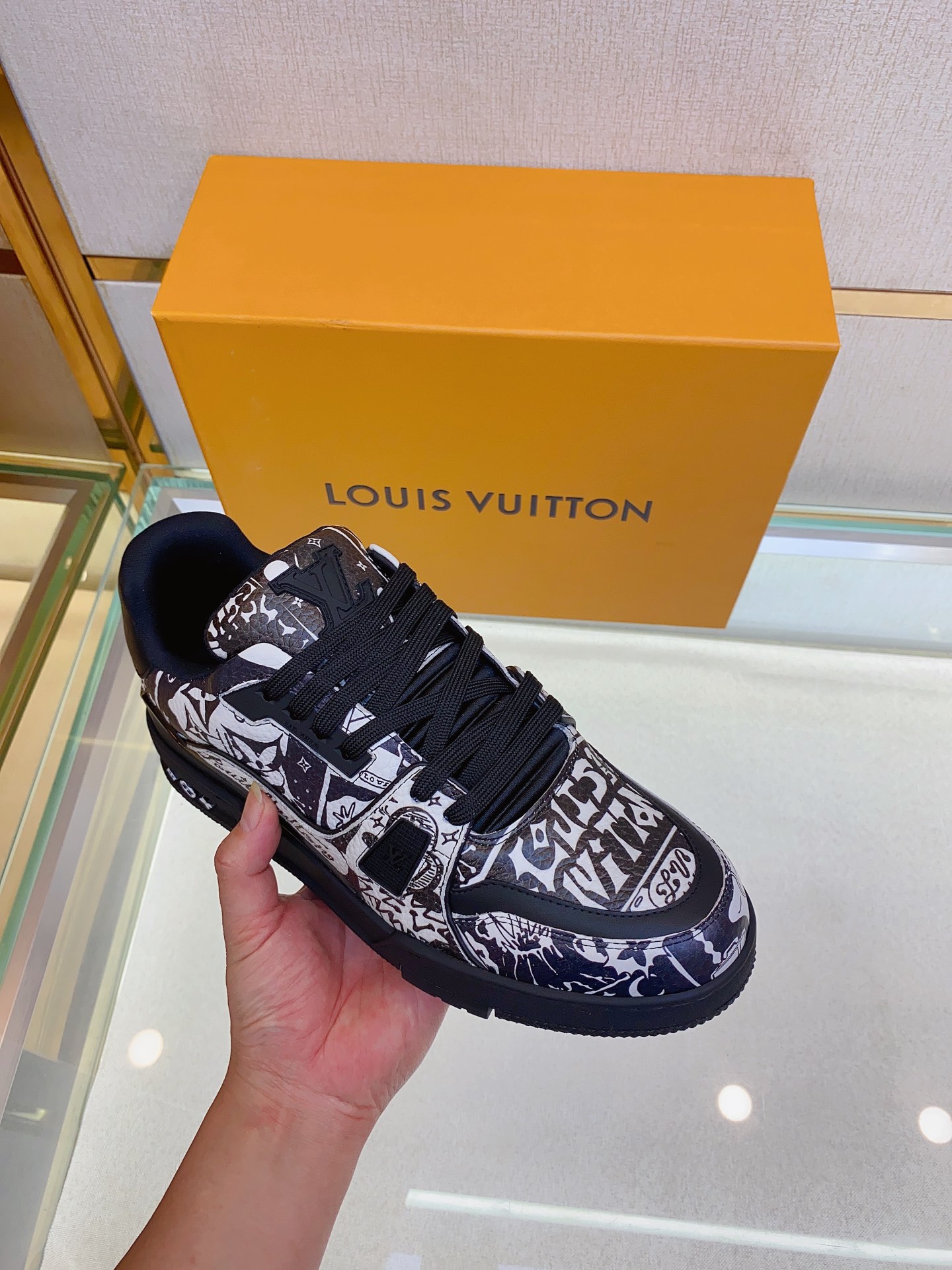 Louis V* Luxury Trainer Sneakers. These Trainer sneakers are made from imported calfskin. The design is simple, inspired by the retro basketball sneakers admired by Men's Artistic Director Virgil Abloh, with his handwritten Louis Vuitton English inscription on the side. The technical rubber outsole is equipped with an innovative gel insole, providing exceptional comfort. The outsole features Monogram Flowers pattern. A classic basketball sneaker style with high attention-grabbing appeal, easy to pair, and offers breathable comfort when worn! Size: Men's 39-45