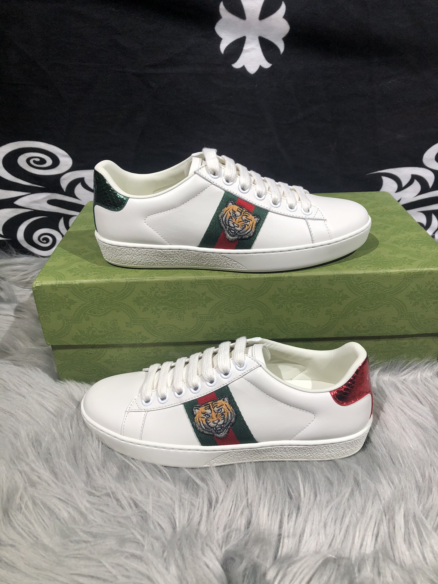 Small white shoe series new upgrade anti-counterfeiting line 💗 Couple style 💗! GUCCI small white shoes, perfect shoe shape, comparable to store! Made with imported cowhide. Original leather, cowhide lining. Authentic empty glue treatment, stitched edges without glue application! Fragrant sole. Genuine snakeskin heel. Women's sizes 35-40, men's sizes 39-44. Men's sizes 38.45 can be custom-made, no returns or exchanges. Full set packaging.