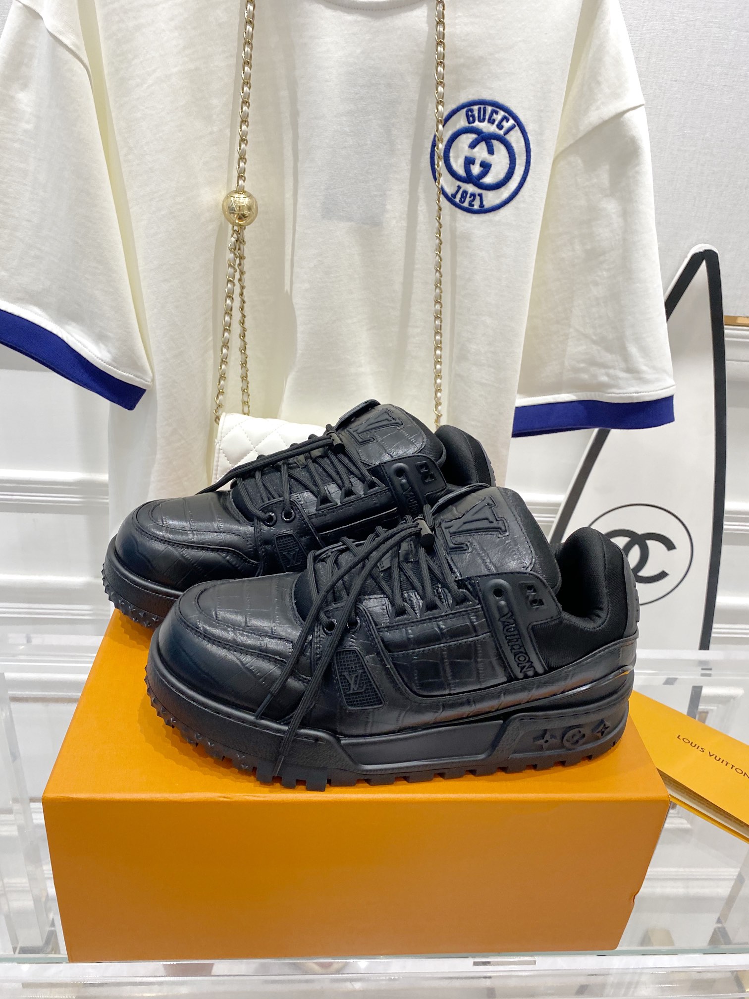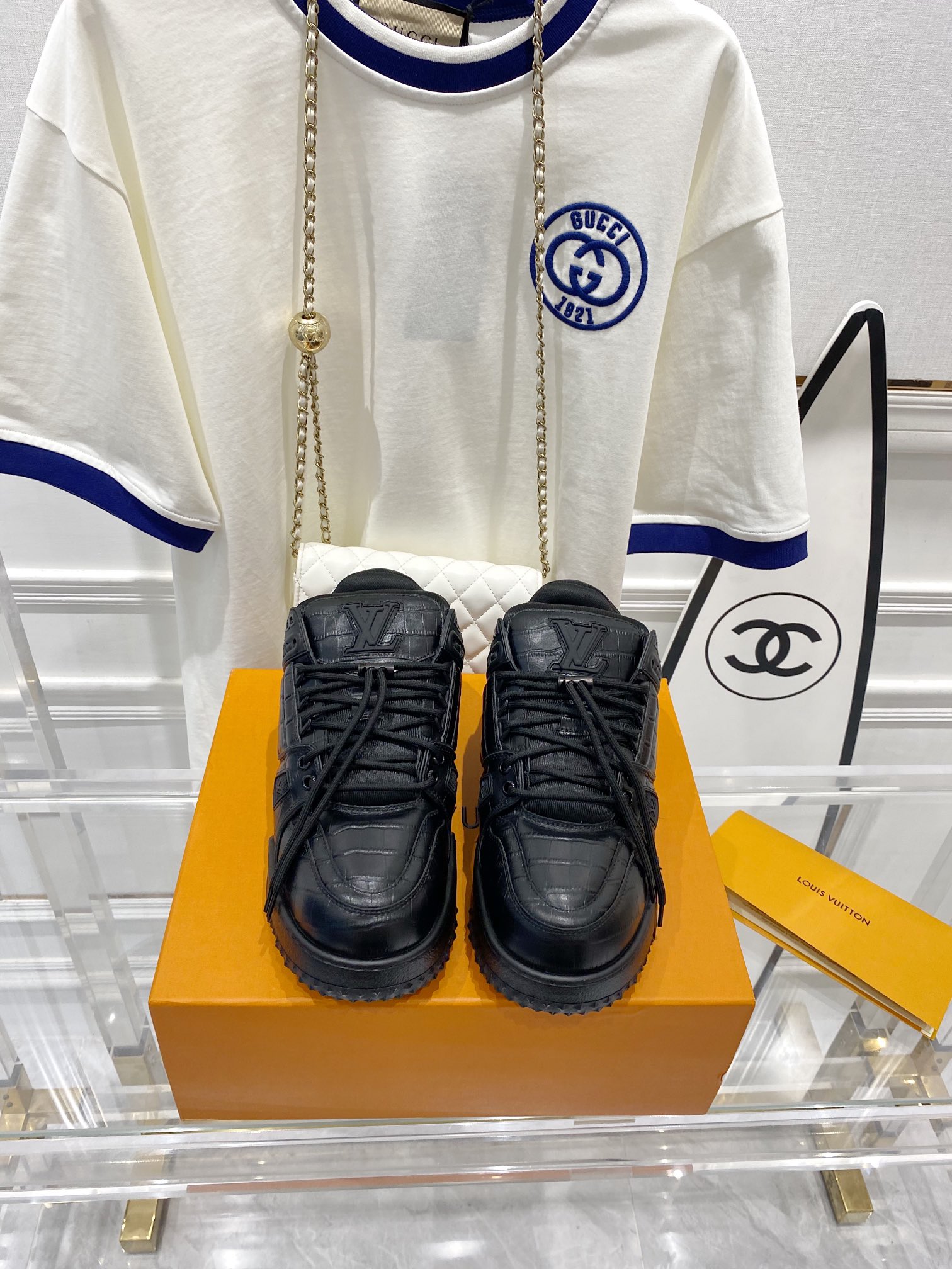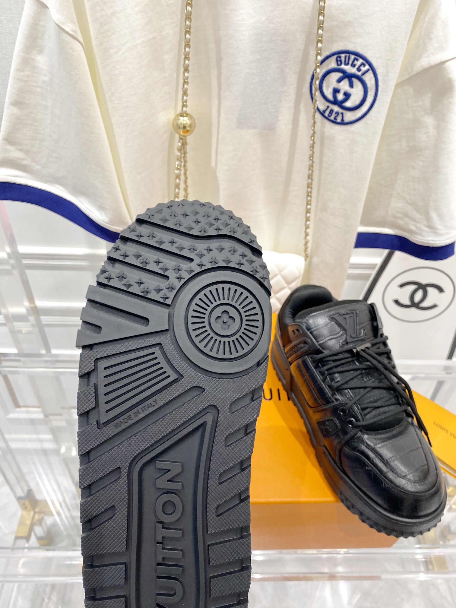 LV 2023 Paris Fashion Week New Release Couple Style: Buckle Sports Shoes Sneakers Cute Chunky Trainer, Casual Set: Breaking the Monotony of Color Variations: Makes You Look Younger. The chunky trainer can also be called the "Prosperity Shoe," charmingly cute and adorable. The most classic chunky shoe silhouette, the most classic color scheme, high-end and luxurious. Every style and color combination is excellent! Exactly the same as the original in material, craftsmanship, and details: Material TPU, original sole, original packaging.