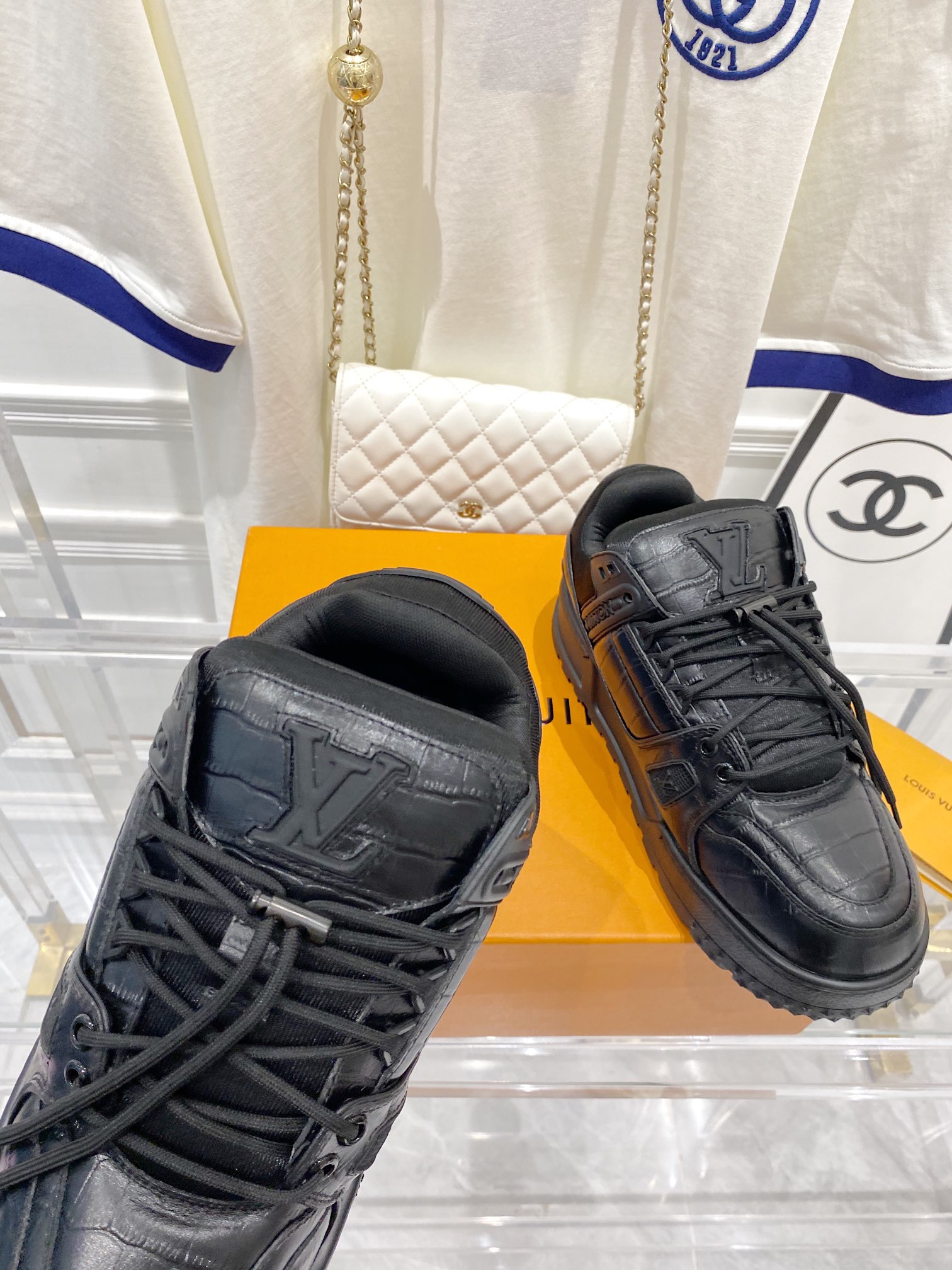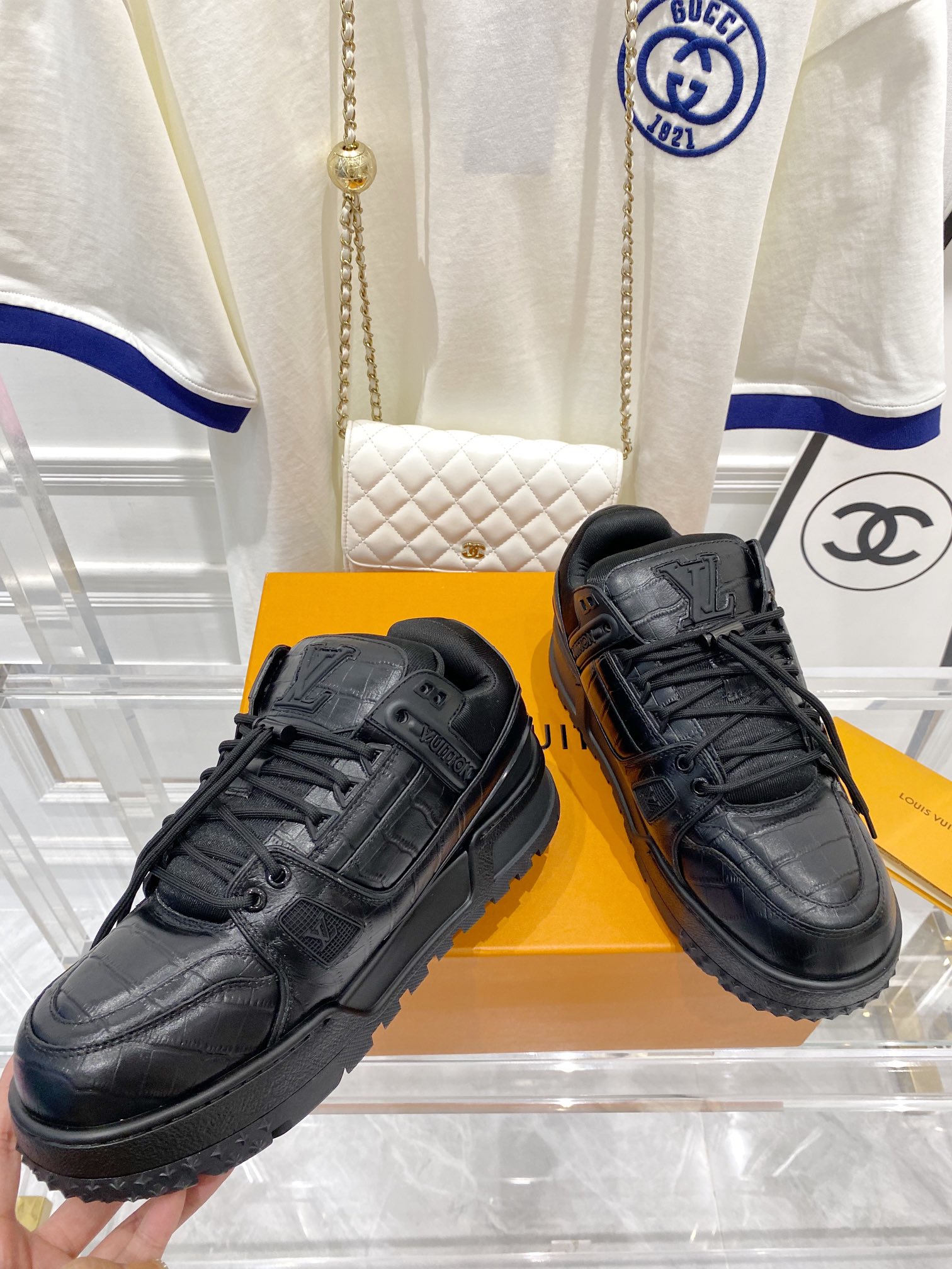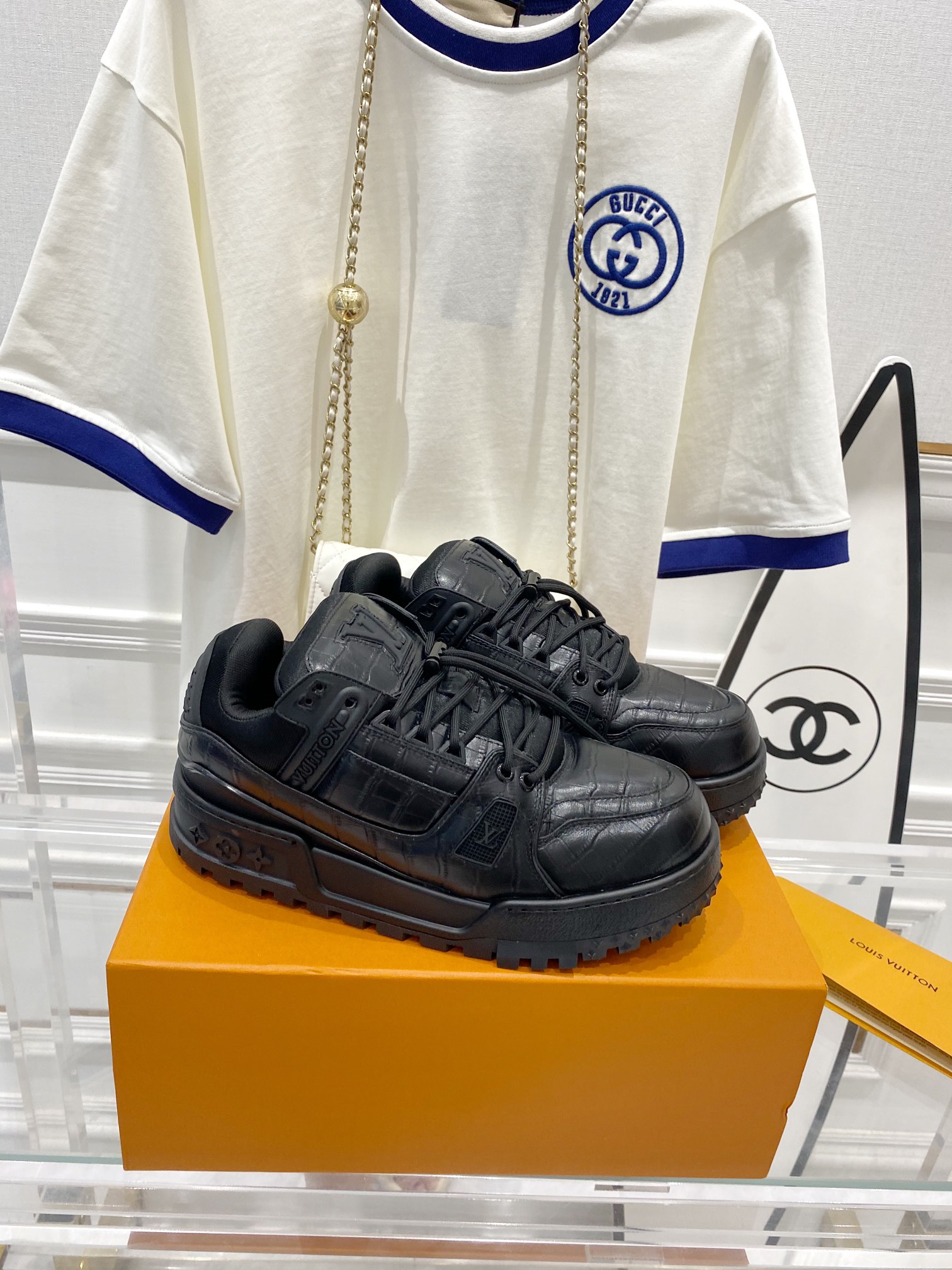 LV 2023 Paris Fashion Week New Release Couple Style: Buckle Sports Shoes Sneakers Cute Chunky Trainer, Casual Set: Breaking the Monotony of Color Variations: Makes You Look Younger. The chunky trainer can also be called the "Prosperity Shoe," charmingly cute and adorable. The most classic chunky shoe silhouette, the most classic color scheme, high-end and luxurious. Every style and color combination is excellent! Exactly the same as the original in material, craftsmanship, and details: Material TPU, original sole, original packaging.