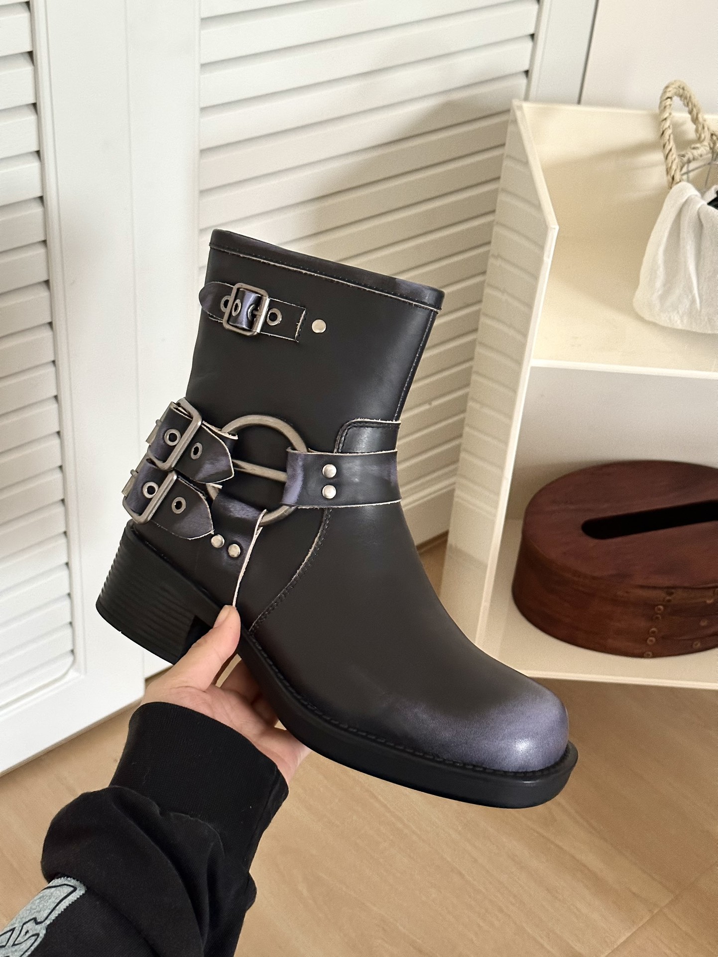 Super heavy craftsmanship, each pair has a unique, non-uniform burnishing effect. Miumi hit rider boots classic colors + 23 new color options