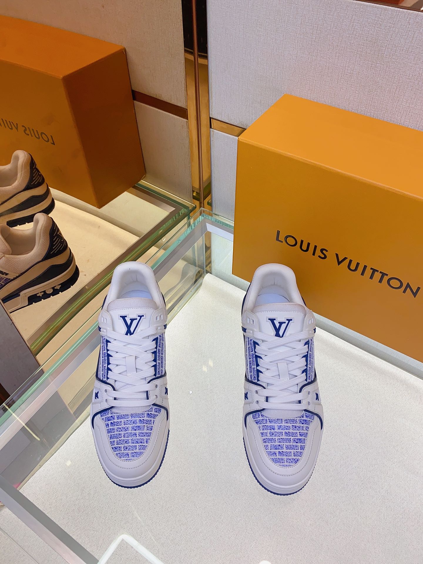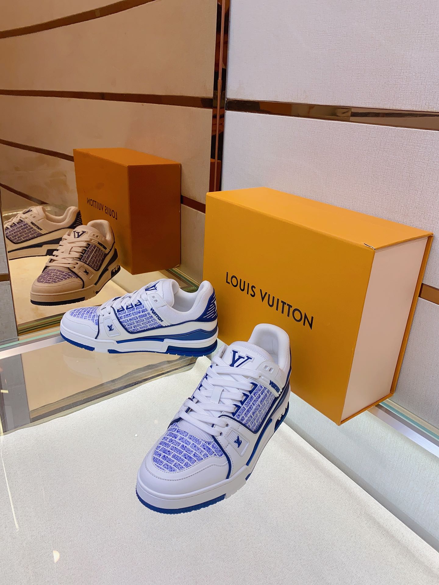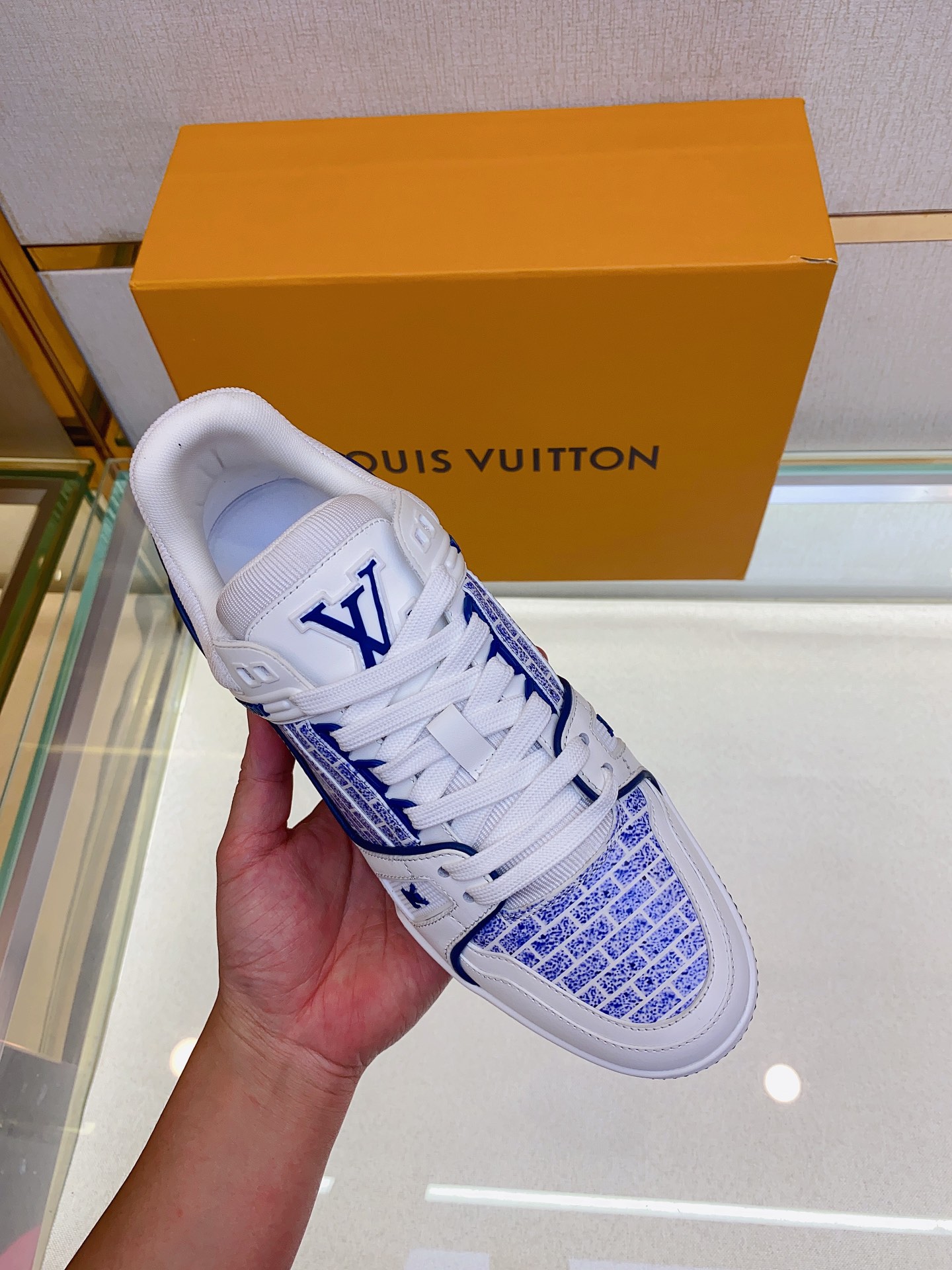 Louis V* Luxury Trainer Sneakers. These Trainer sneakers are made from imported calf leather. The design is simple, inspired by the retro basketball sneakers admired by Men's Artistic Director Virgil Abloh, with his handwritten Louis Vuitton English inscription on the side. The technical rubber outsole is equipped with an innovative gel insole, providing exceptional comfort. The outsole features Monogram Flowers pattern. A classic basketball sneaker style with high attention-grabbing appeal, easy to pair, and offering breathable comfort when worn! Size: Men's 39-44