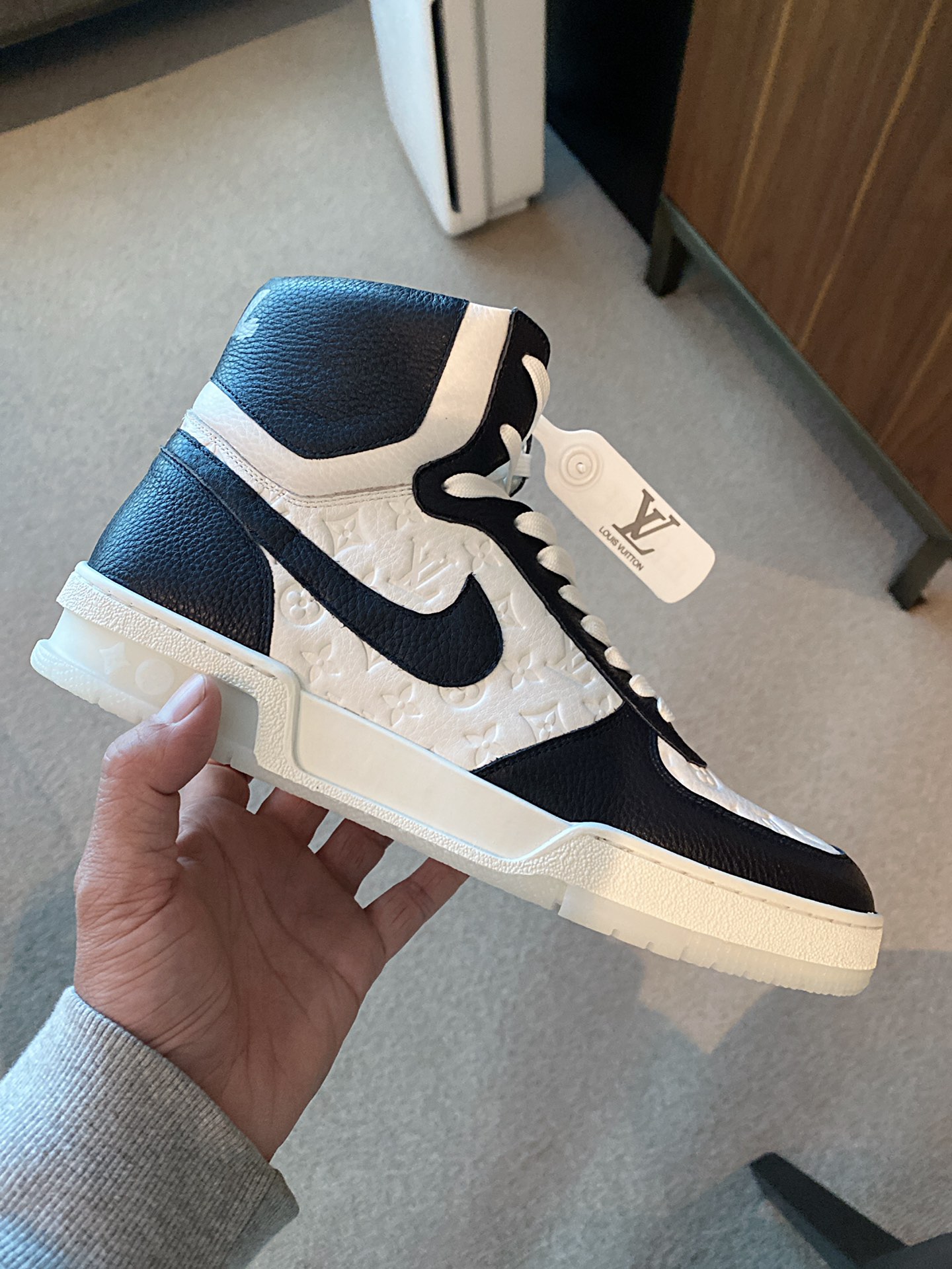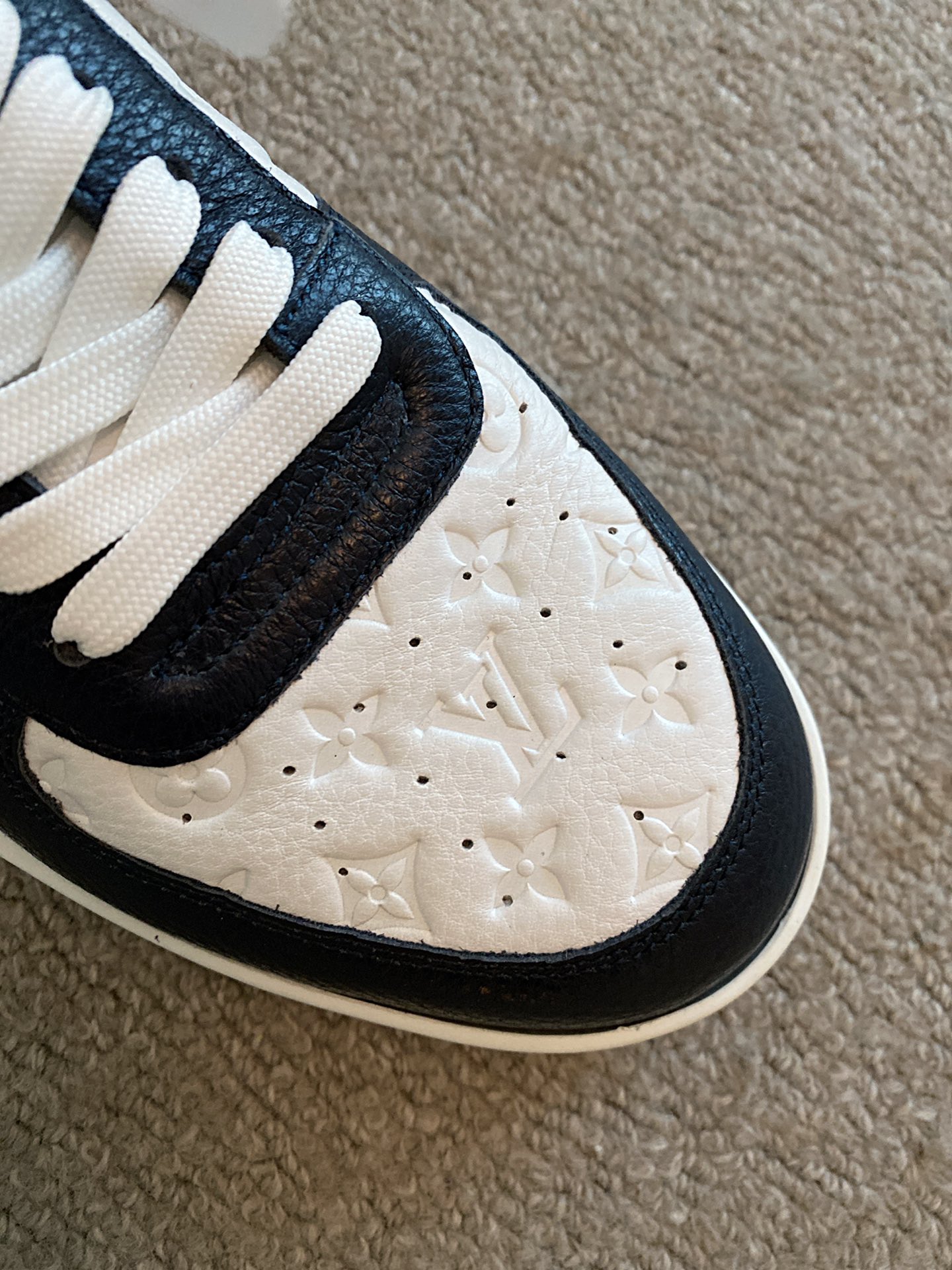 Top-tier version, original quality, Japanese street designer collaboration combining Louis and Nike limited edition series. This time, specifically sourced from a major factory in Dongguan. I personally handle everything from purchasing in France to production in OEM factories, ensuring 100% quality. From creating molds to sourcing original leather soles, everything is made 1:1. From stitching to edge-wrapping fabric, every step follows the original mold. Good shoes are made with care. Quality guaranteed. New model. The interior is made of Italian imported calfskin. To synchronize with the boutique, we selected imported LV classic monogram steel stamps for the upper. You tell me if it's difficult or not. The toe shape is firm and full. You can confidently enter any boutique without pressure. The original replica sole makes it suitable for various outings, showcasing low-key luxury. Sizes 38 to 44, boutique packaging. Full set of genuine invoices.