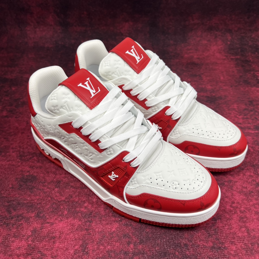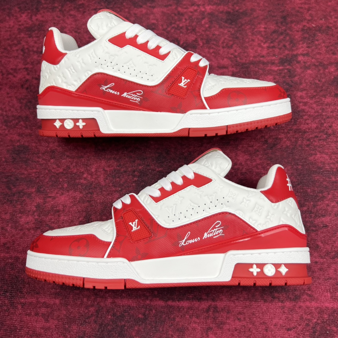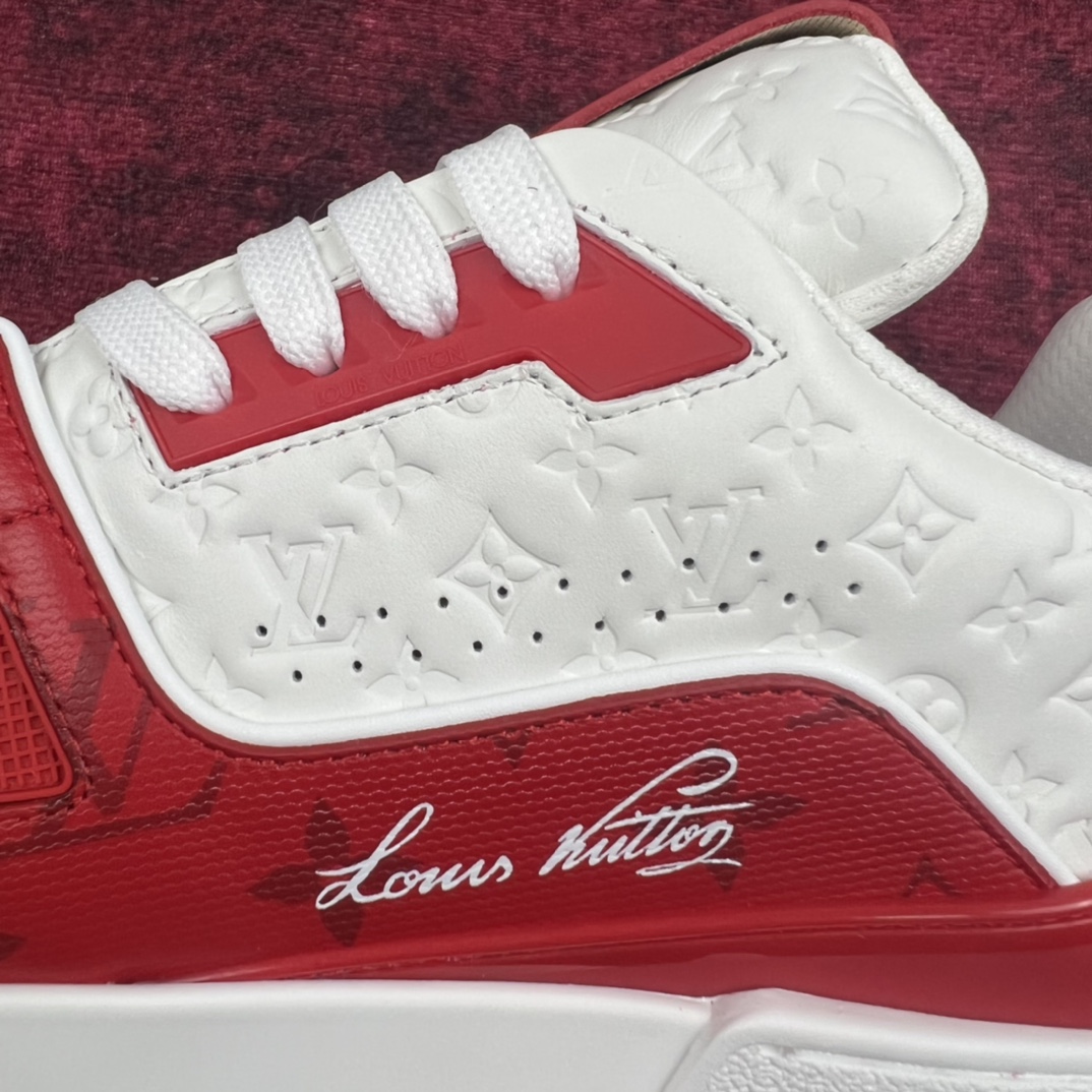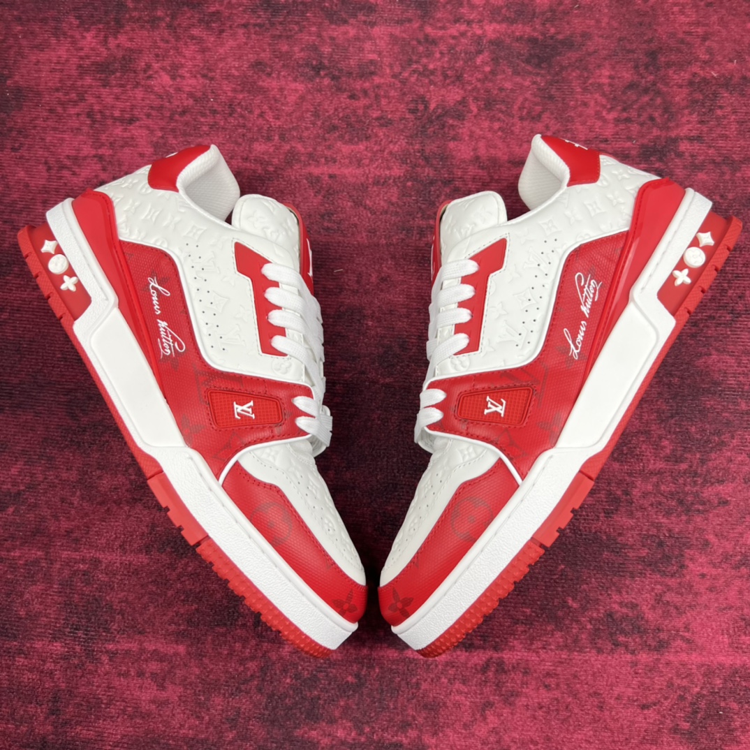 LV trainer top-tier purchasing level, brand new upgrade, white and red embossed collaboration color scheme, dominant supply in the market, brand new mold development, top-tier upgraded again, quality completely surpasses market hype "top-tier" overpriced products. Developed with original shoes and original molds, gives the impression of authentic at first glance, all details have been decoded, reaching peak quality upon release, sharing images becomes a signature, feel free to compare, truly outshines all others, those who understand the product can compare for themselves.