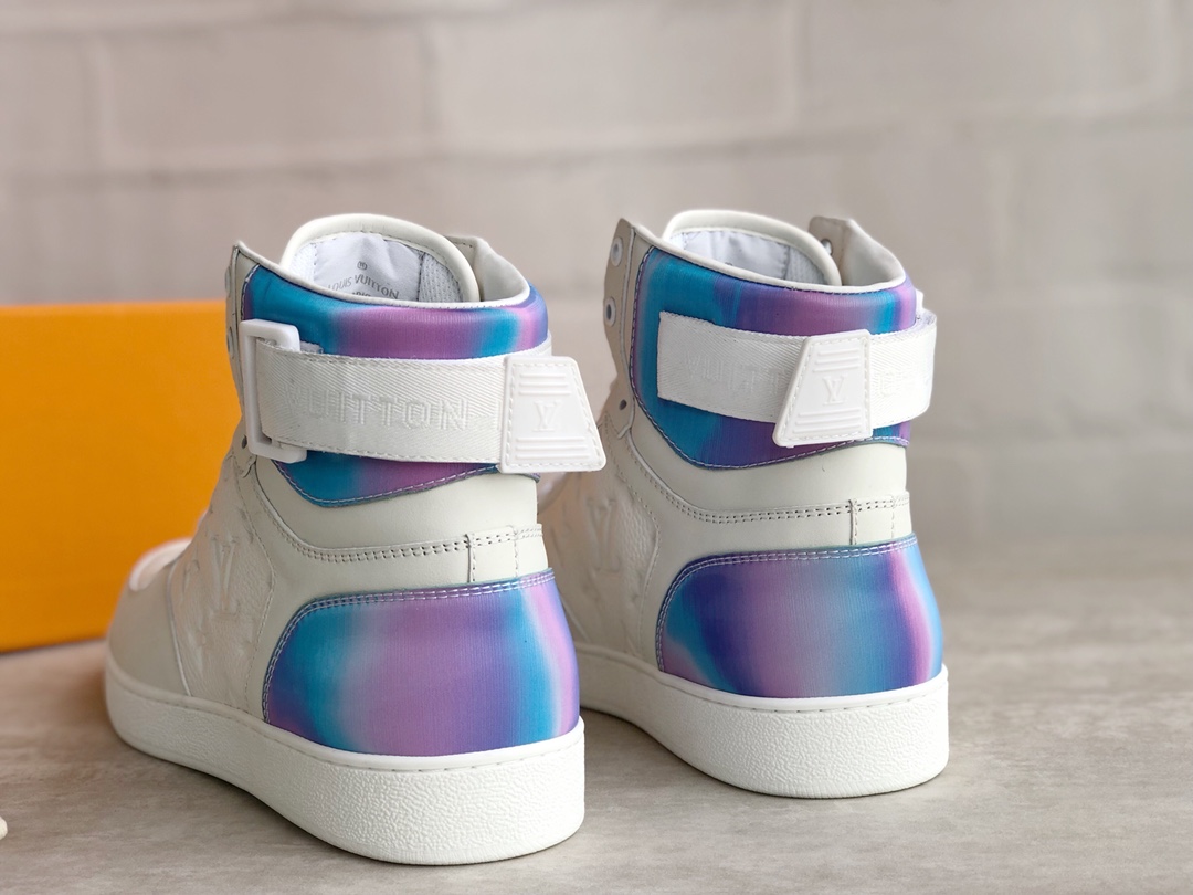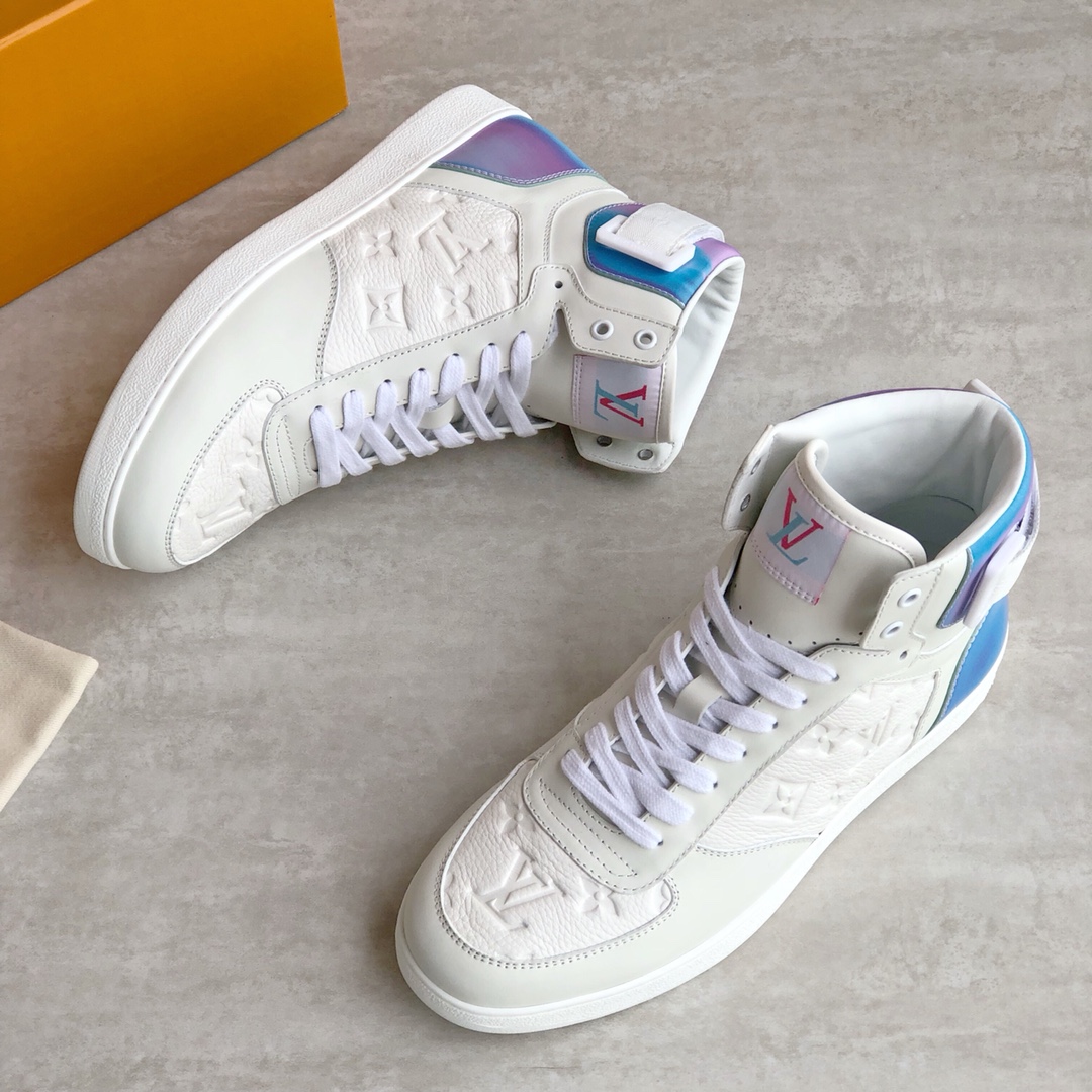 Very artistic men's shoes, designed by Louis's brand, each pair crafted with ingenuity. The upper uses imported custom cowhide spliced with specially customized iridescent patterns, full of trendiness! Comfort and breathability are top-notch when worn, retro style never goes out of fashion, with a hint of luxury. The high-top lace-up design uniquely embodies youthful vitality. Extremely high recognition—you can tell it's a luxury brand from afar, enhancing a man's overall style and image charm!
