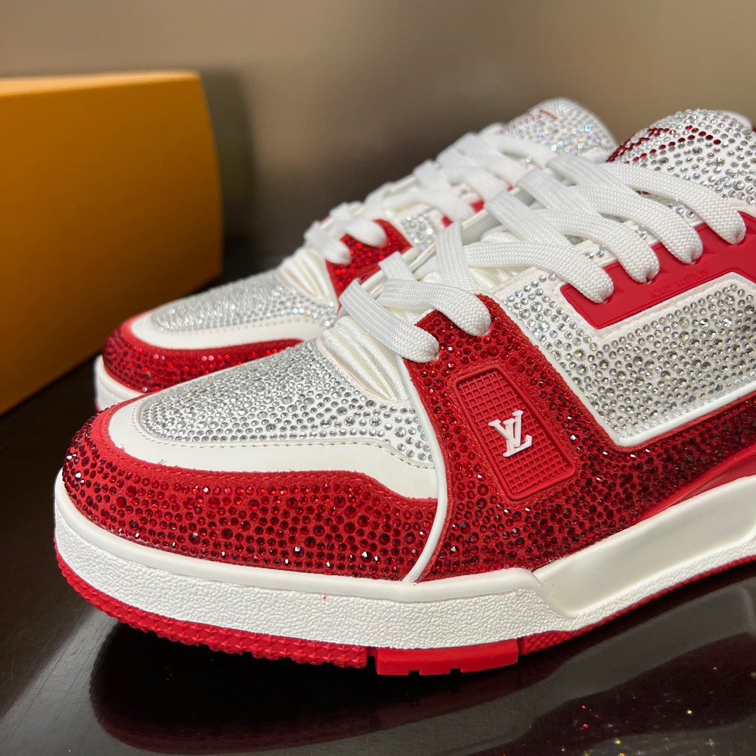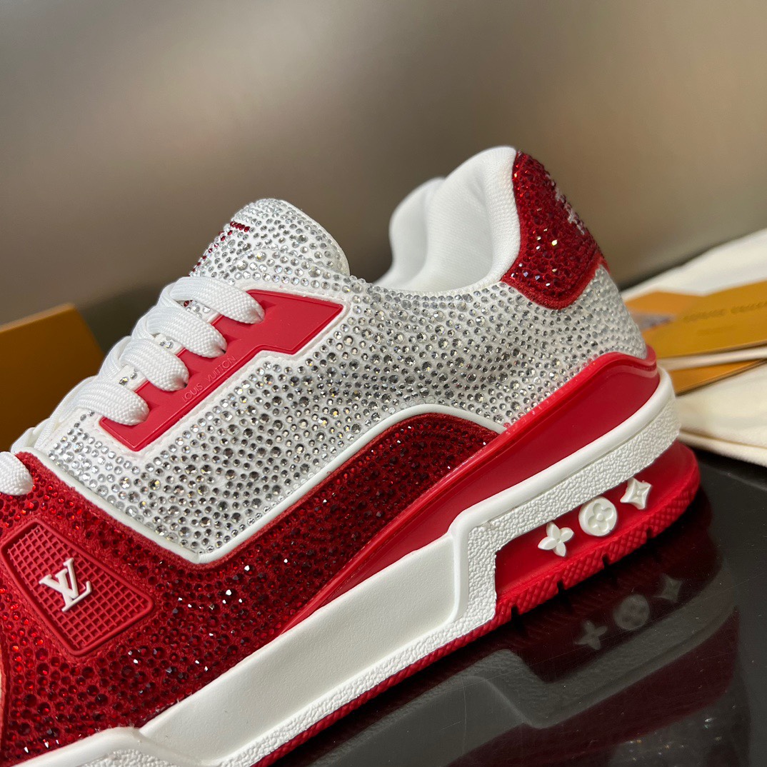Louis Vuitton 2023 TRAINER Special Edition, meticulously crafted. Features water-dyed vegetable-tanned calfskin and calfskin trim, with grained calfskin upper拼接. The #54 logo on the back commemorates the brand's founding year 1854. Handwritten Louis Vuitton logo by Men's Artistic Director Virgil Abloh adorns one side. The water-dyed gradient offers a unique charm, with mesh lining and thickened insole. A classic LV sports sneaker, extremely comfortable and highly trendy, comes with full original box packaging!
